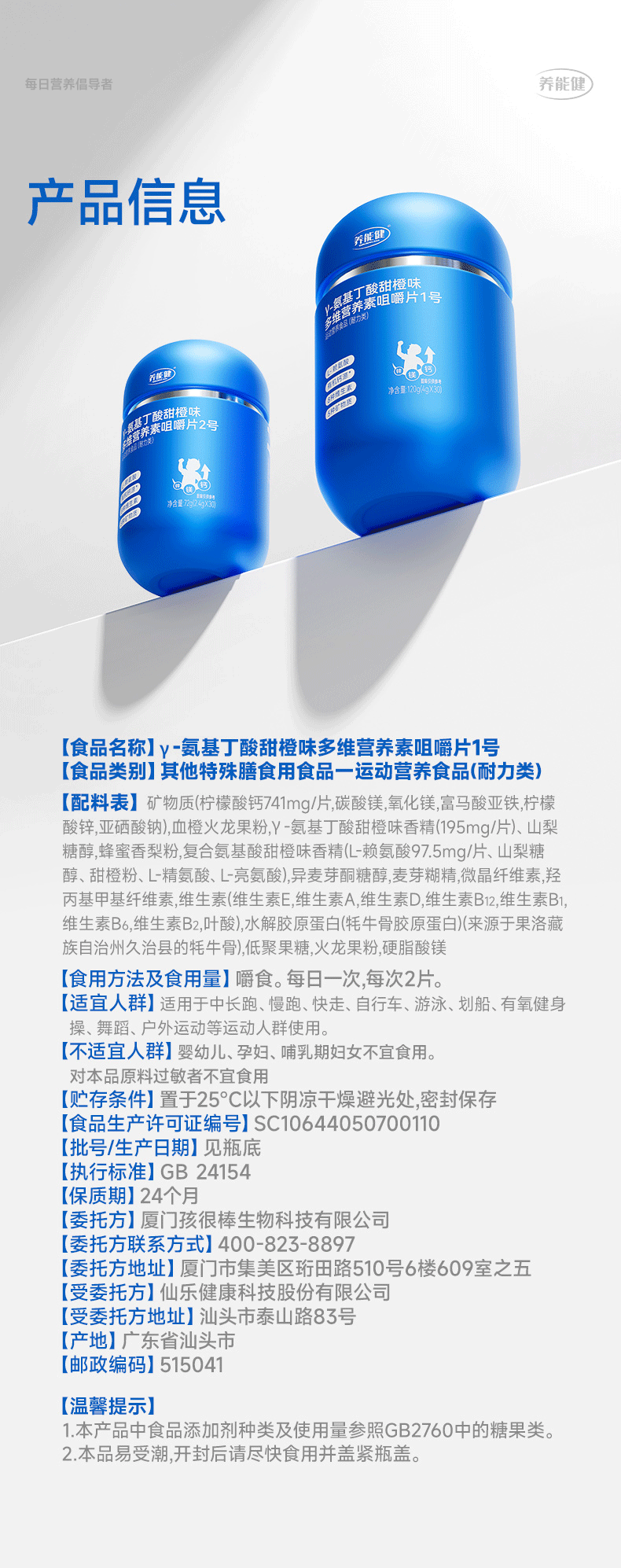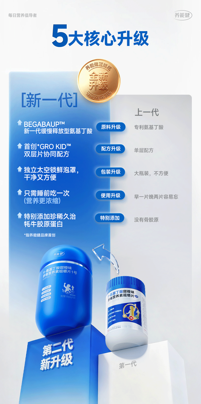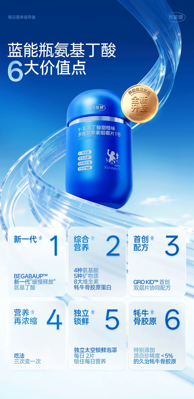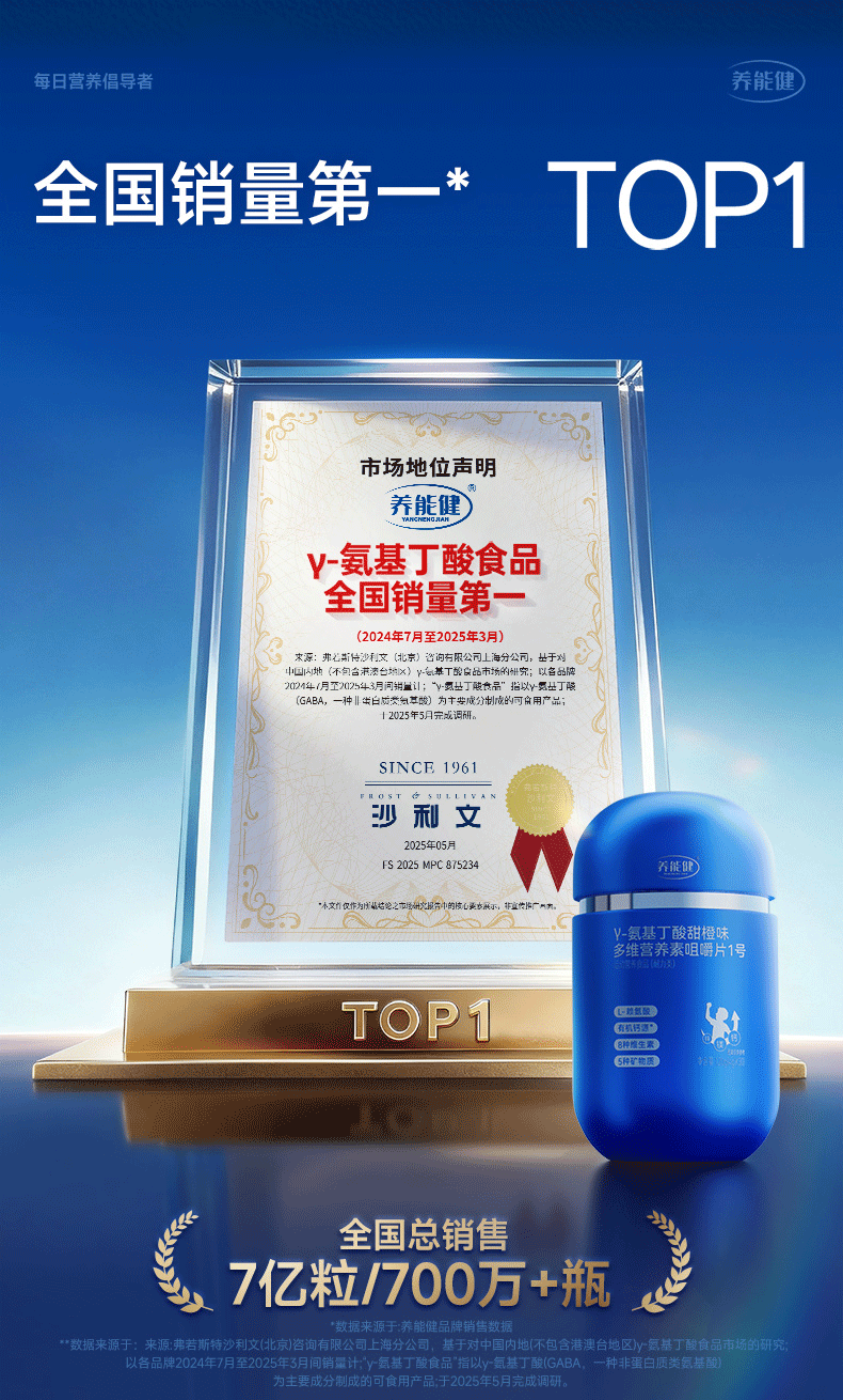 养能健【五大重磅升级】青春款γ氨基丁酸蓝能瓶多维综合营养钙片60粒 【周期装】 60粒*3瓶 |青春款蓝能瓶