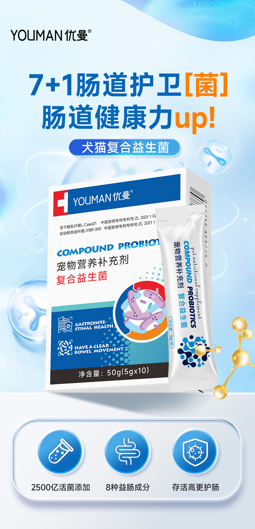 宠物猫咪狗狗益生菌调理肠胃幼犬猫软便拉稀食欲不振活性益生菌 复合益生菌5条【5g*5】