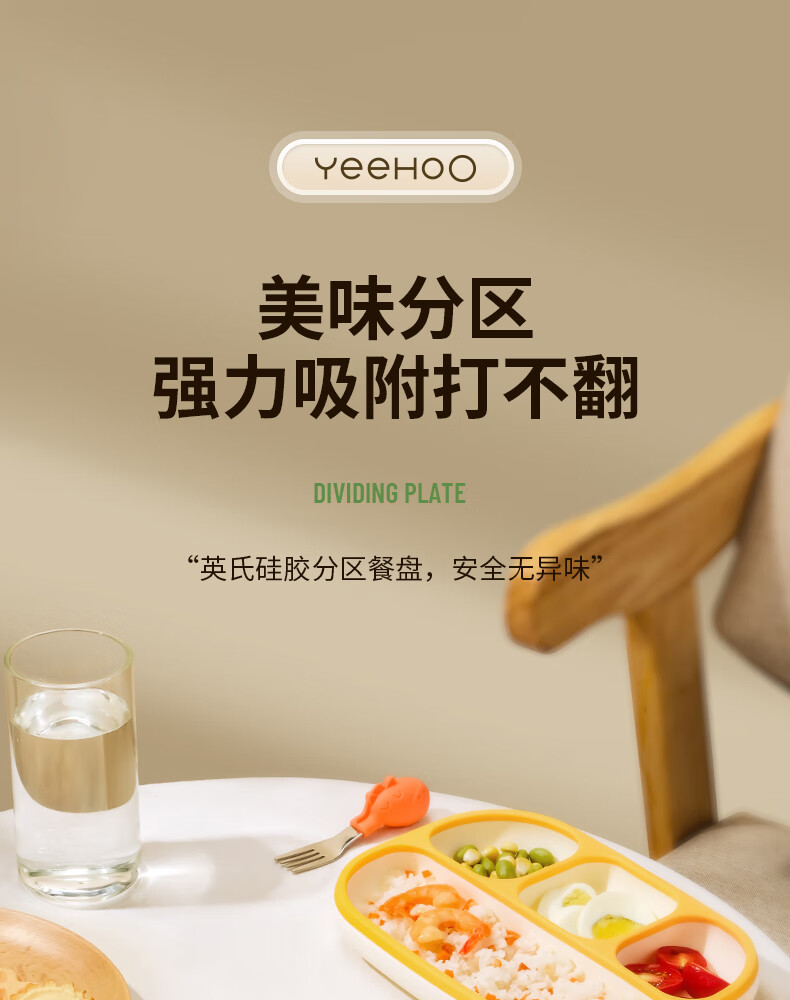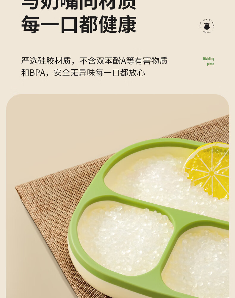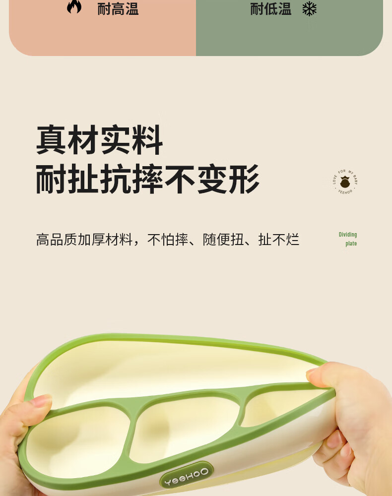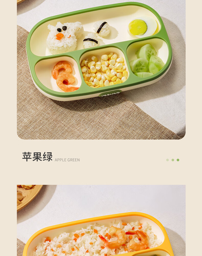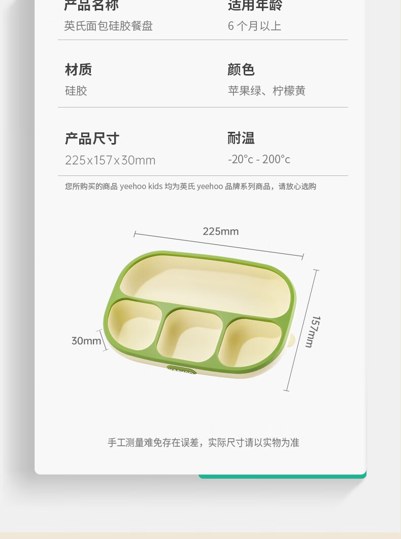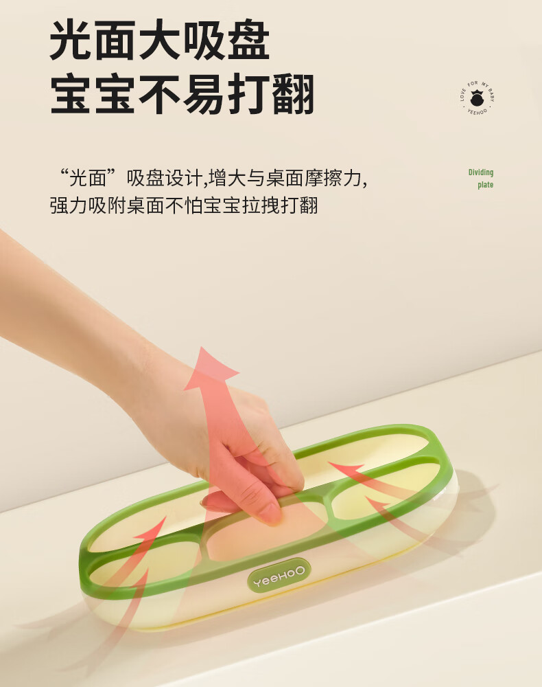 英氏(YEEHOO)宝宝餐盘儿童硅胶婴儿吸盘碗辅食分格餐盘吃饭餐具全硅胶 苹果绿