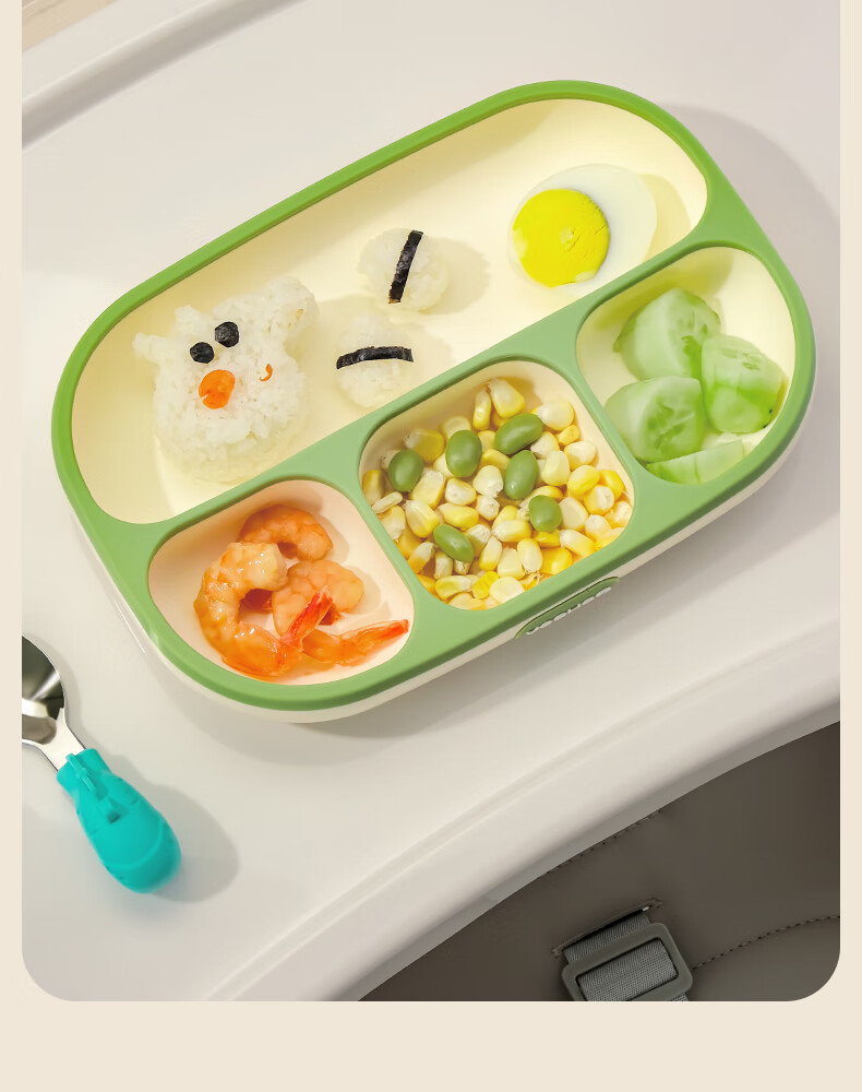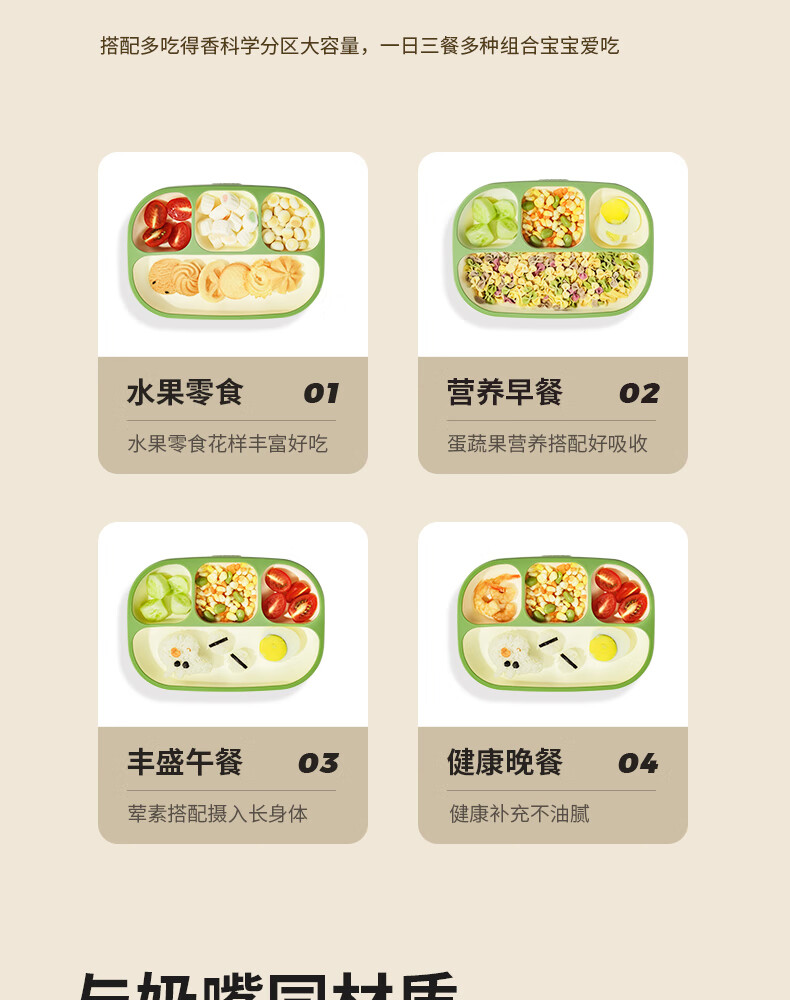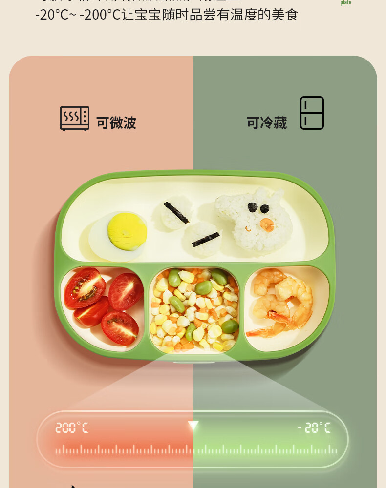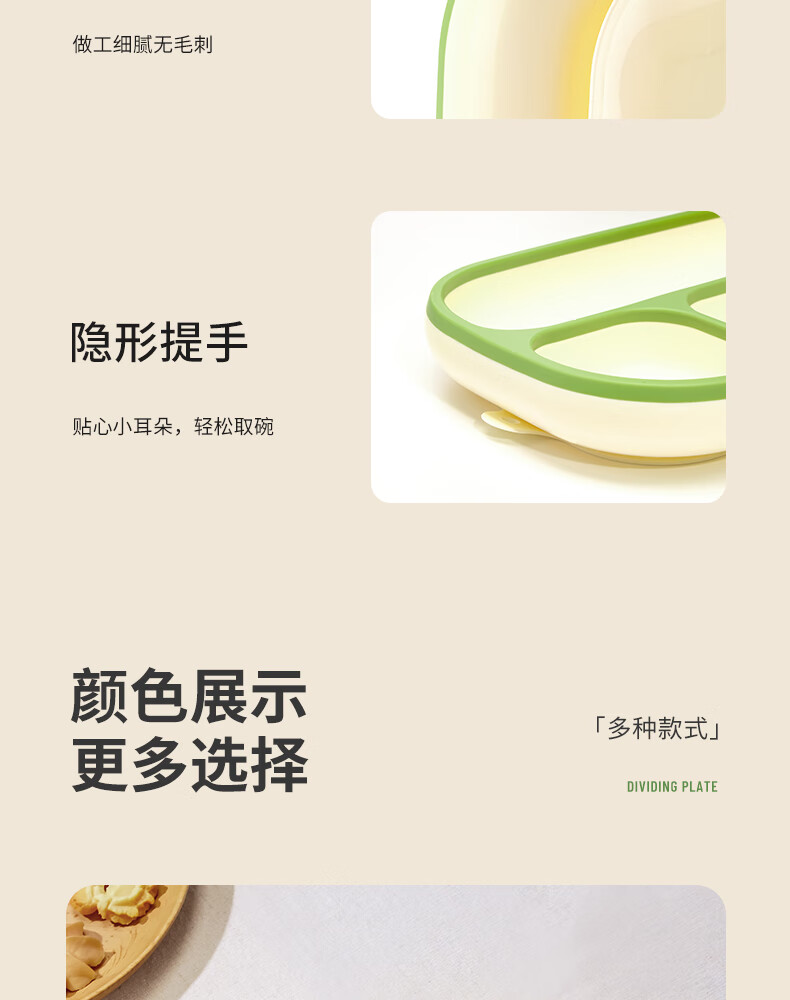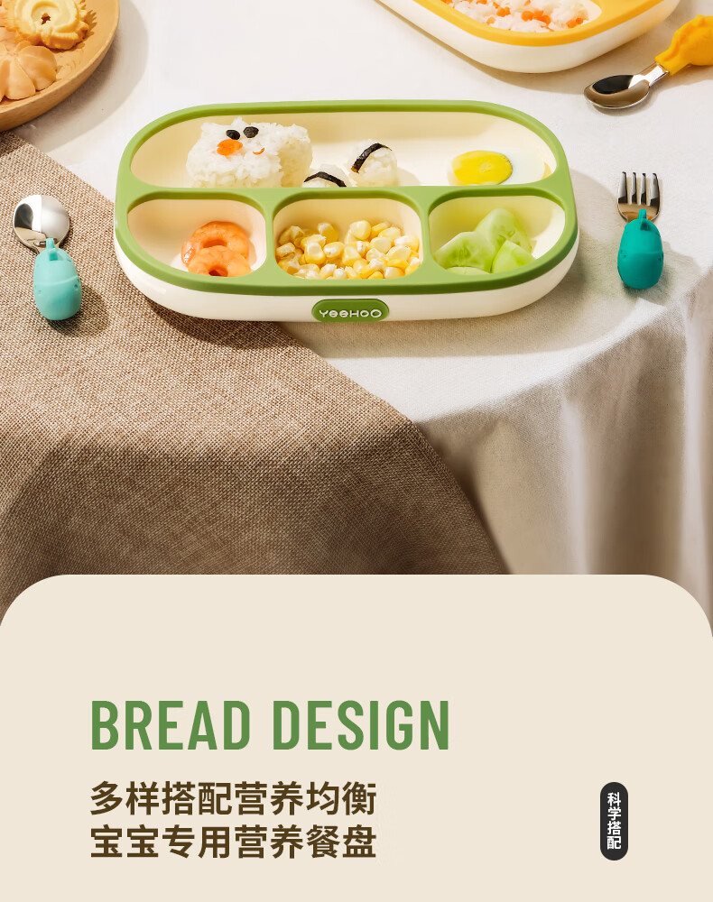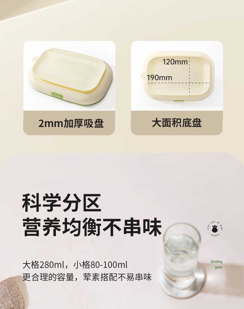 英氏(YEEHOO)宝宝餐盘儿童硅胶婴儿吸盘碗辅食分格餐盘吃饭餐具全硅胶 苹果绿