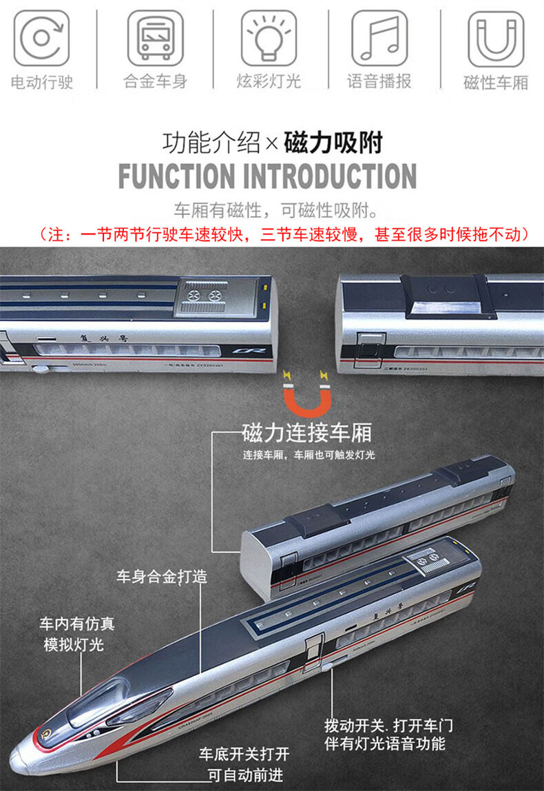 星密途复兴号动车模型仿真大号合金高铁火车玩具带轨道男孩新年生日礼物 合金复兴号【三节+单圆轨道】银色 3-5-8十6-12岁儿童玩具磁力轨道火车学生新年生日礼物