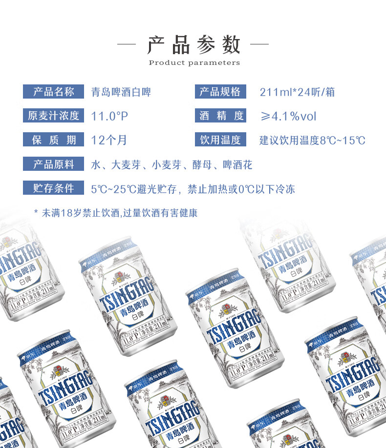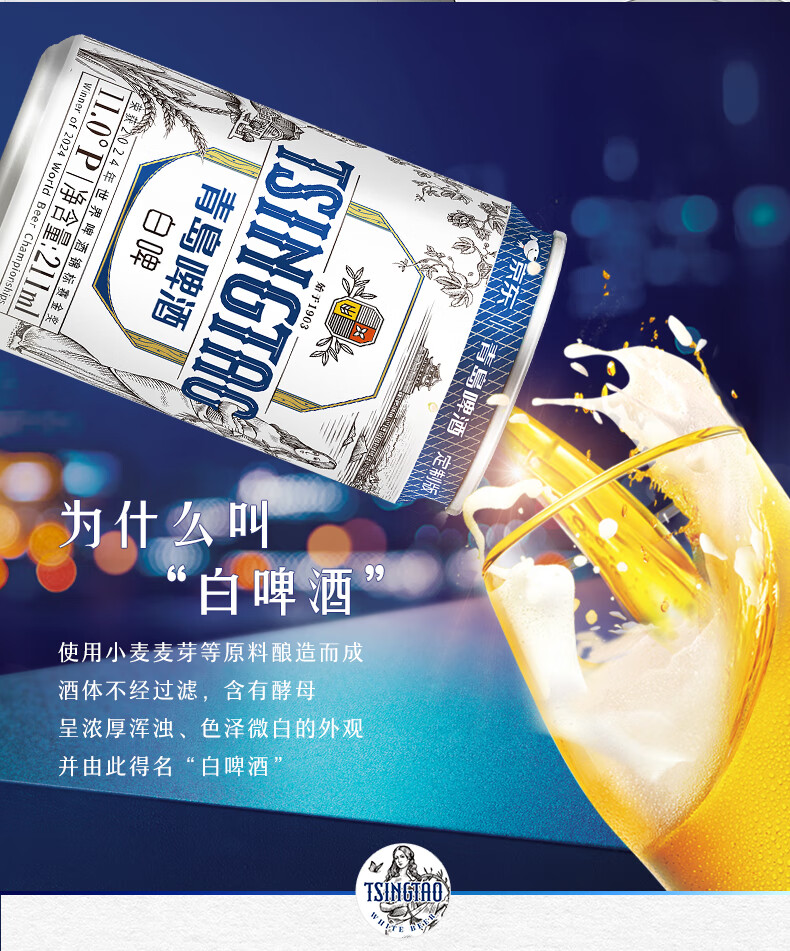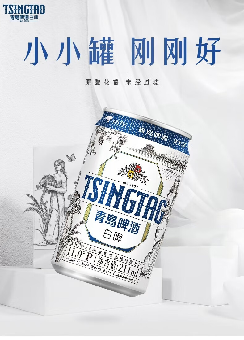 青岛啤酒(TsingTao)精酿白啤 211ml*24罐 京东定制版 年货送礼