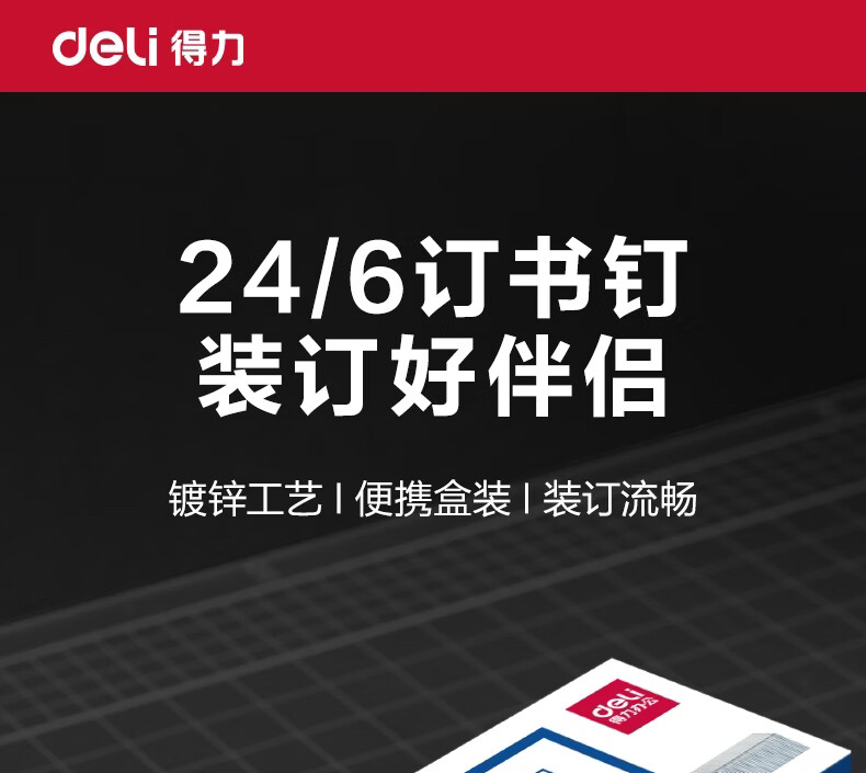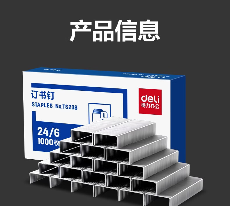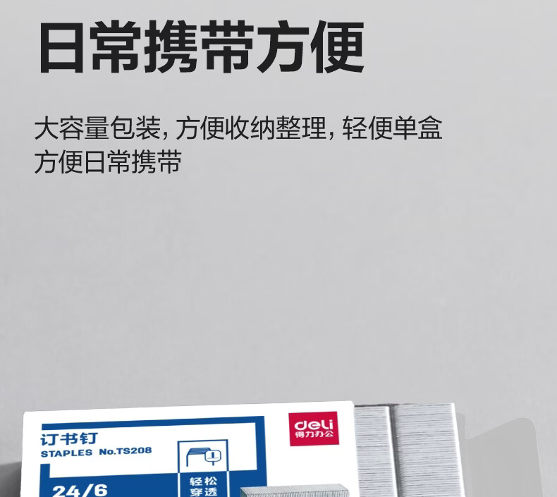 得力(deli)24/6高强度订书钉5盒装 办公用品1000枚/盒可订25页 TS208-05
