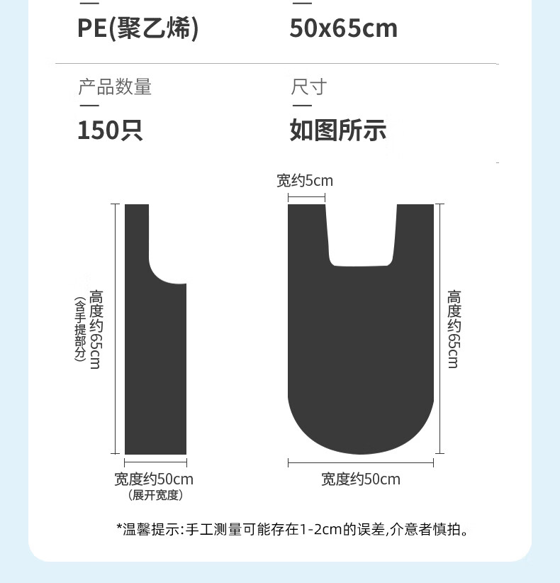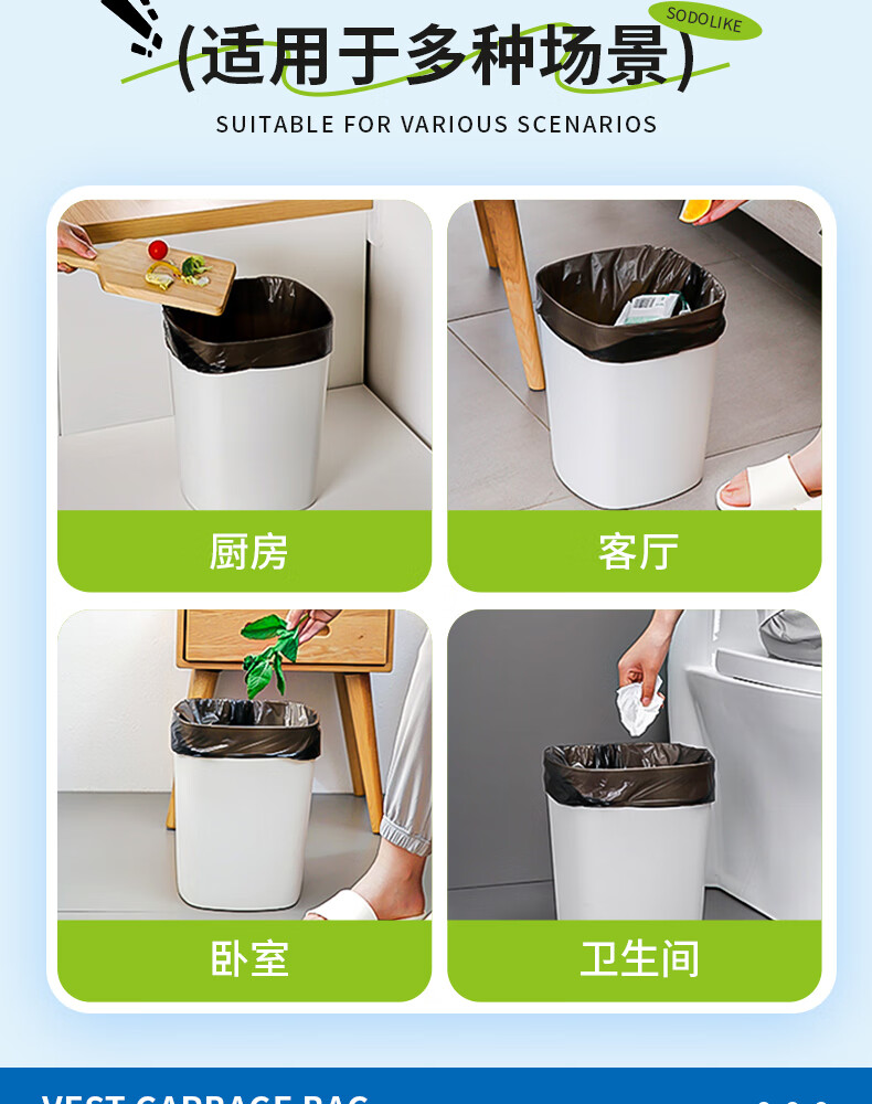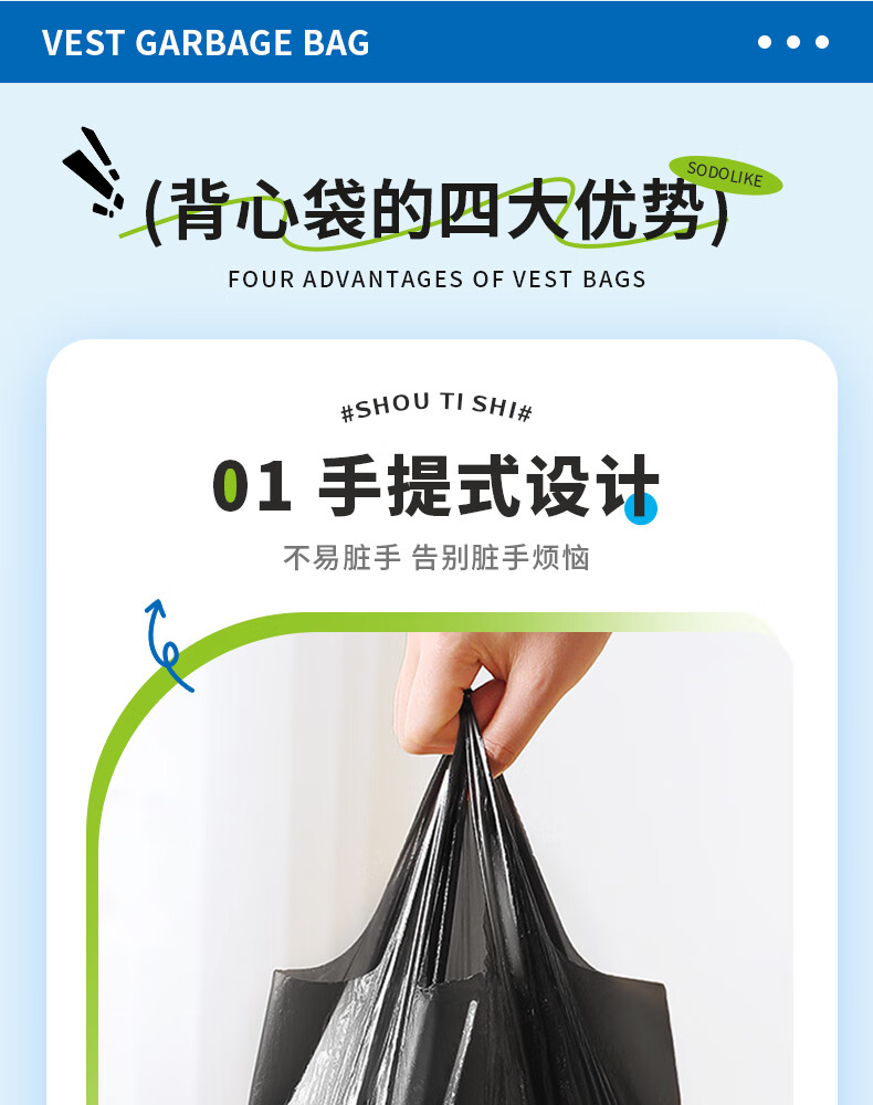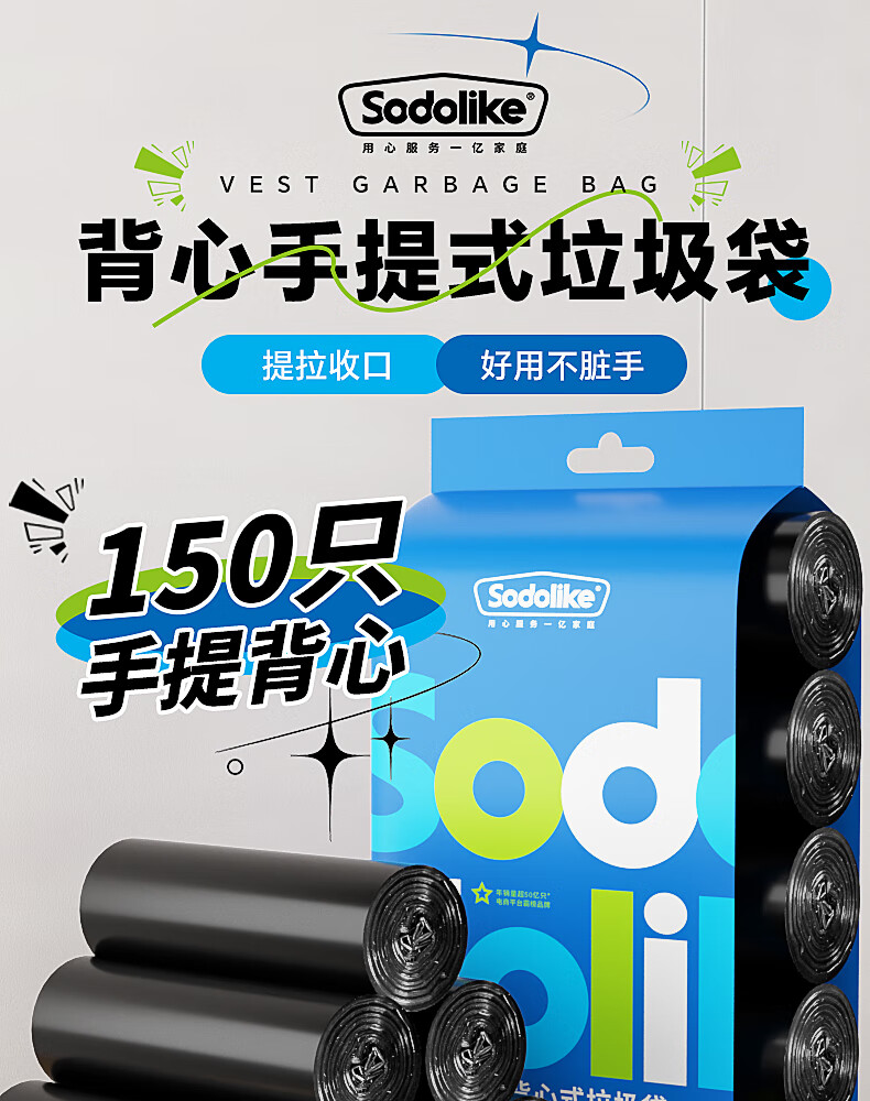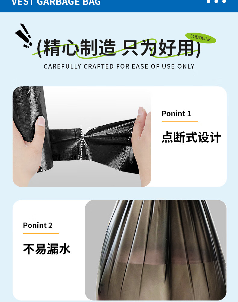Sodolike尚岛背心垃圾袋黑色50*65cm150只单面0.8丝点断大号手提