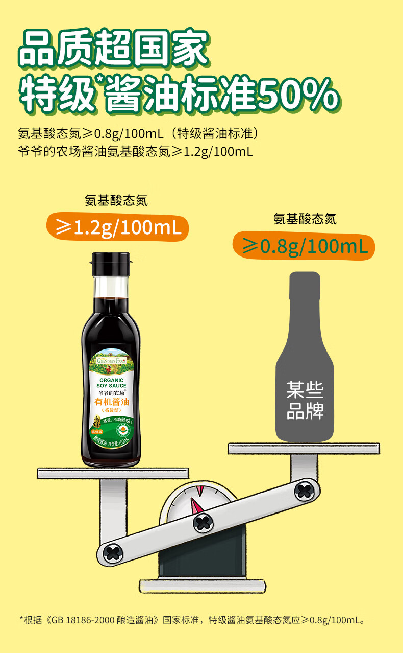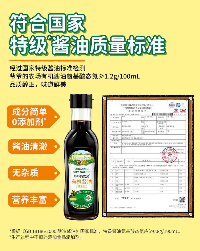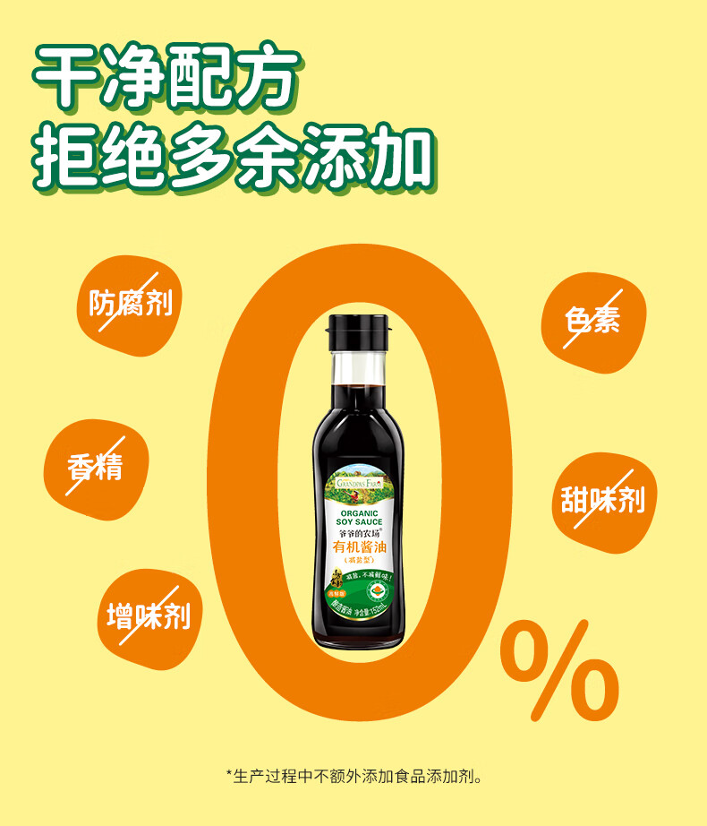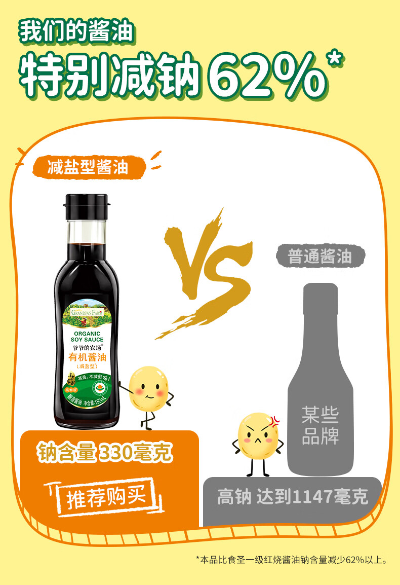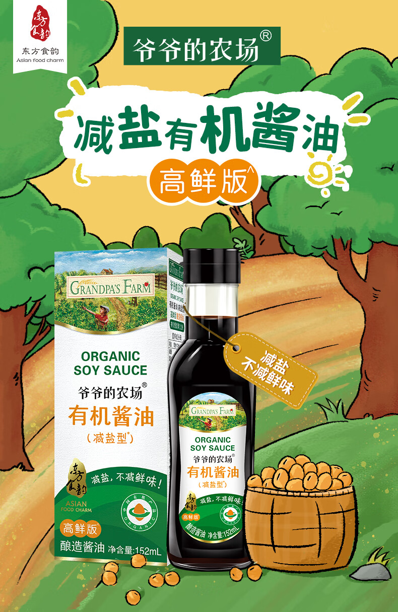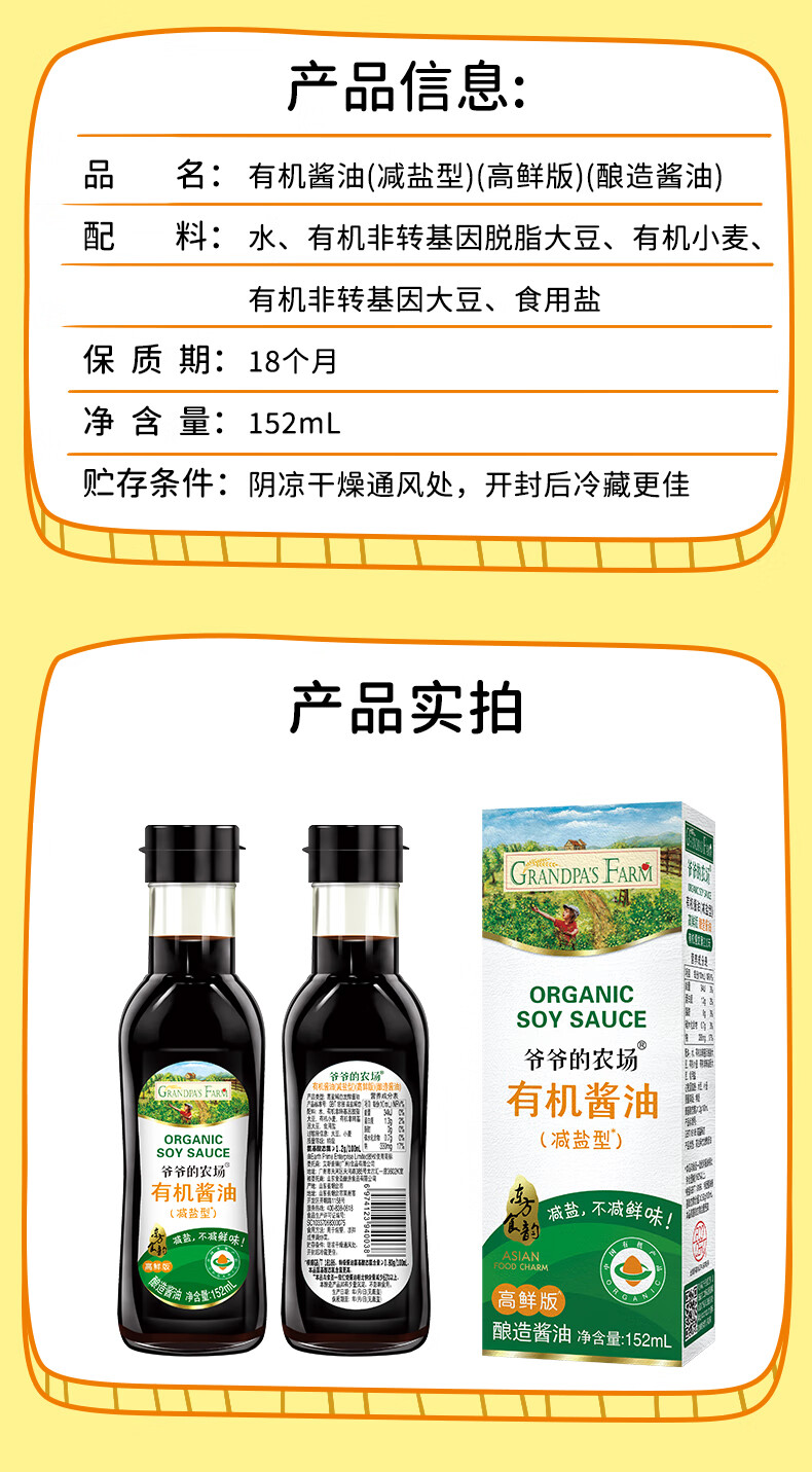 爷爷的农场有机特级酱油152ml 宝宝酱油儿童调味减盐62%赠婴幼儿辅食食谱