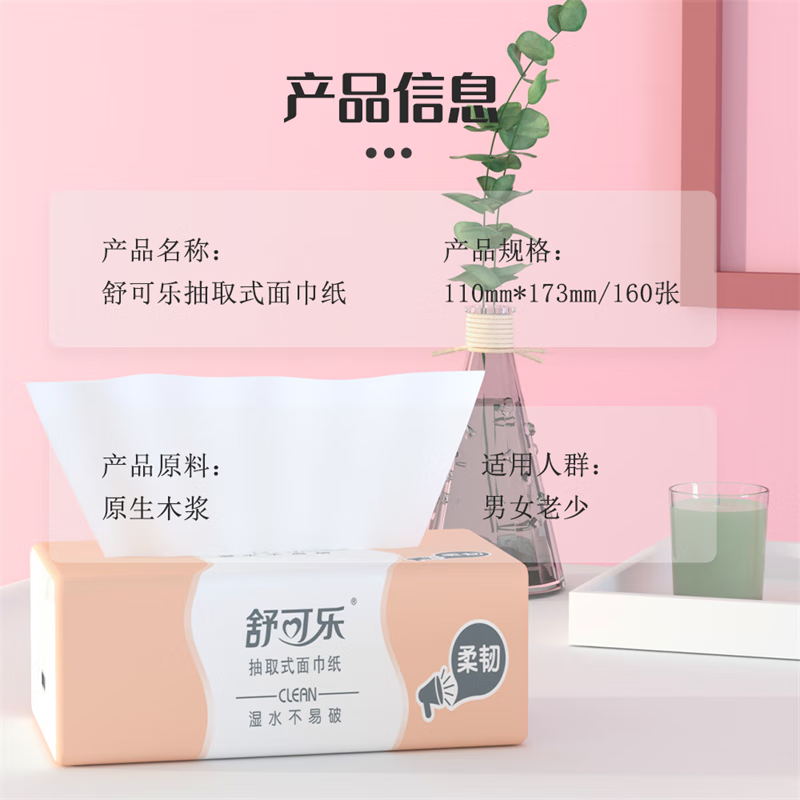 舒可乐【新人专享】原木抽纸整箱加宽加厚抽纸批发家用餐巾纸面 4层 40抽*8包 【试用装】