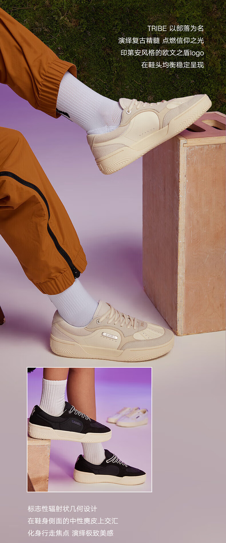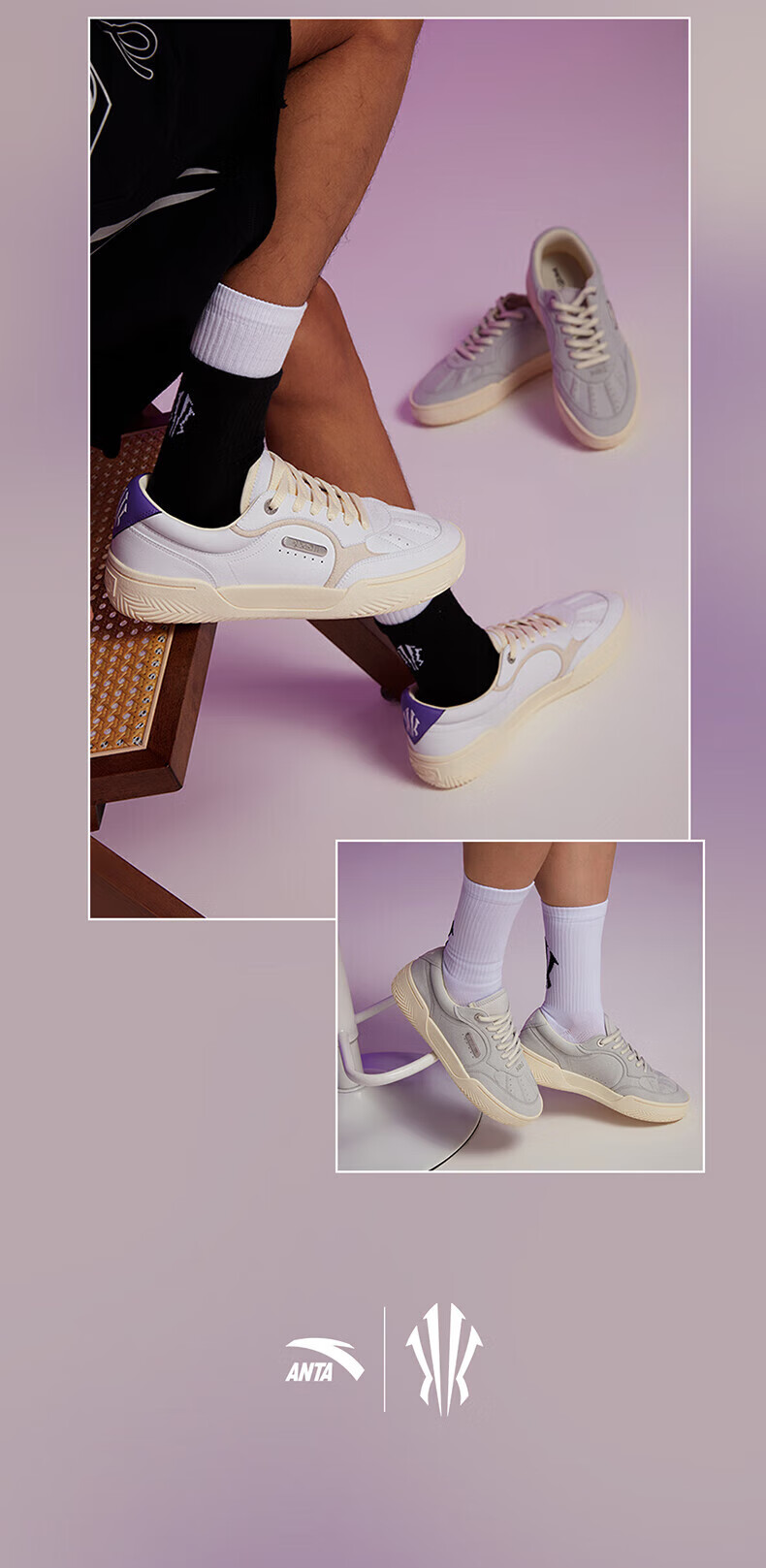 安踏(ANTA)【凯里·欧文同款】HELA TRIBE丨踹步鞋情侣板鞋篮球鞋文化鞋男女 蓝/灰251-1 (男款) 42.5 (男9码)
