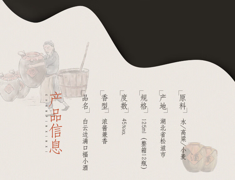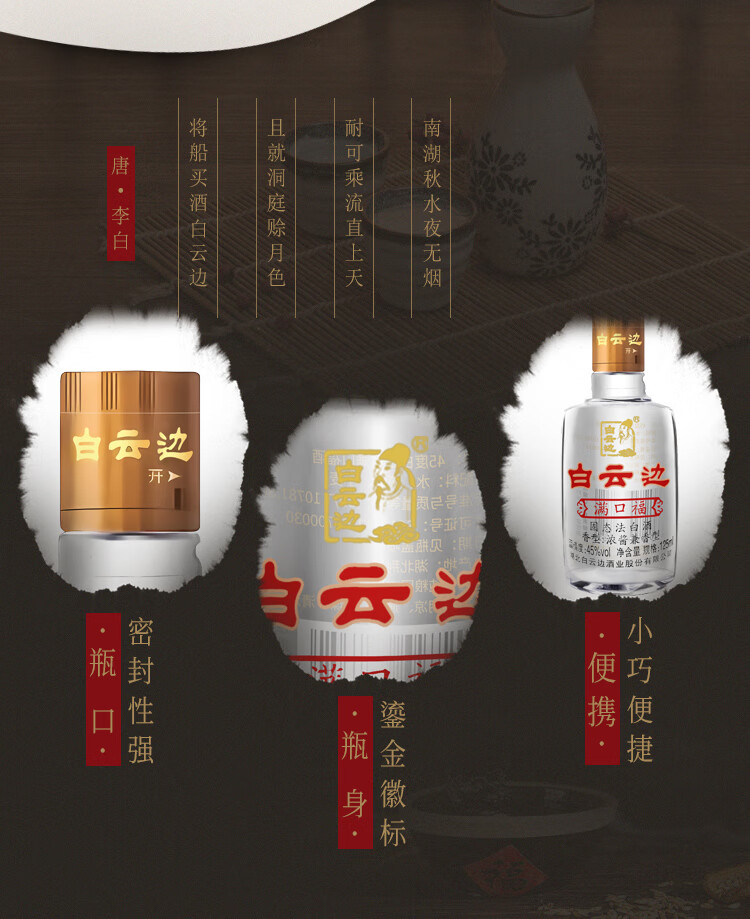 白云边 满口福 浓酱兼香型白酒 45度 125ml 单瓶装