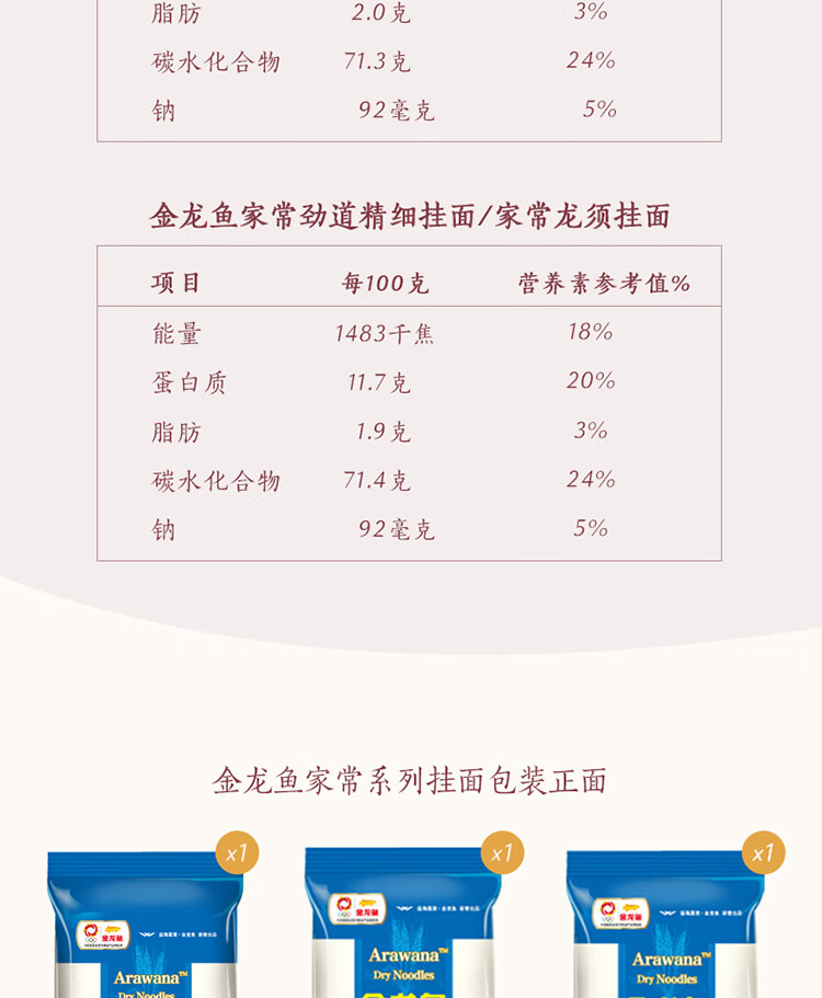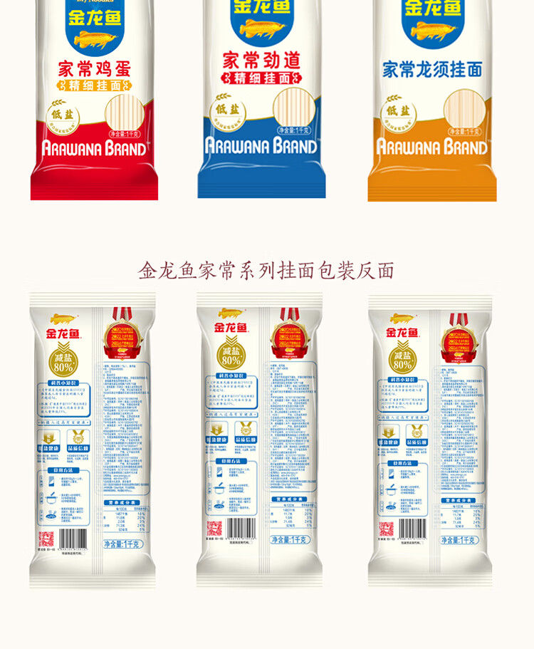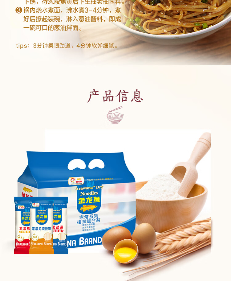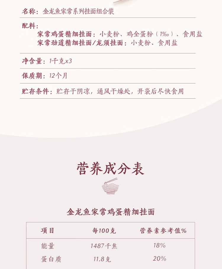 金龙鱼家常系列 鸡蛋劲道龙须挂面面条组合装 1000g*3 拉面 汤面 素面