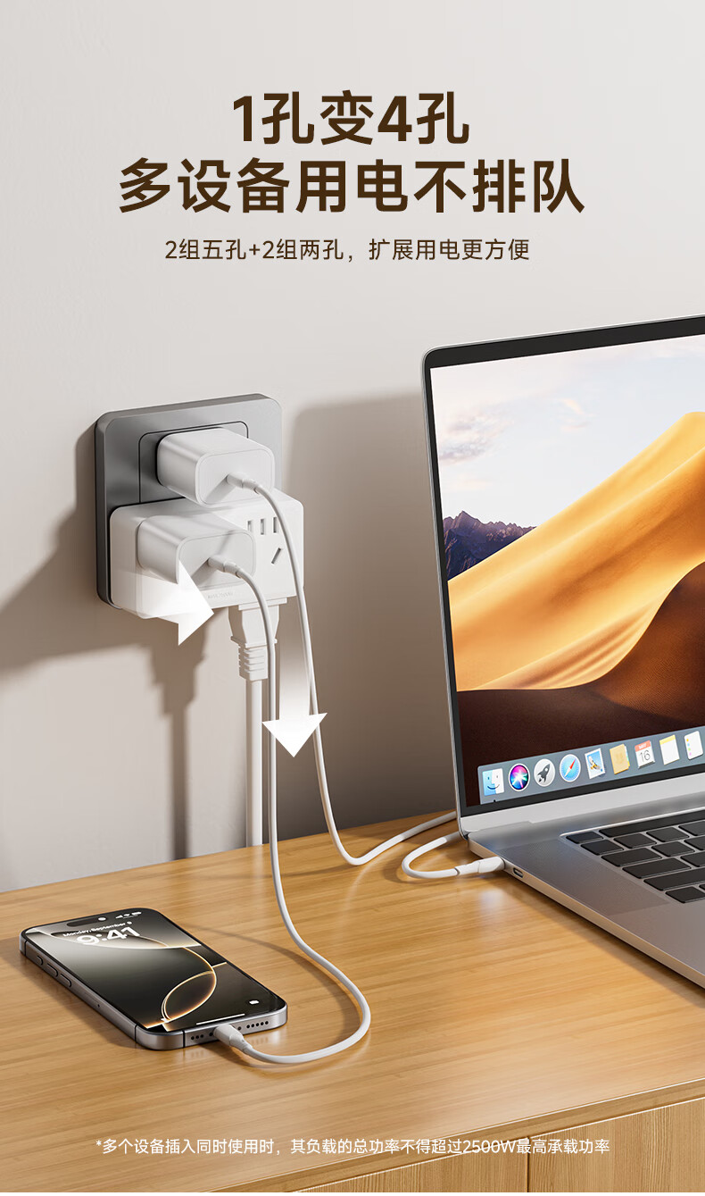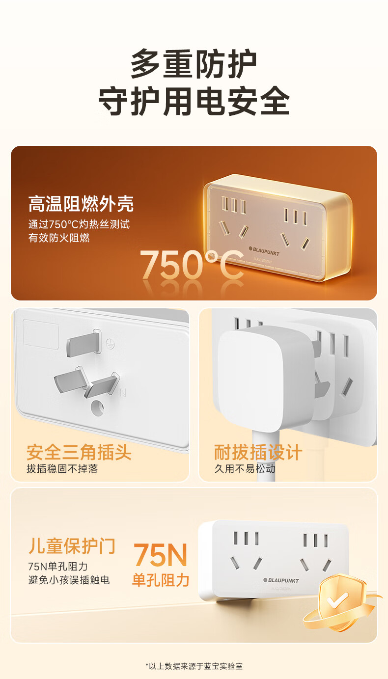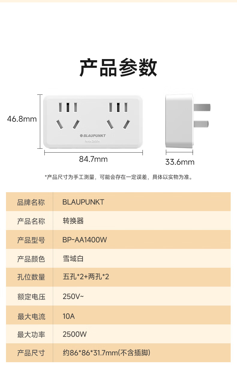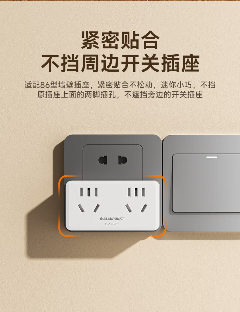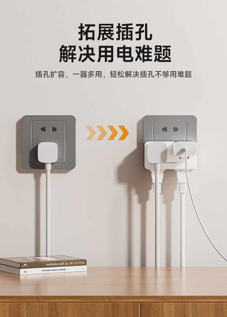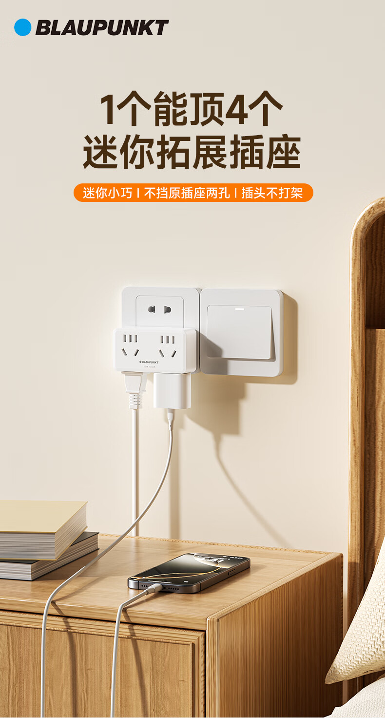BLAUPUNKT插座扩展器86面板一转多插座转换器一转二插座多功能转换插头无线插排