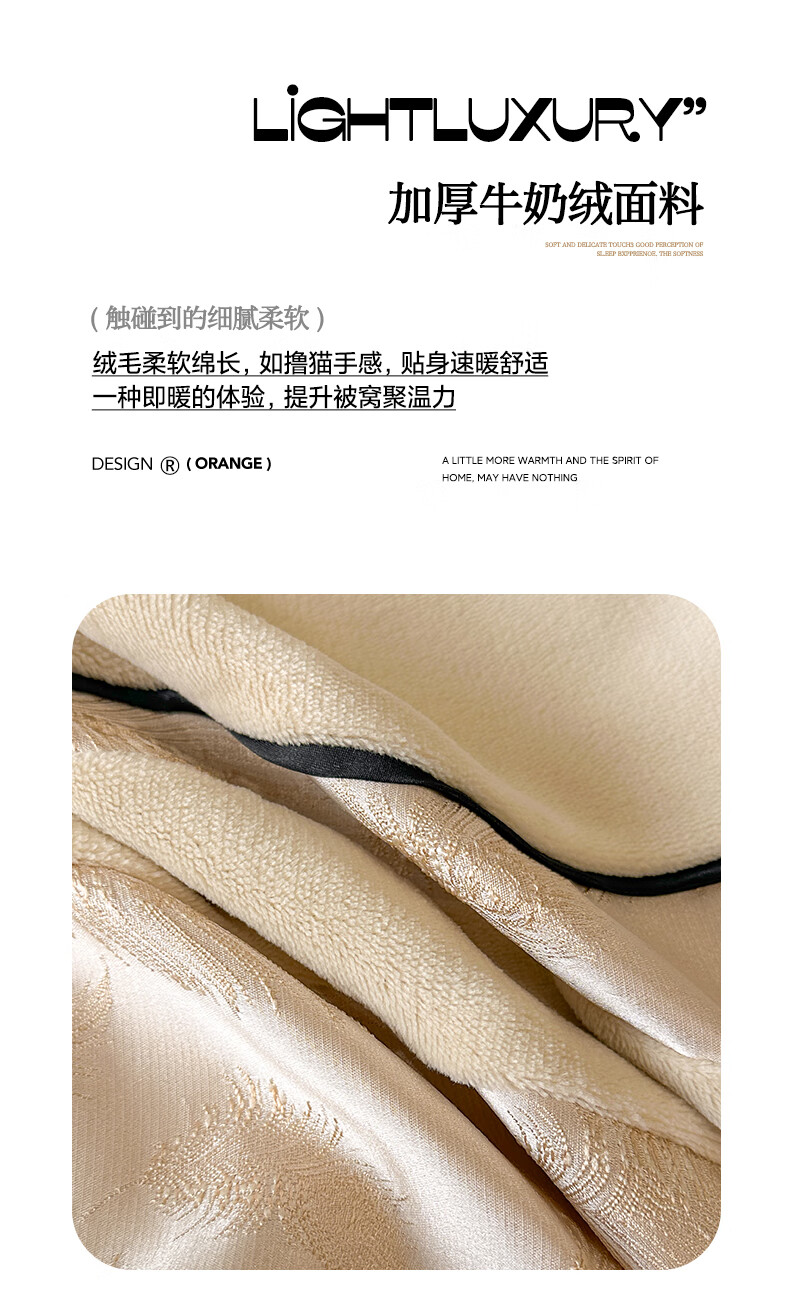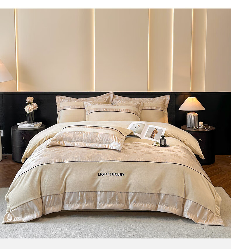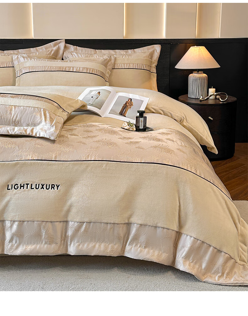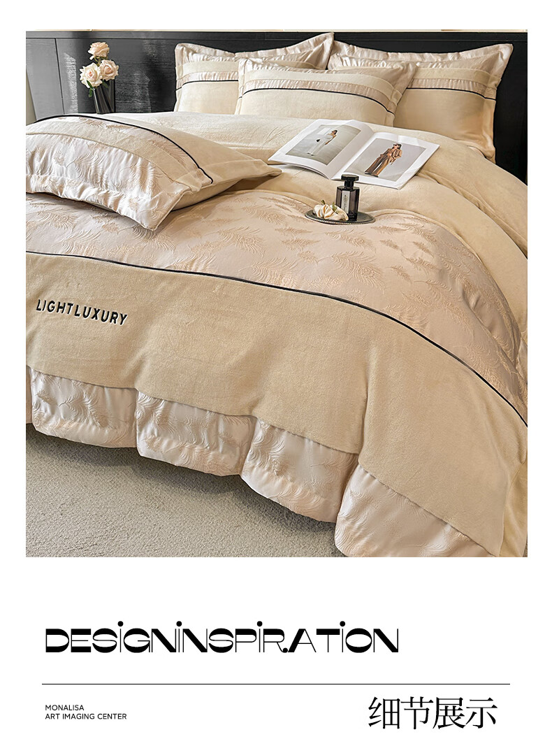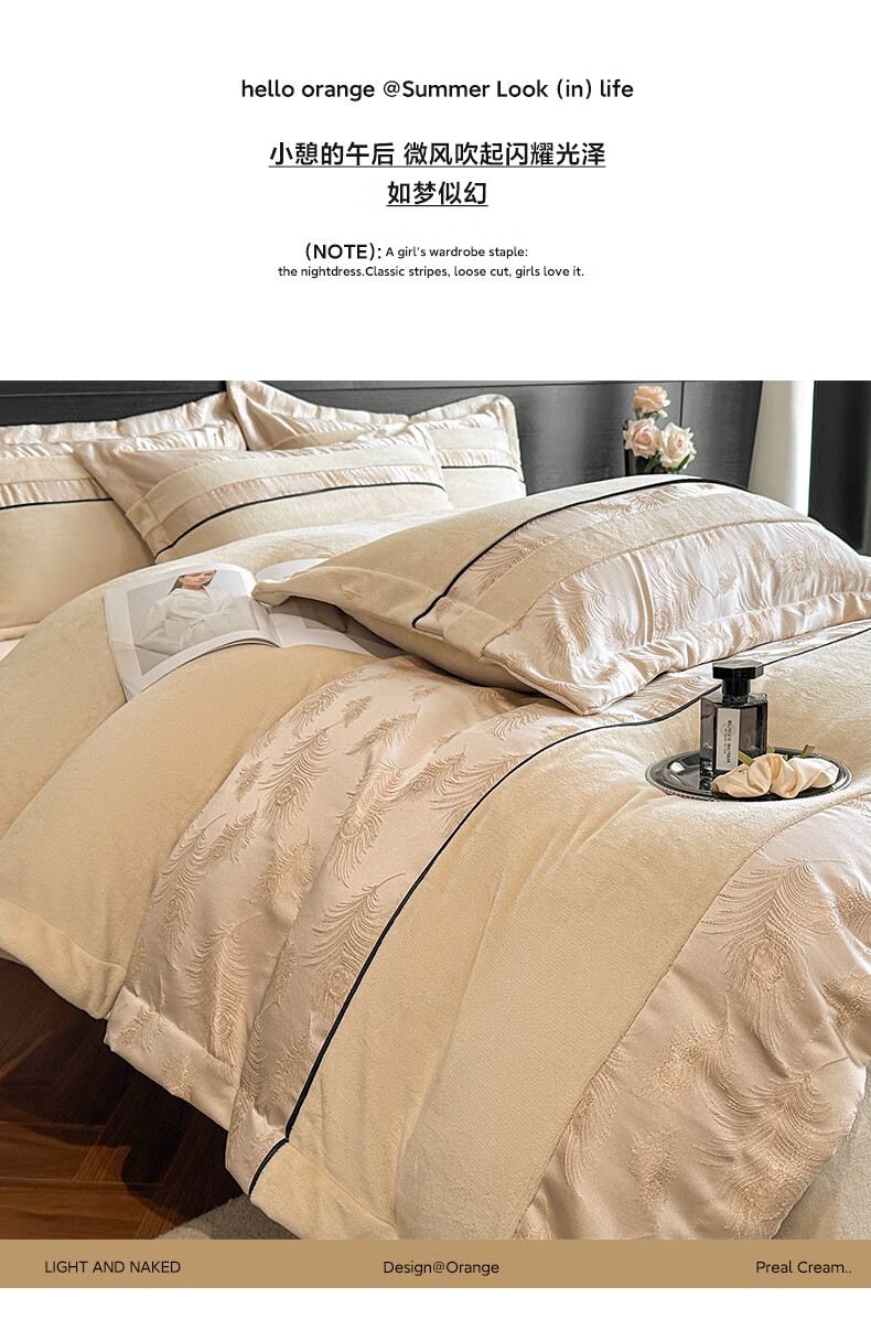 VJE高级感冬季床上四件套牛奶绒冬天双面绒加厚珊瑚绒床单被套床品 羽皇-香槟 三件套1.2m 床单款 -被套150*200cm