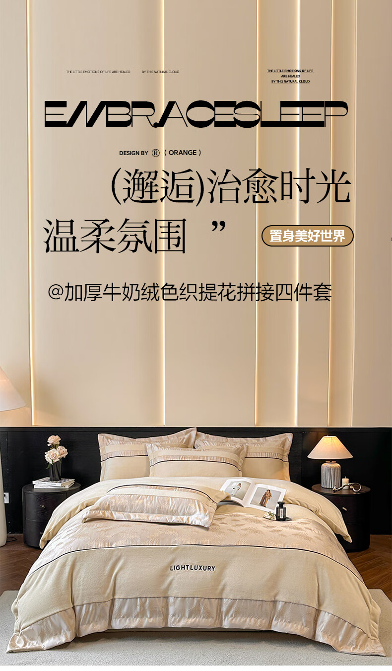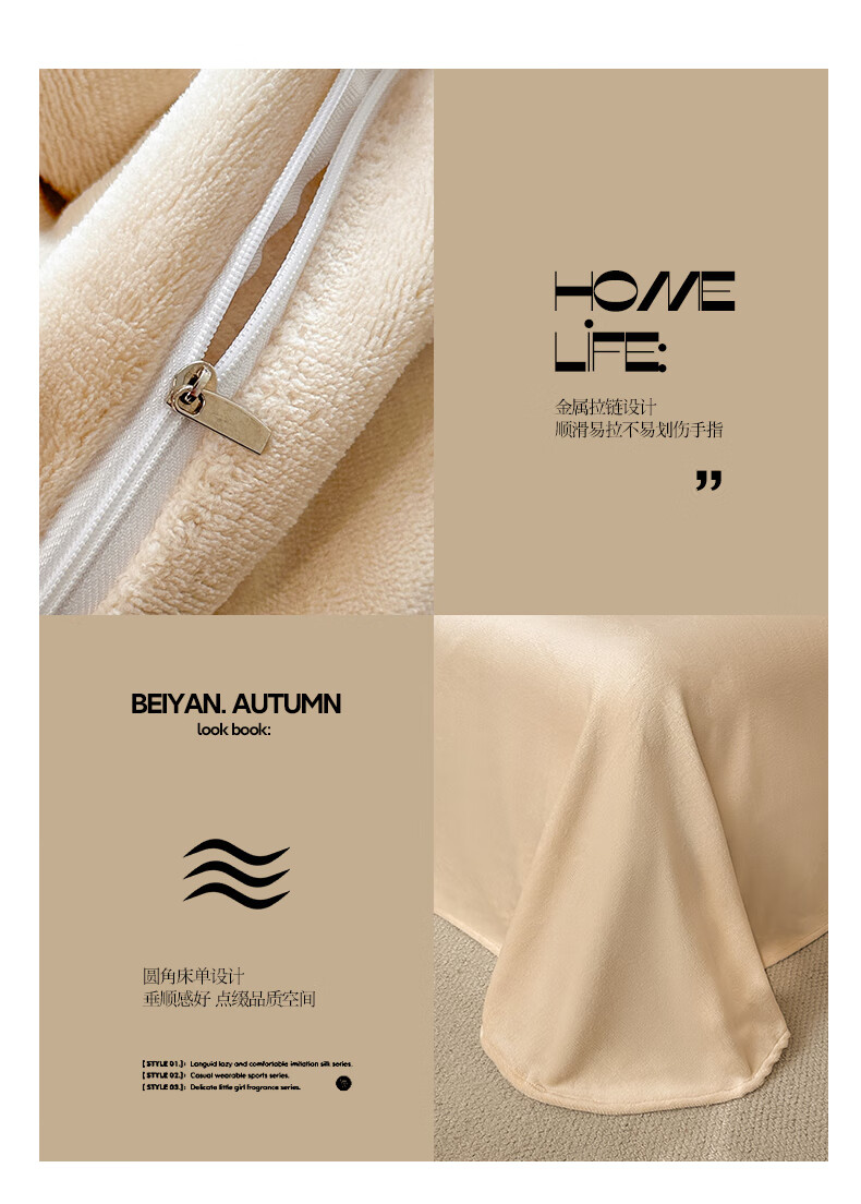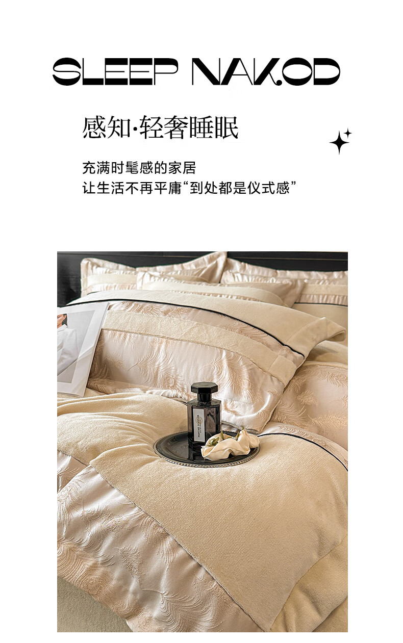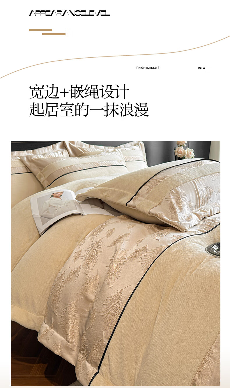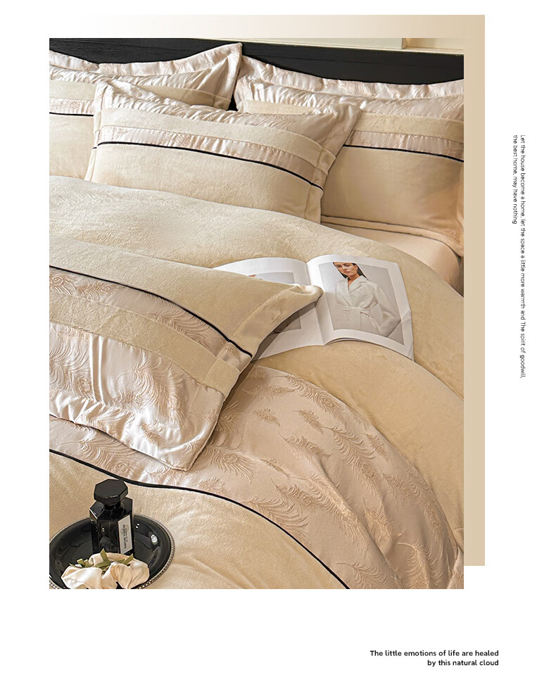 VJE高级感冬季床上四件套牛奶绒冬天双面绒加厚珊瑚绒床单被套床品 羽皇-香槟 三件套1.2m 床单款 -被套150*200cm
