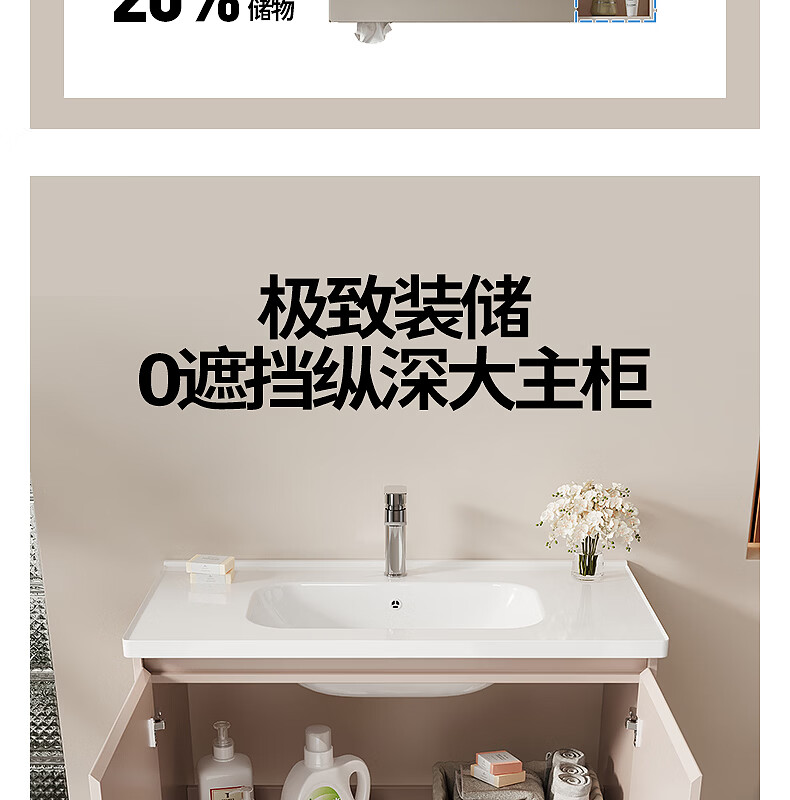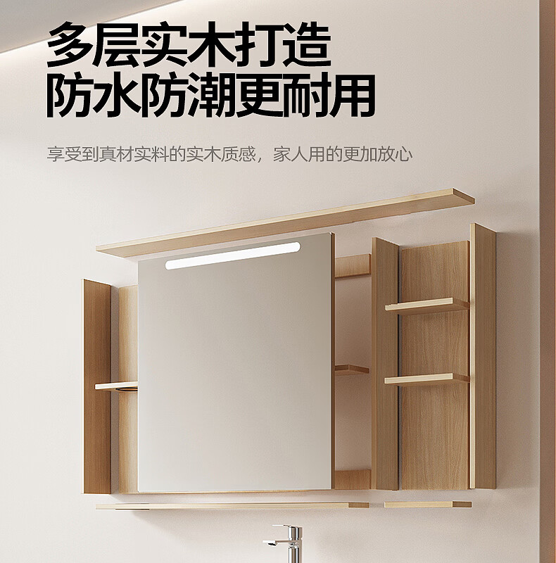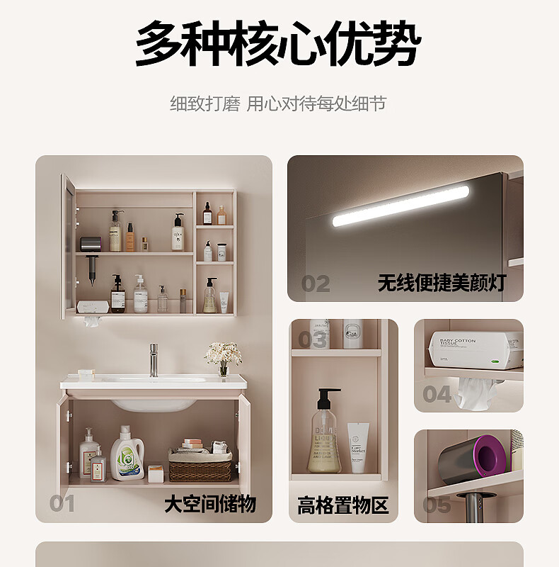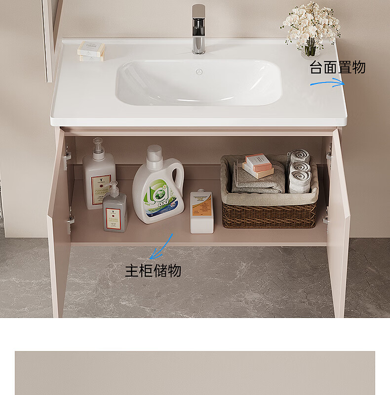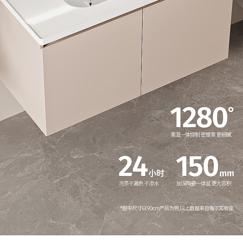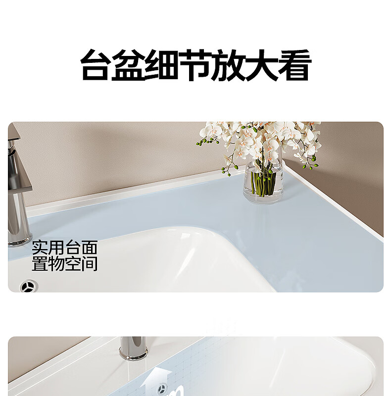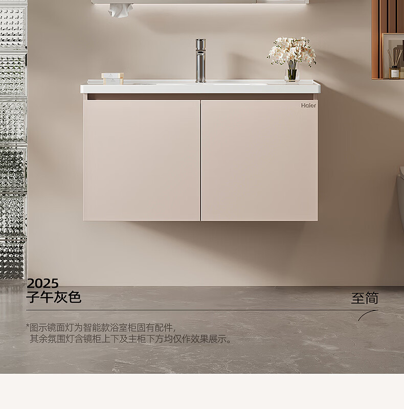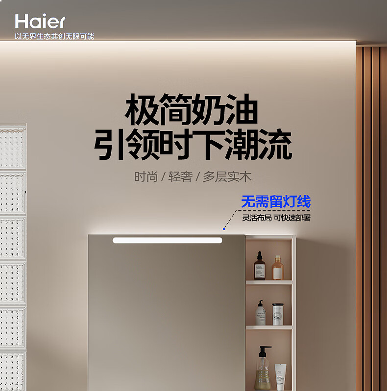 海尔浴室柜陶瓷一体盆洗手脸盆柜组合镜柜卫浴柜镜柜洗漱台H04135 奶油风70CM智能镜片(补光除雾)
