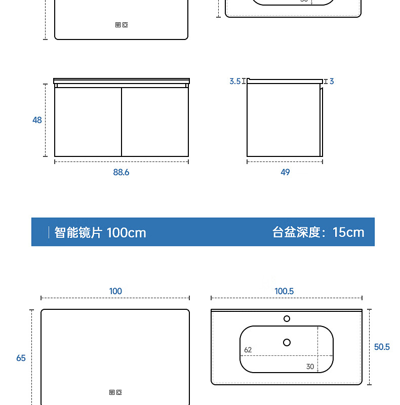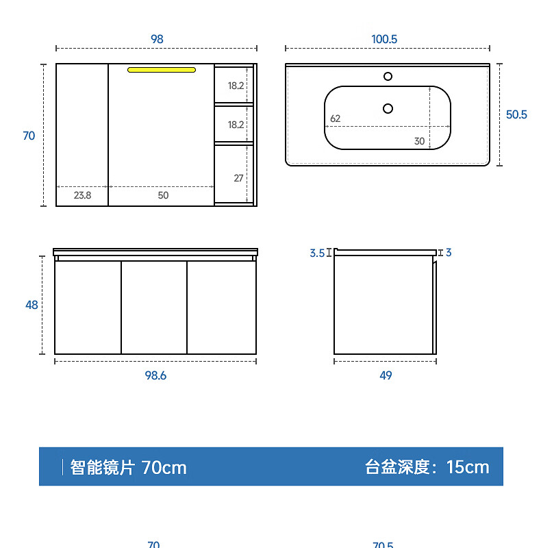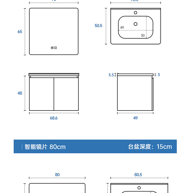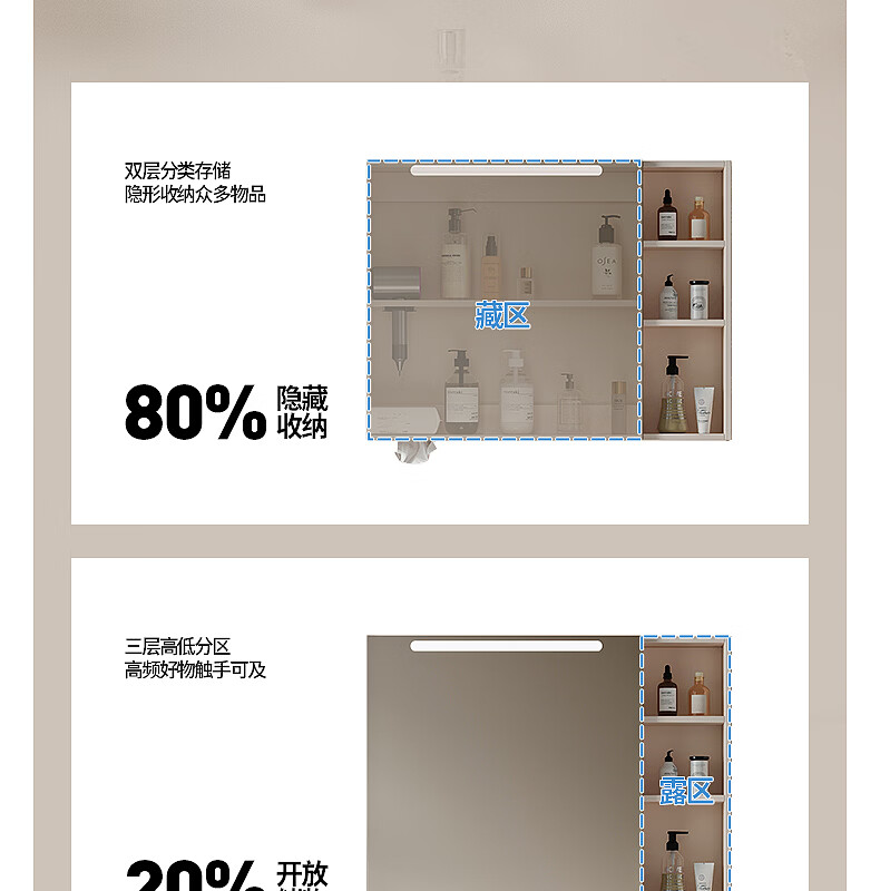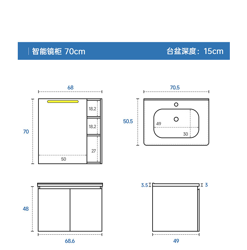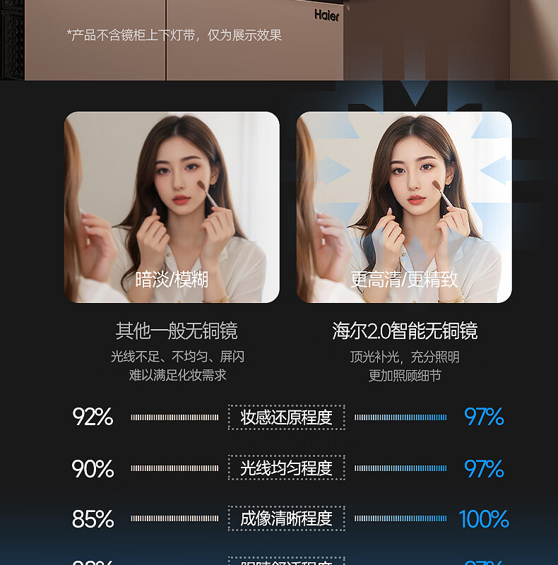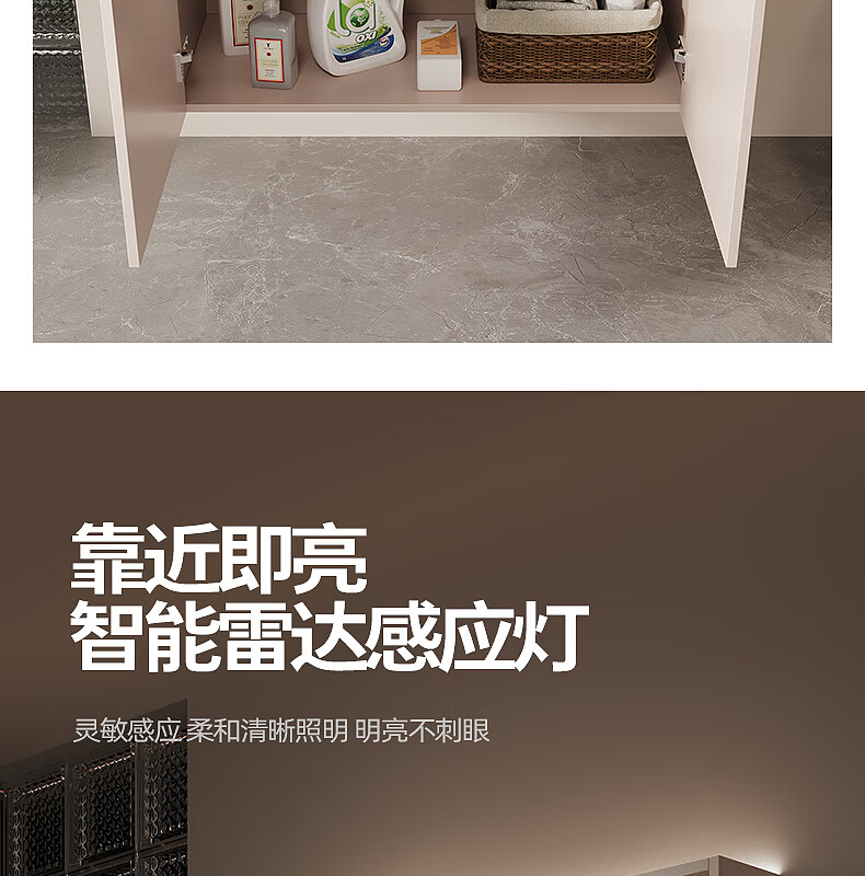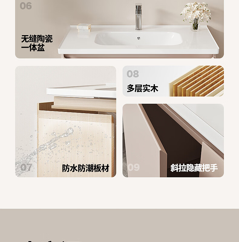 海尔浴室柜陶瓷一体盆洗手脸盆柜组合镜柜卫浴柜镜柜洗漱台H04135 奶油风70CM智能镜片(补光除雾)