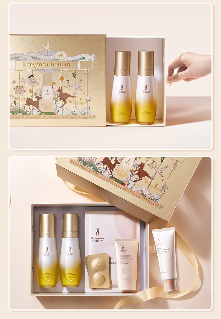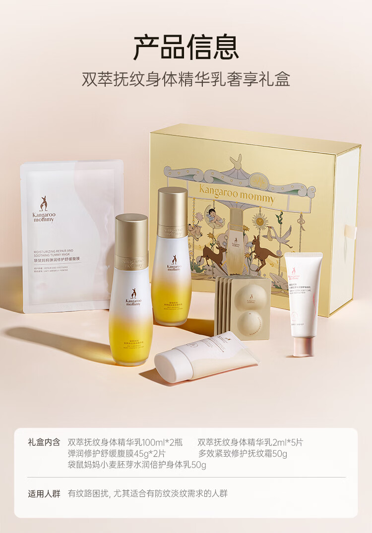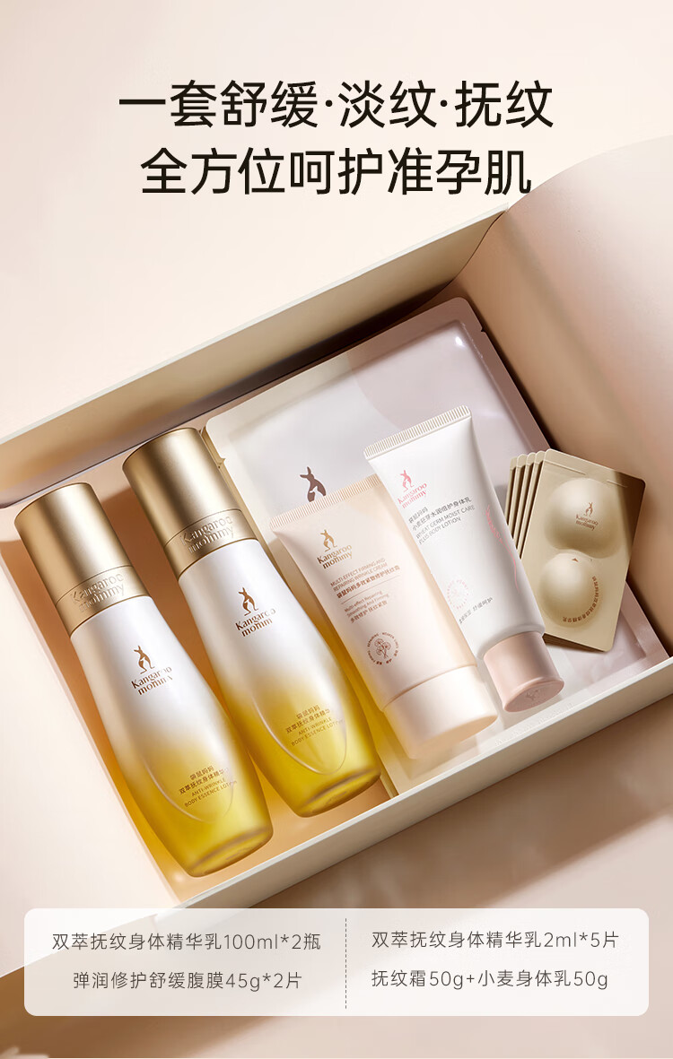 袋鼠妈妈准孕妇护肤品专用妈妈身体淡纹油乳双萃抚纹精华乳霜新年送礼盒