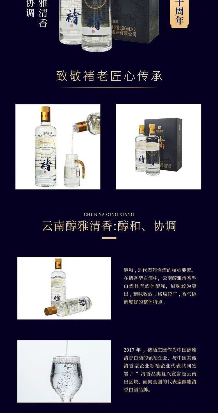 JHBROS【保证真品】褚酒·十周年纪念酒 50度清香型纯粮白酒500ml*6瓶 50度 500mL 2瓶 一盒 【礼盒款】 褚酒·十周年纪念酒