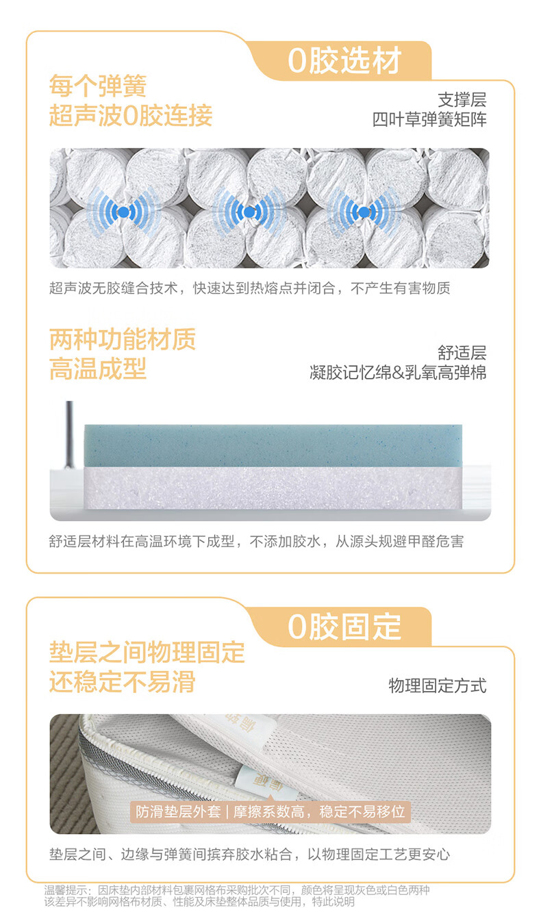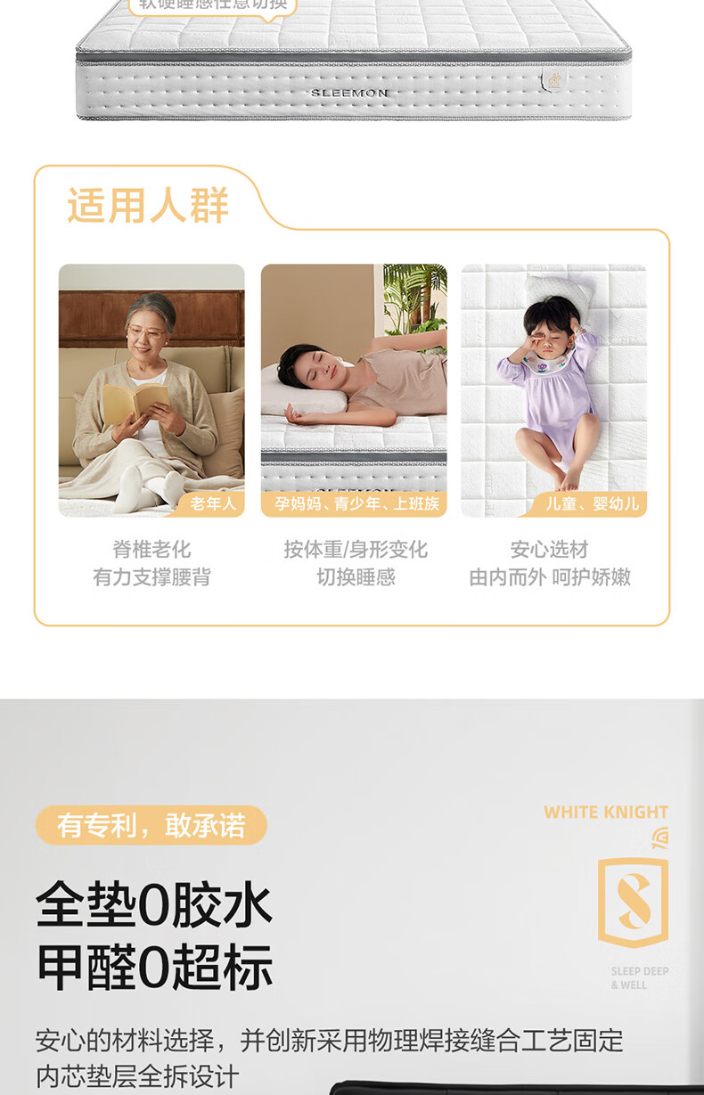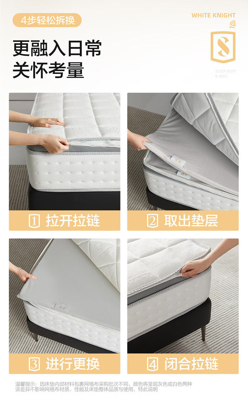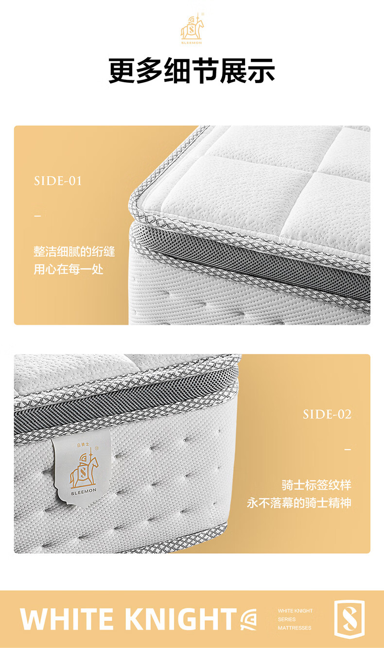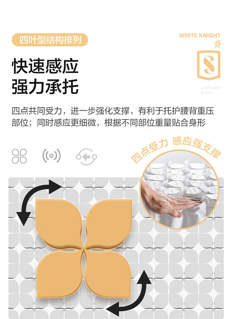 喜临门白骑士0胶 凝胶记忆棉四叶型弹簧矩阵可拆换床垫1.8x2米 软硬可调