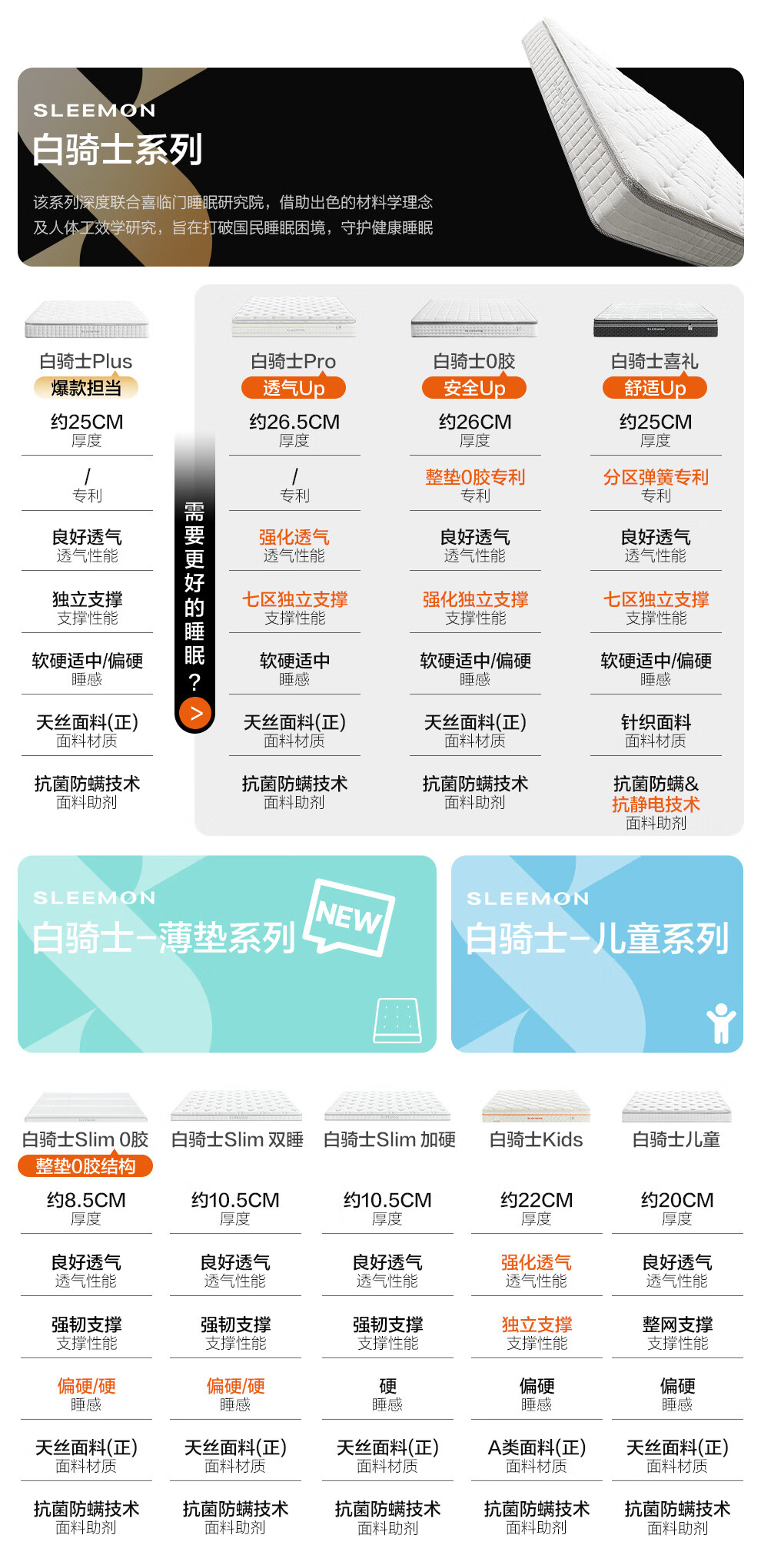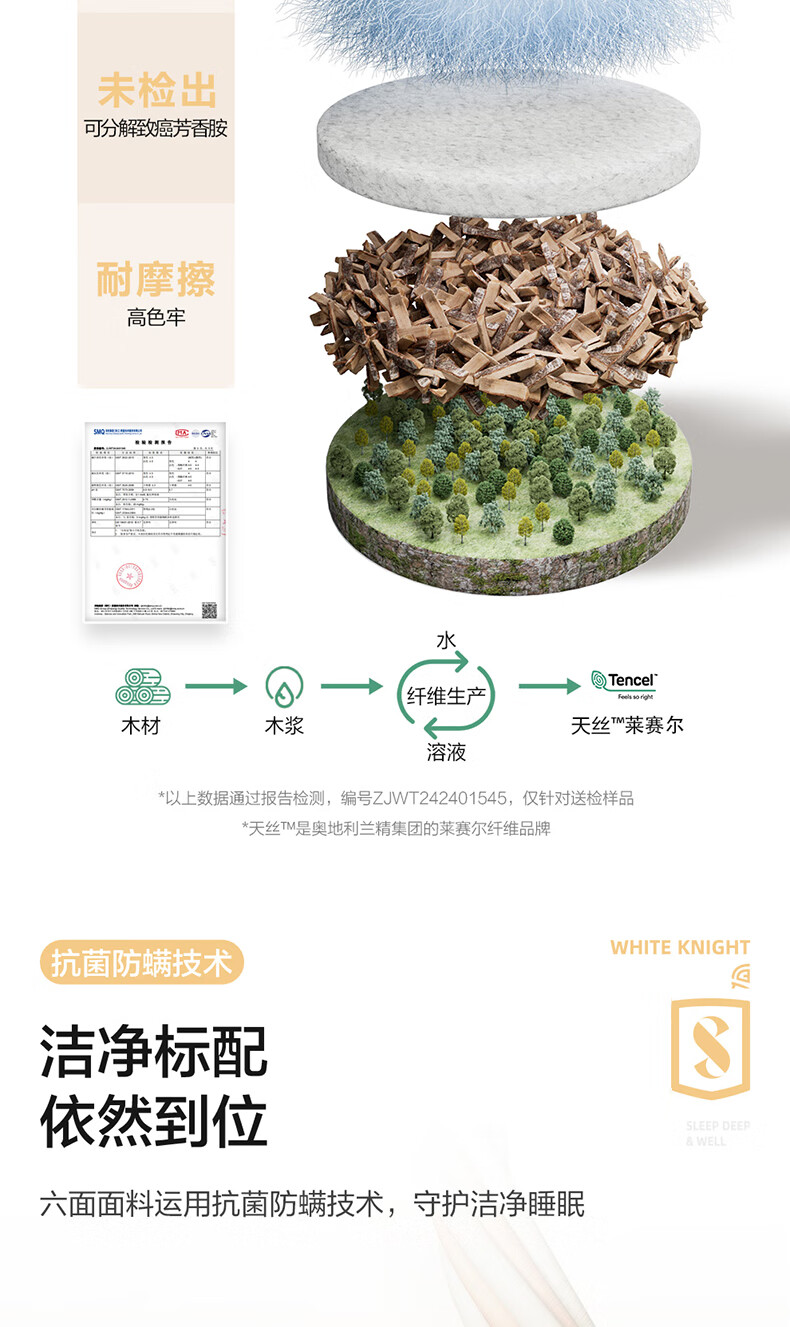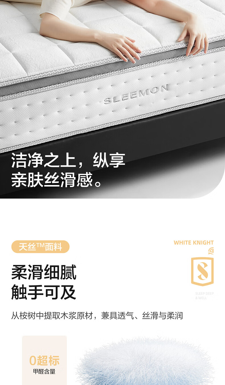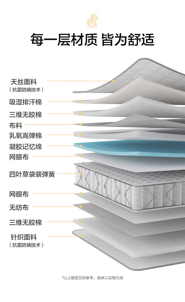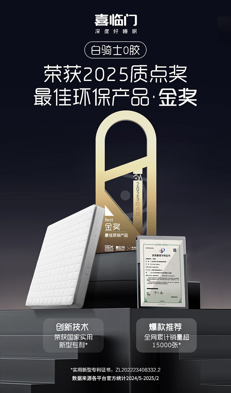 喜临门白骑士0胶 凝胶记忆棉四叶型弹簧矩阵可拆换床垫1.8x2米 软硬可调