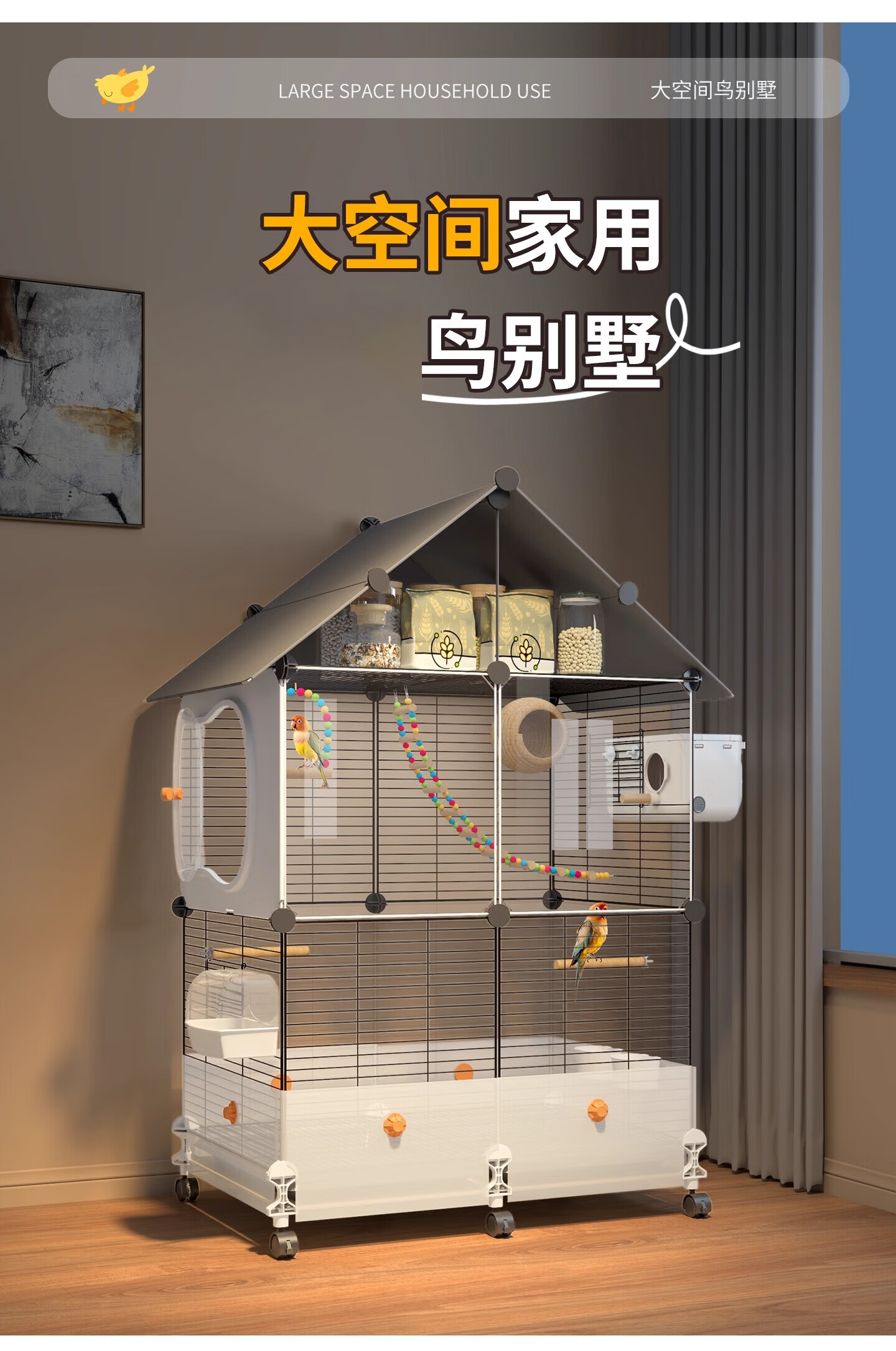 蔻丝鸟笼子鹦鹉大号防溅家用玄凤虎皮小太阳牡丹可洗澡生态别墅鸟笼 超大号72*36*117-三层四室-2-4鹦鹉 多鹦鹉鸟别墅8件套:详情页看明细