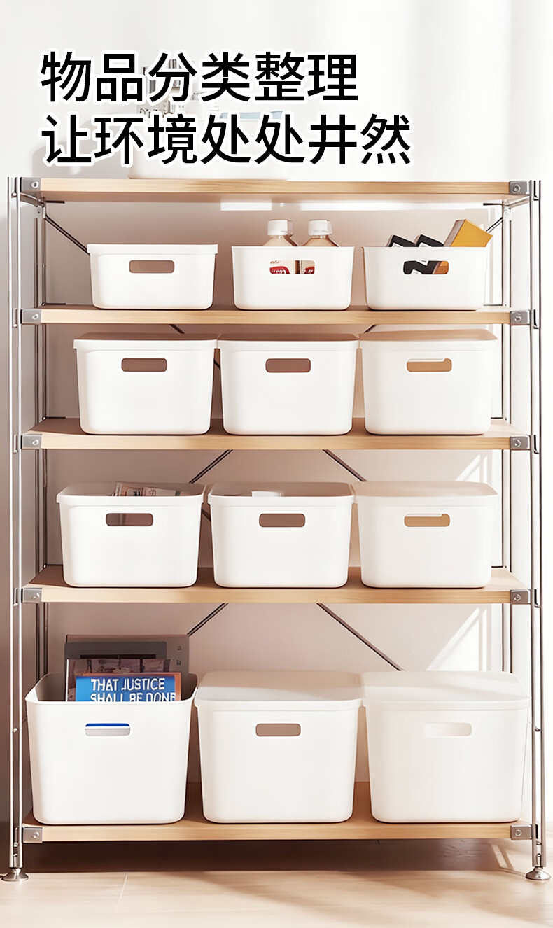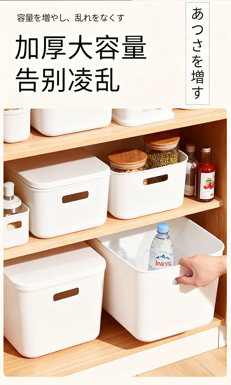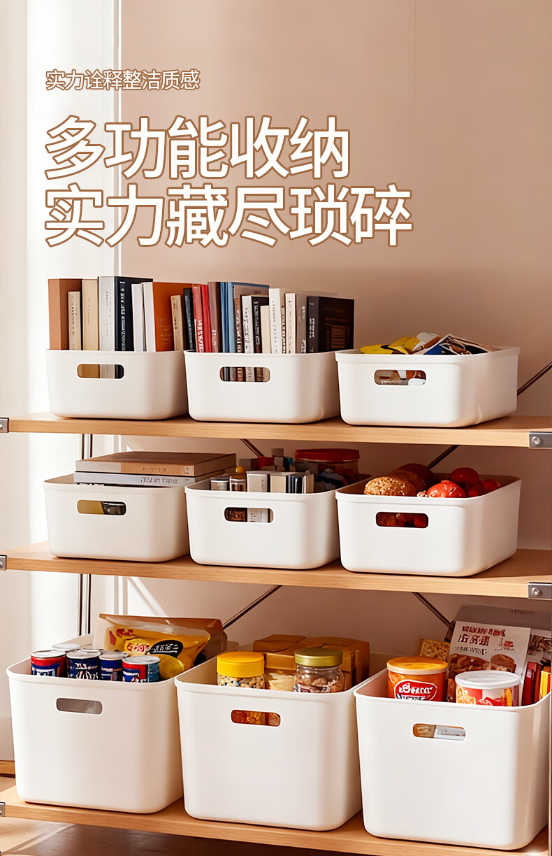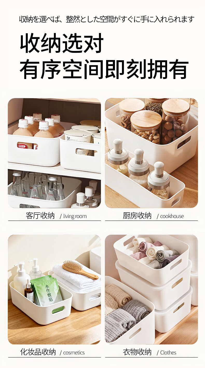 晟旎尚品杂物收纳盒家用零食玩具桌面储物盒玩具零食整理筐整理箱收纳箱 大号加高加厚【2只装】带盖 白色