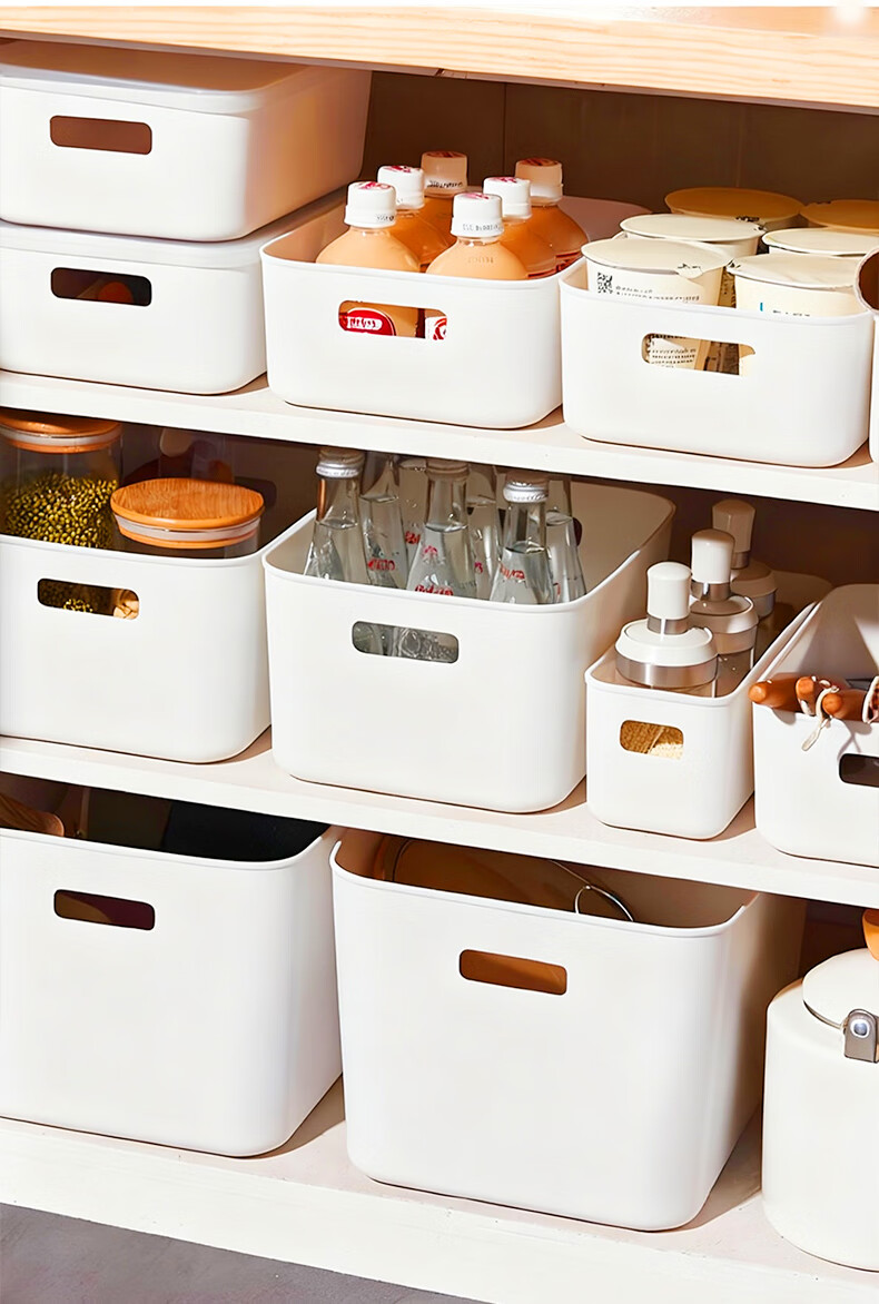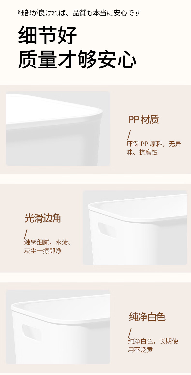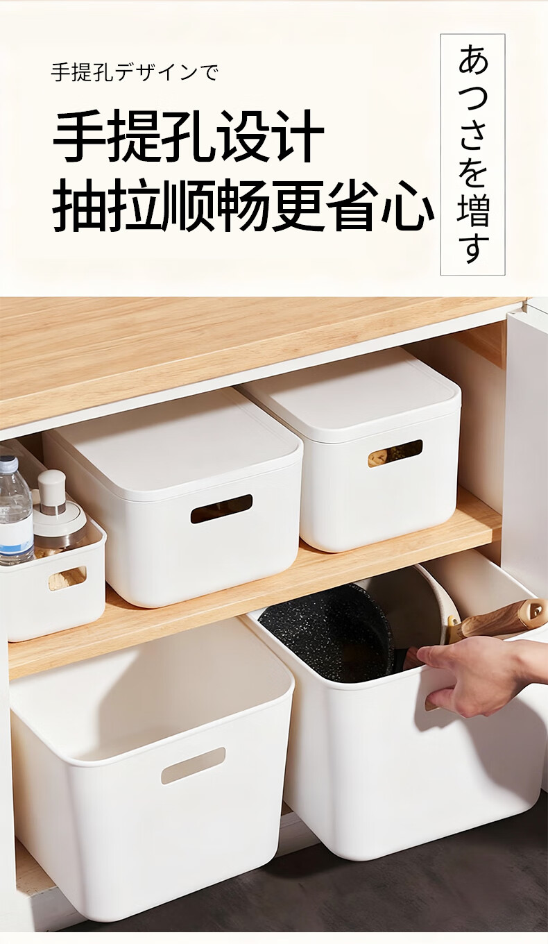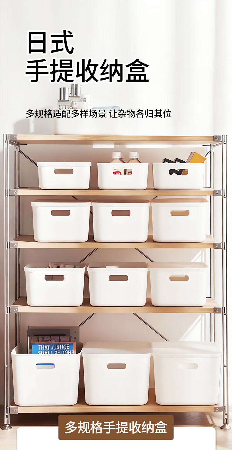 晟旎尚品杂物收纳盒家用零食玩具桌面储物盒玩具零食整理筐整理箱收纳箱 大号加高加厚【2只装】带盖 白色