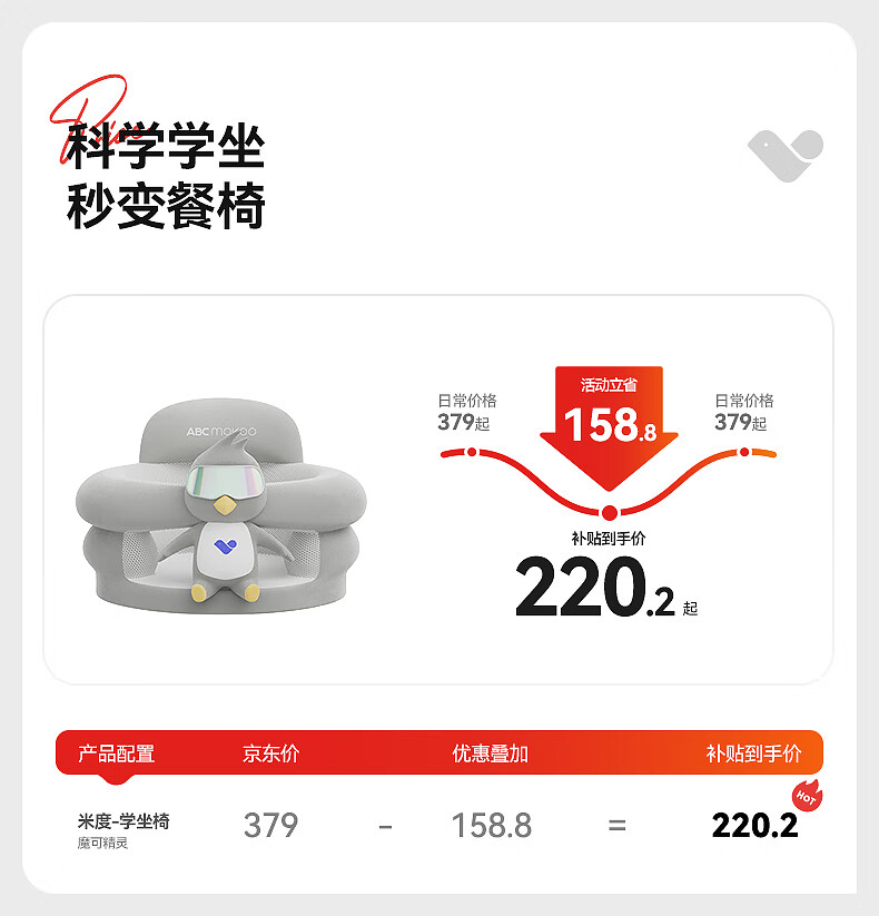 ABCMOKOO婴儿学坐椅不伤脊柱防侧翻座椅宝宝坐立神器沙发餐椅-魔可精灵