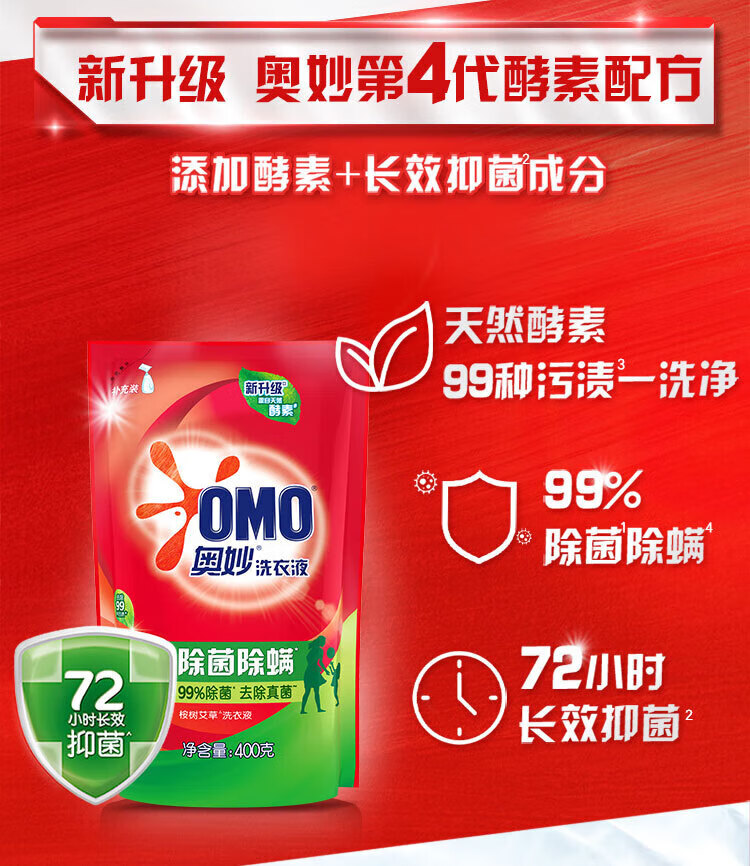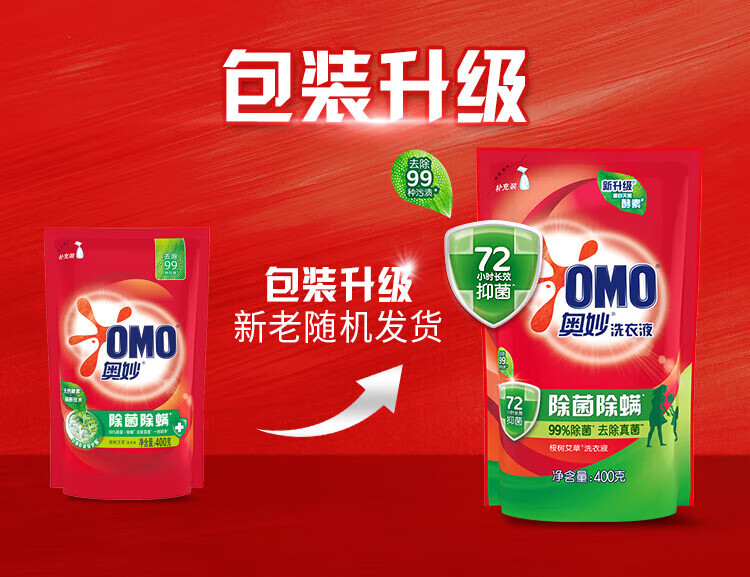 奥妙除菌除螨洗衣液袋装长效抑菌桉树艾草香去污去渍家用补充装 除菌除螨400g*5袋+薰衣草10g