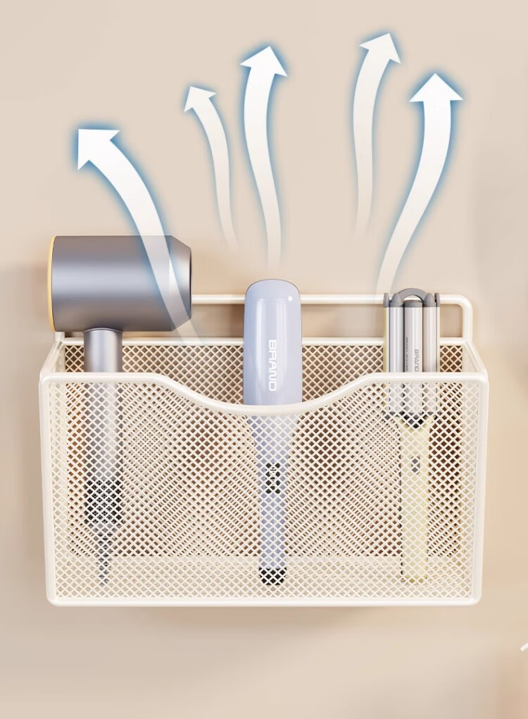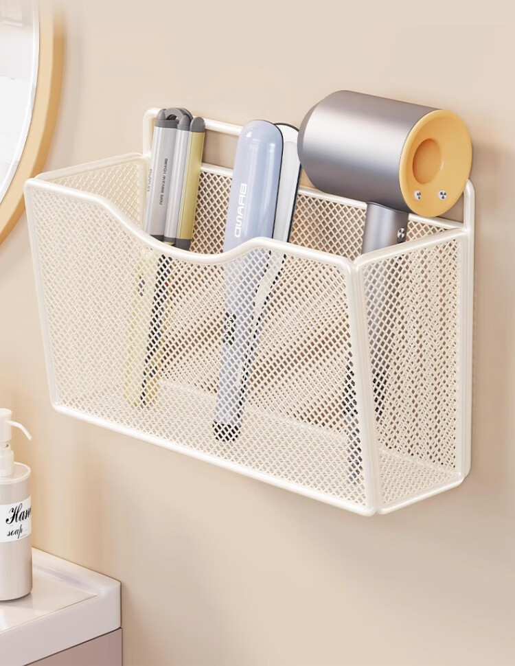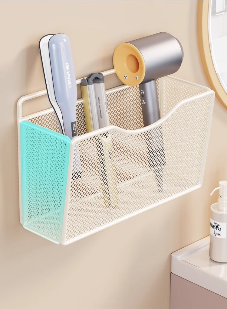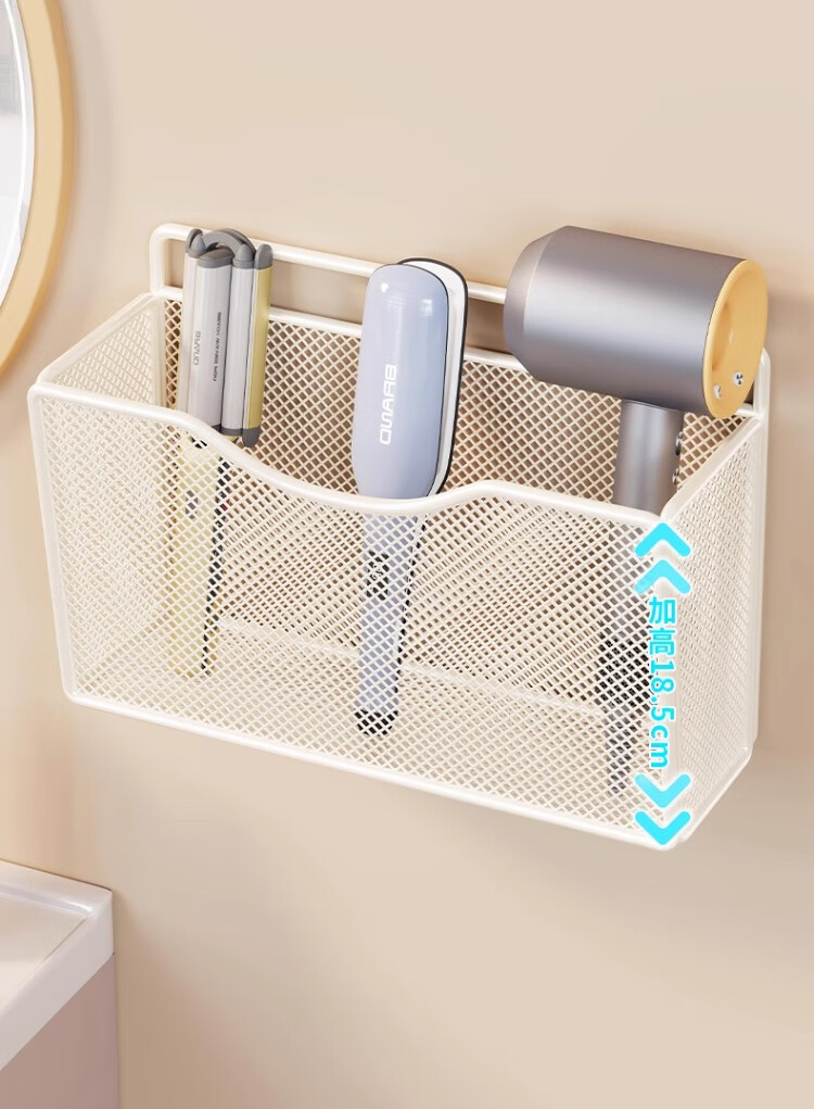 尔思家卫生间置物架卷发棒直板夹放置架洗漱台家用墙上壁挂式牙杯收纳架 白色