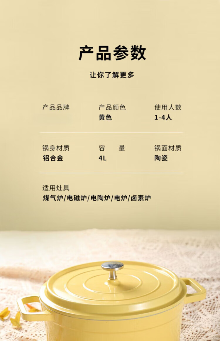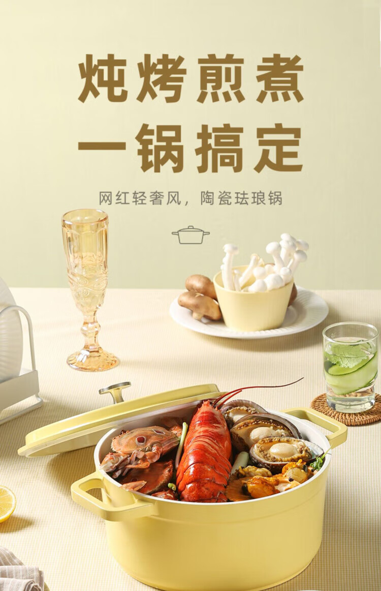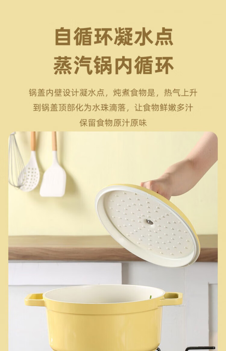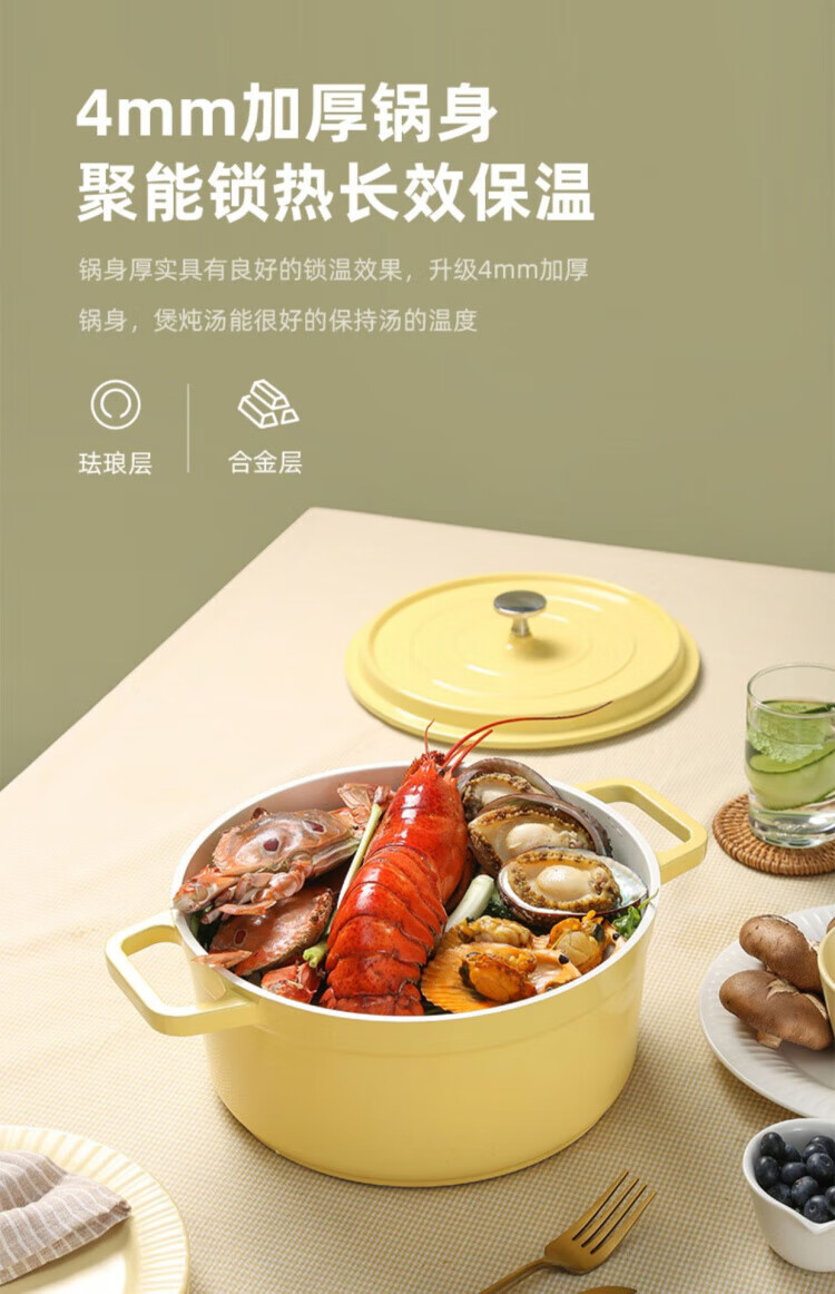 SSIIXX日本品牌不粘锅家用炖锅泡面锅燃气灶电磁炉汤锅双耳汤锅乔迁礼物 黄色 20cm
