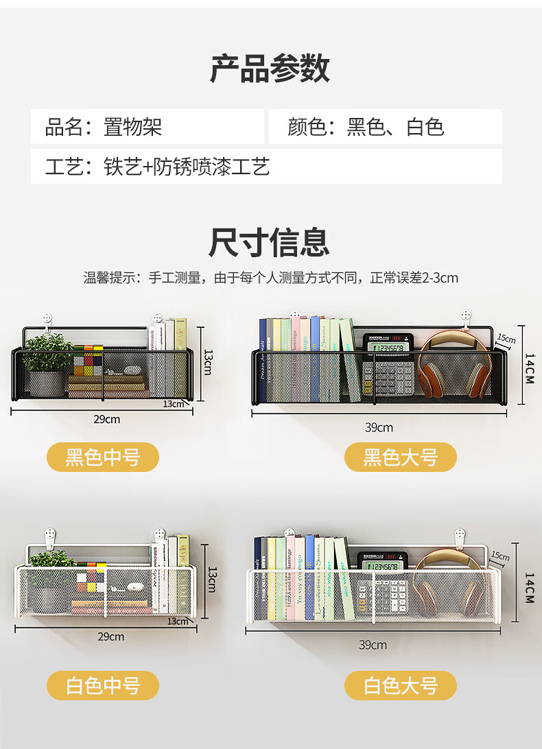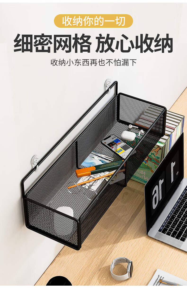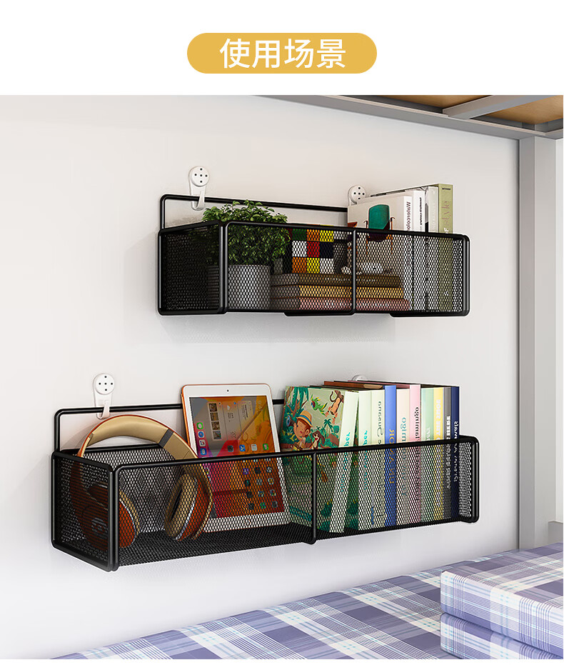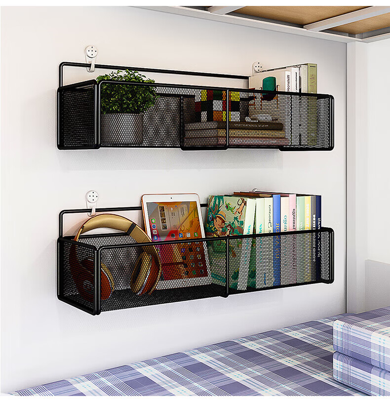 馨婺家床上置物架宿舍上铺神器学生寝室床头收纳挂篮浴室置物架子收纳筐 黑色-小号【加粗密网】