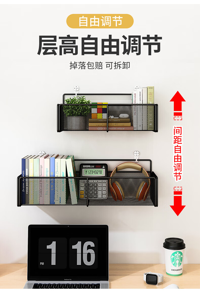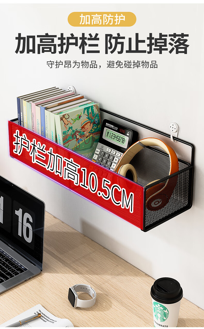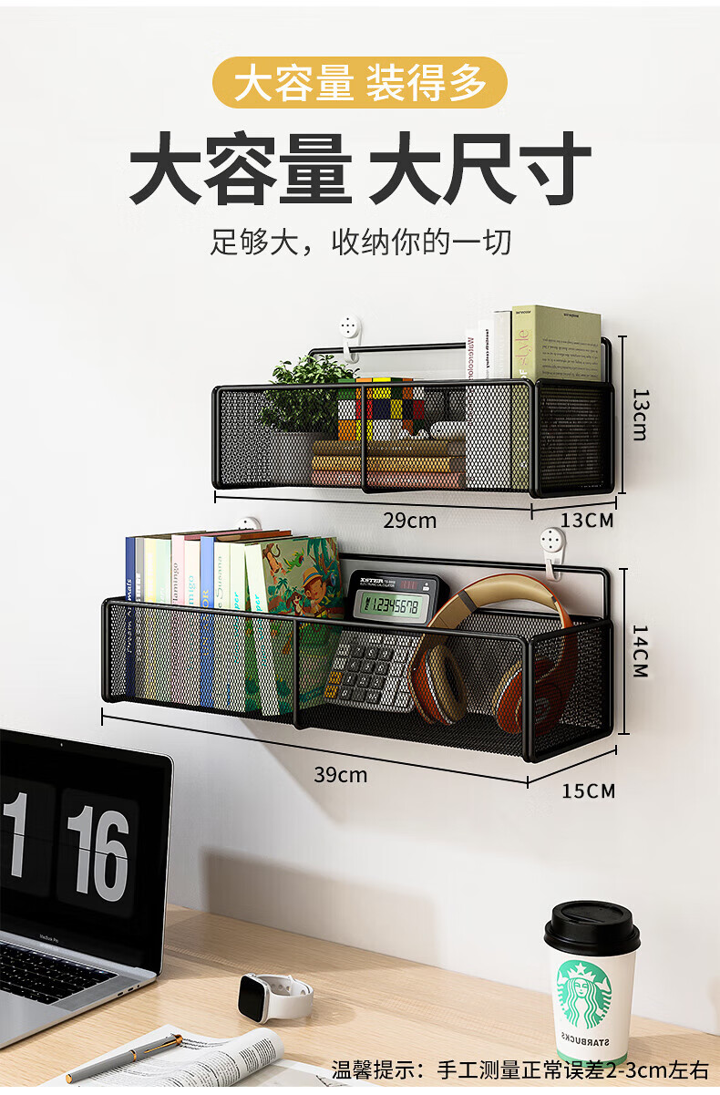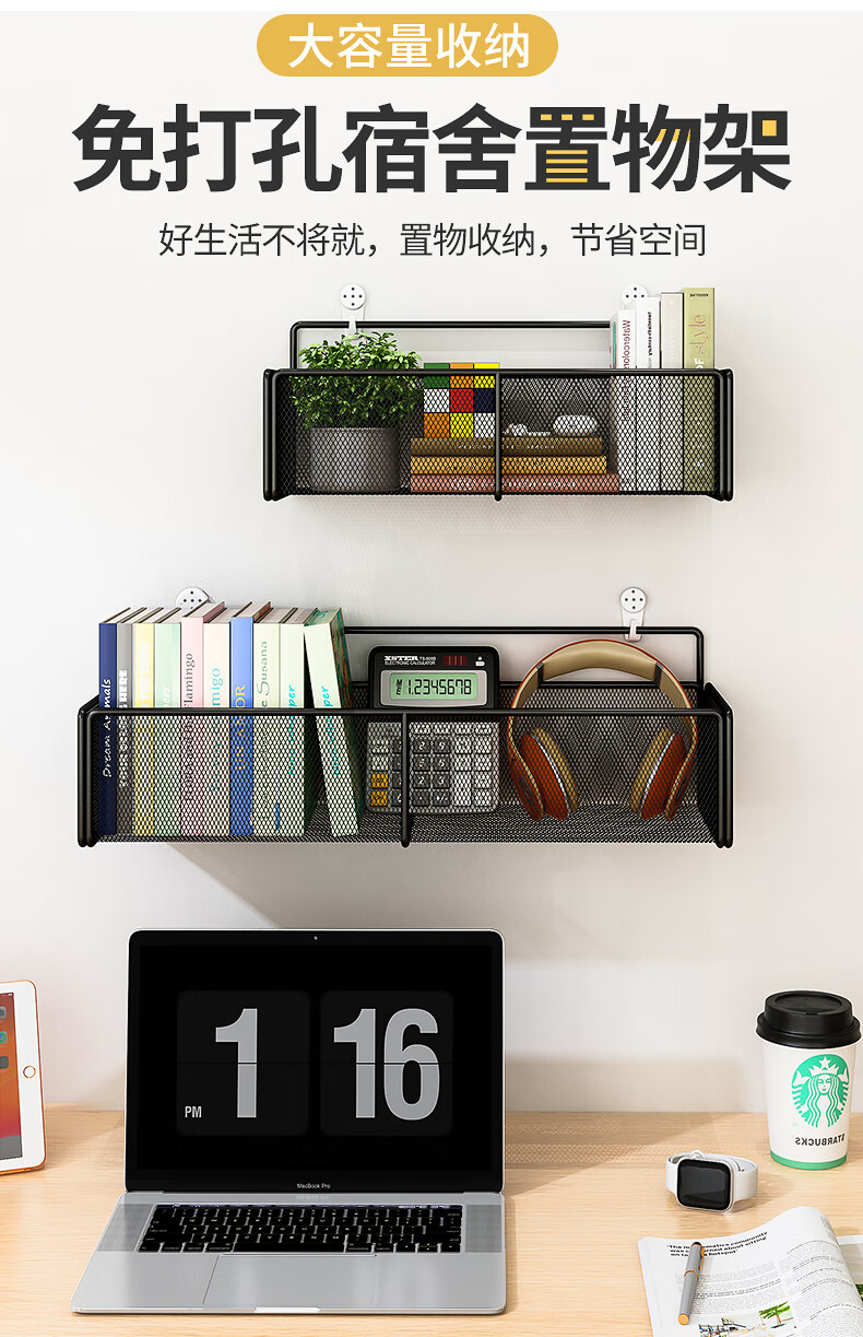 馨婺家床上置物架宿舍上铺神器学生寝室床头收纳挂篮浴室置物架子收纳筐 黑色-小号【加粗密网】