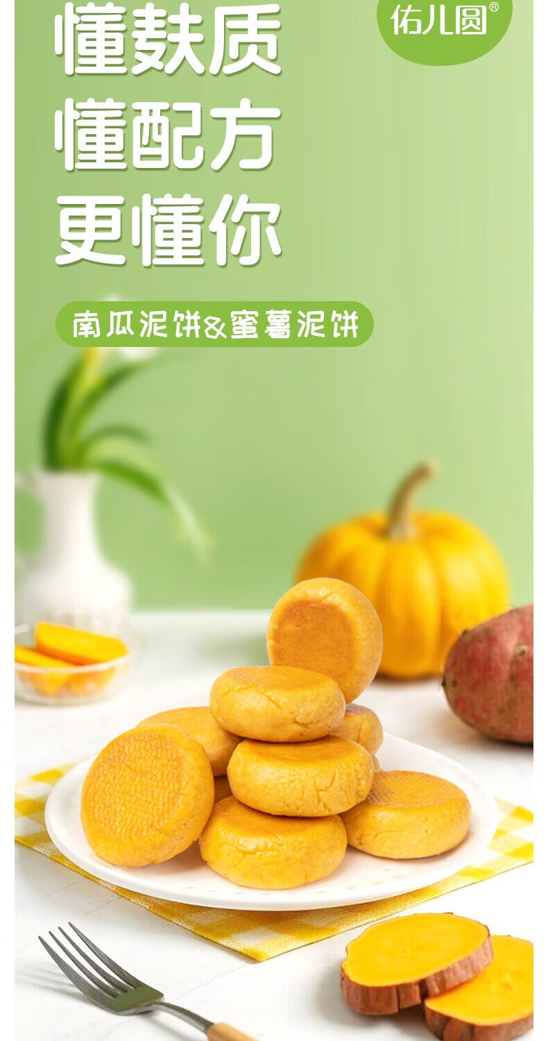 佑儿圆南瓜蜜薯泥饼350g孩子营养早餐小饼8粒装 独立无麸质生产线 南瓜泥饼