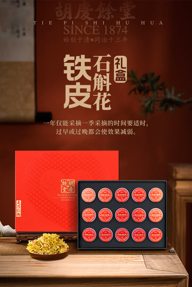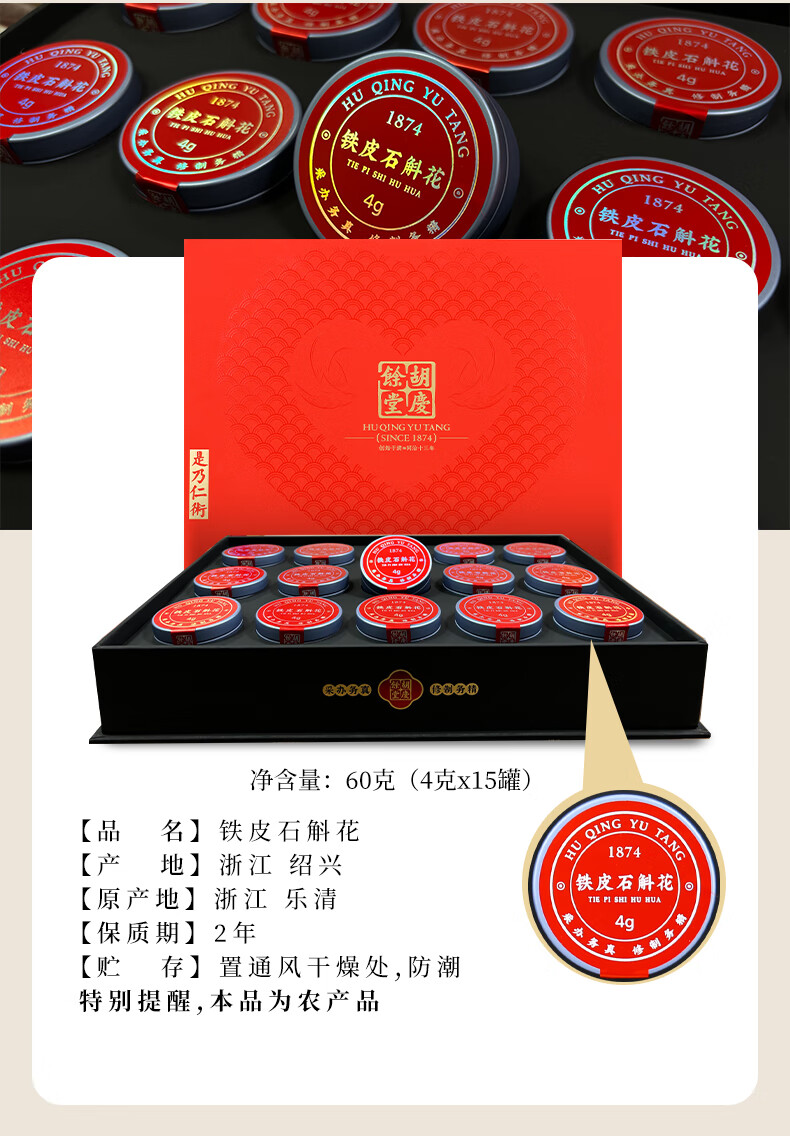 胡庆余堂铁皮石斛花15罐礼盒年货礼盒过年礼盒年货补品营养品送礼送长辈 60克(线下同款)