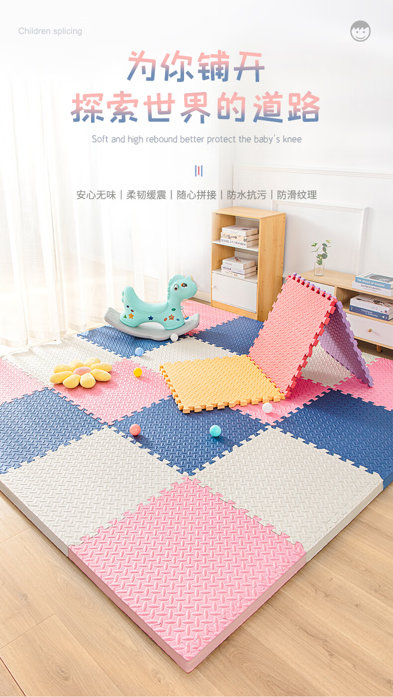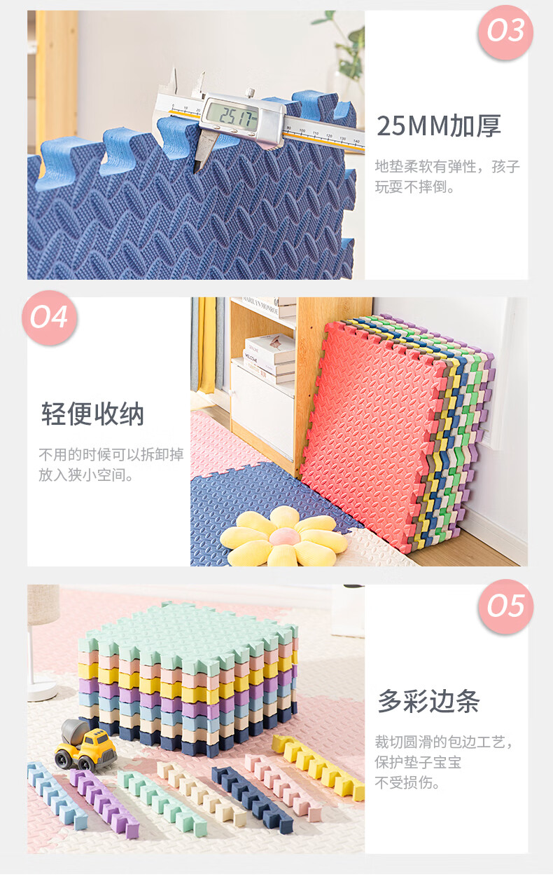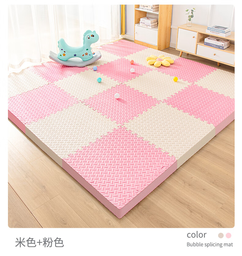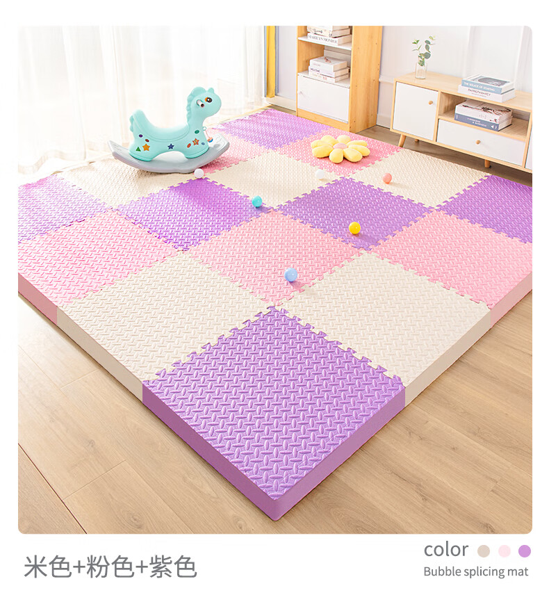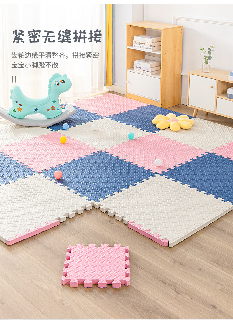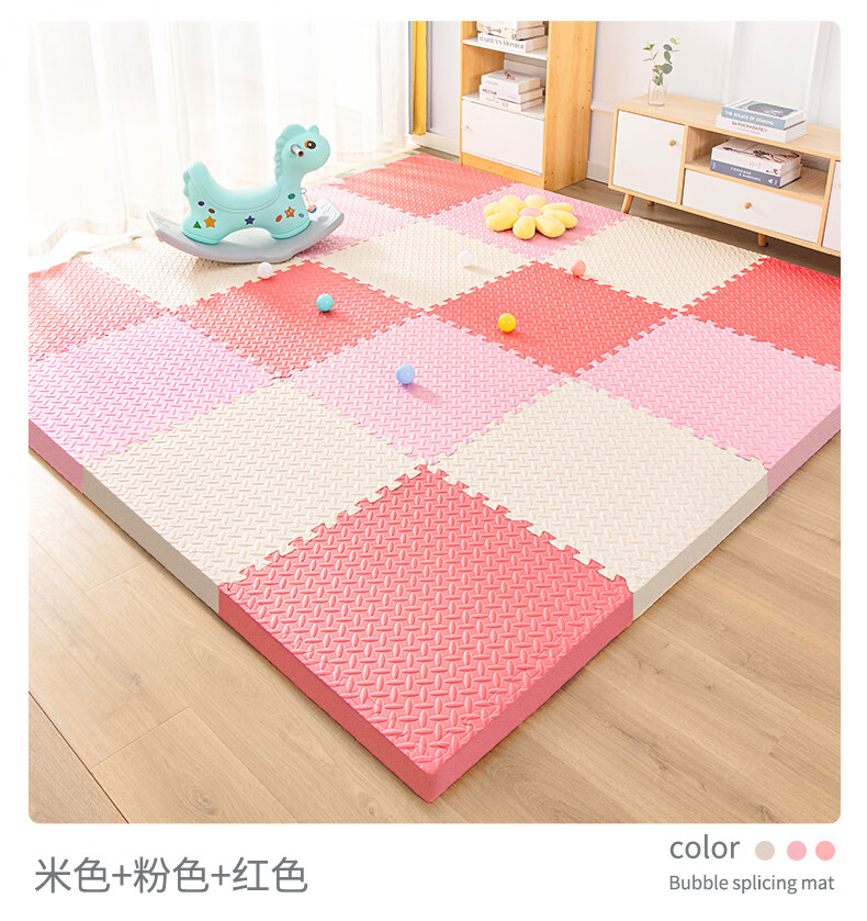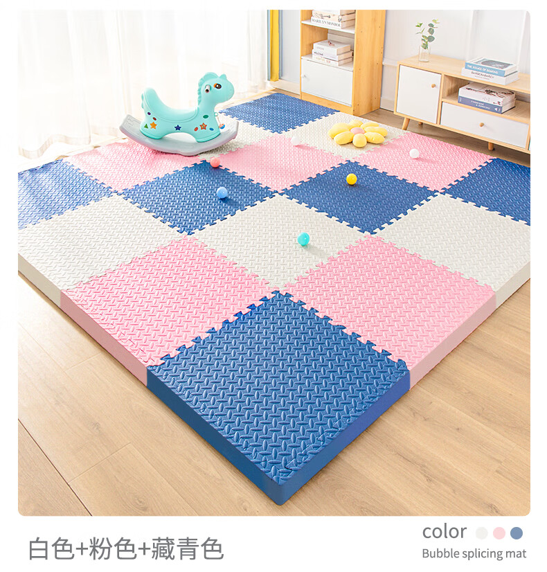 KETAOQI泡沫垫拼接垫子家用卧室加厚爬行垫儿童地板垫榻榻米拼图爬爬垫 白色+粉色+藏青-送边条 30*30*2.5厘米【24片】加厚防摔