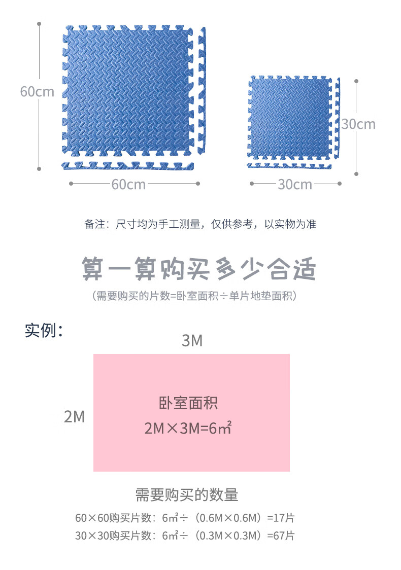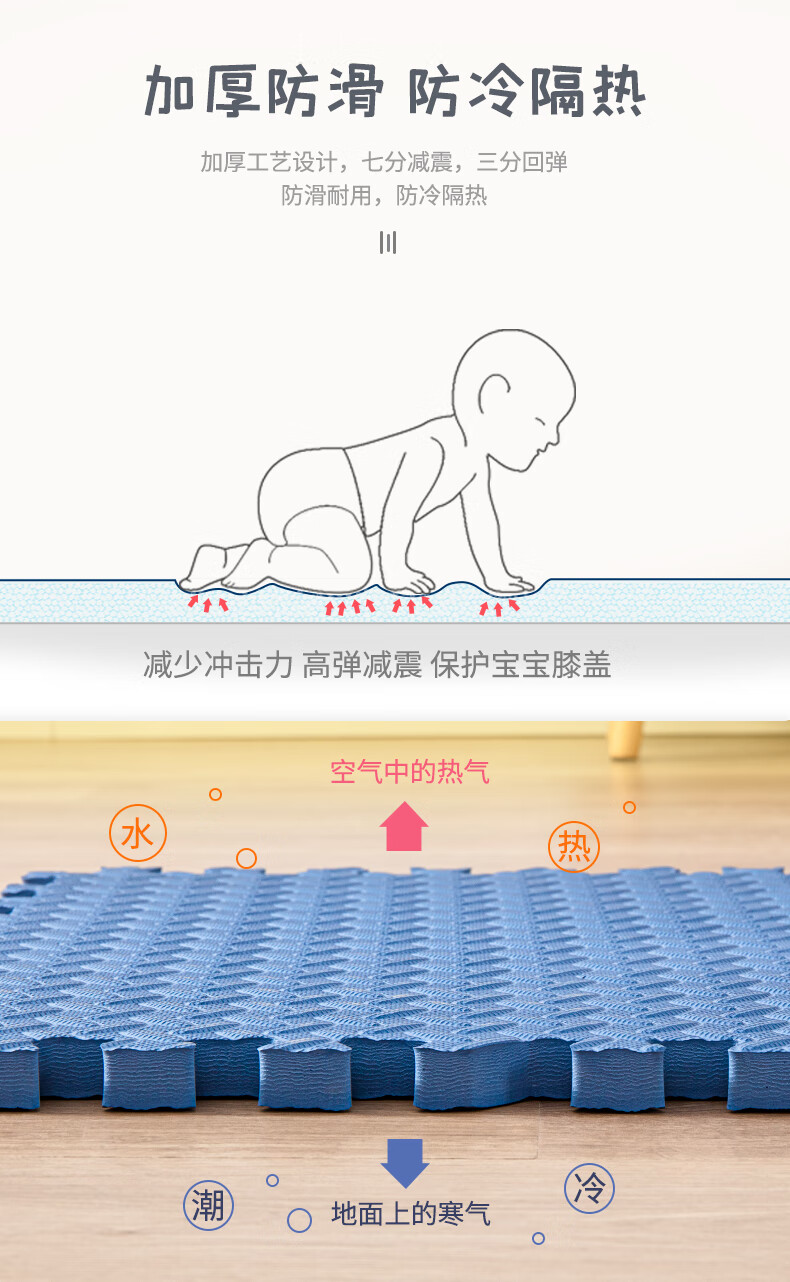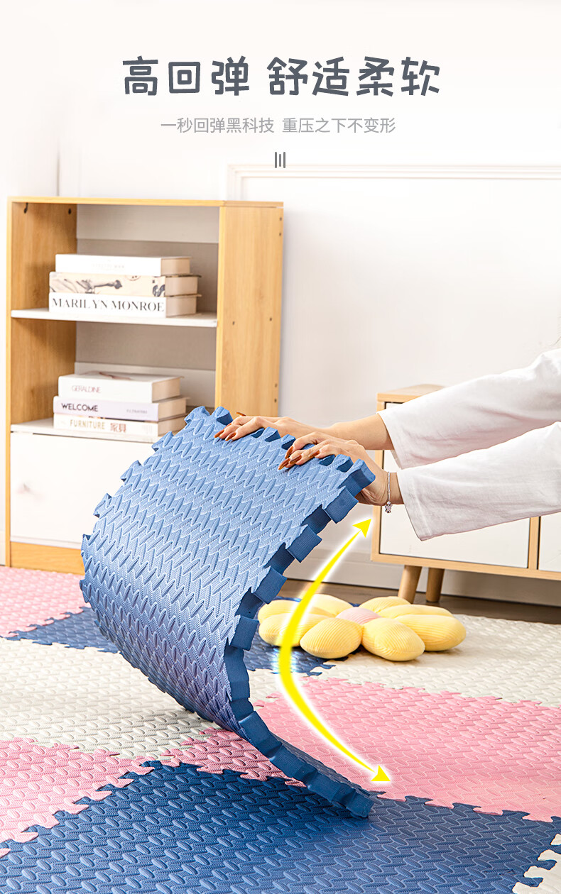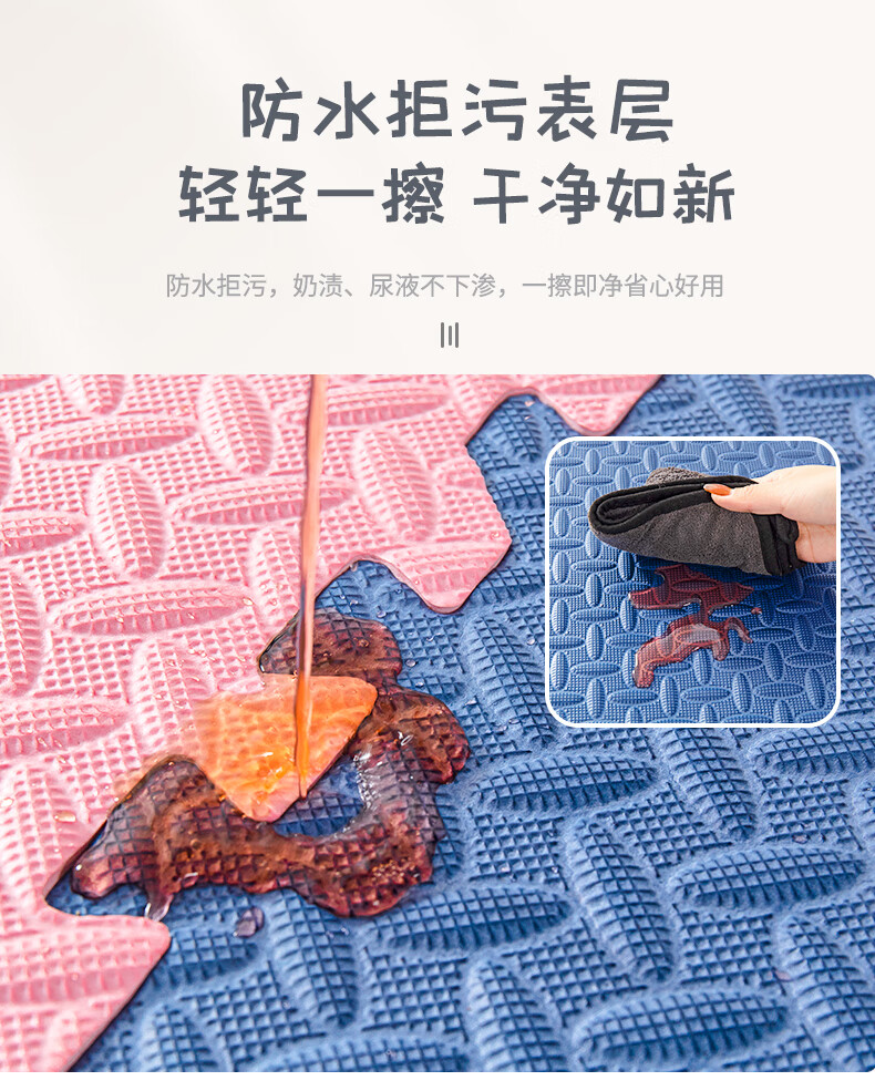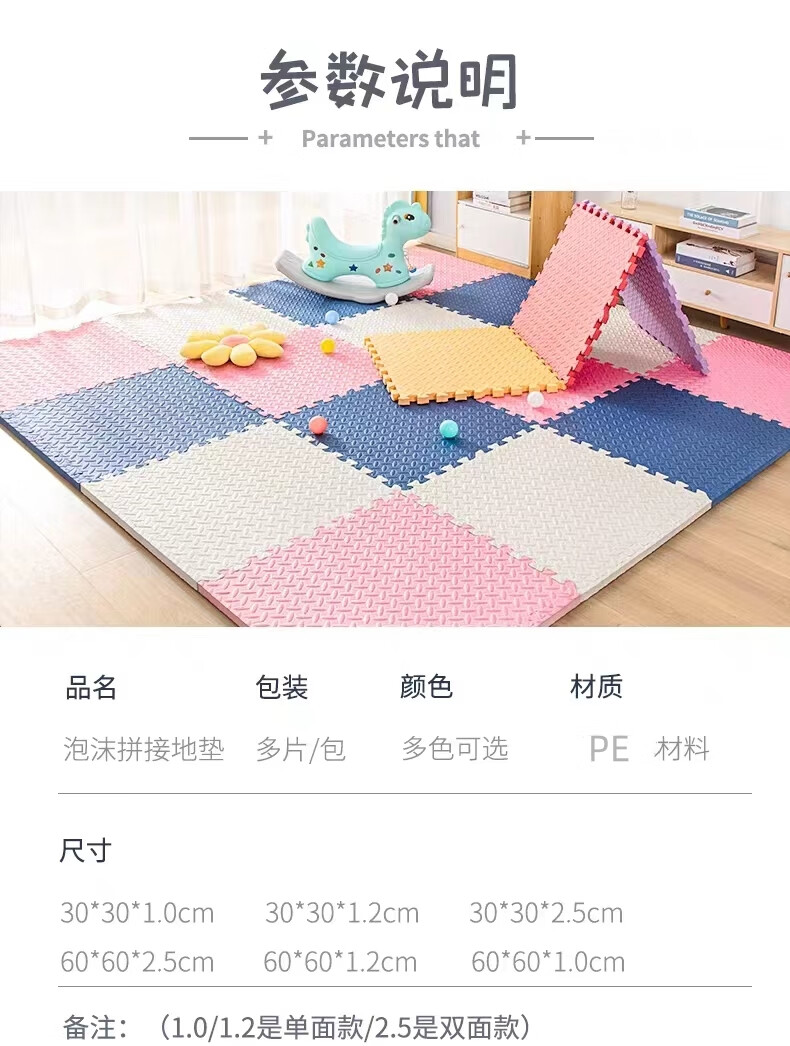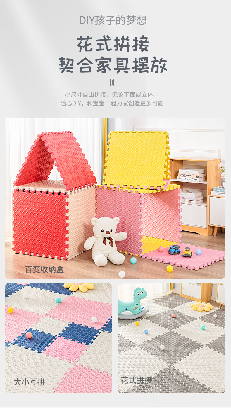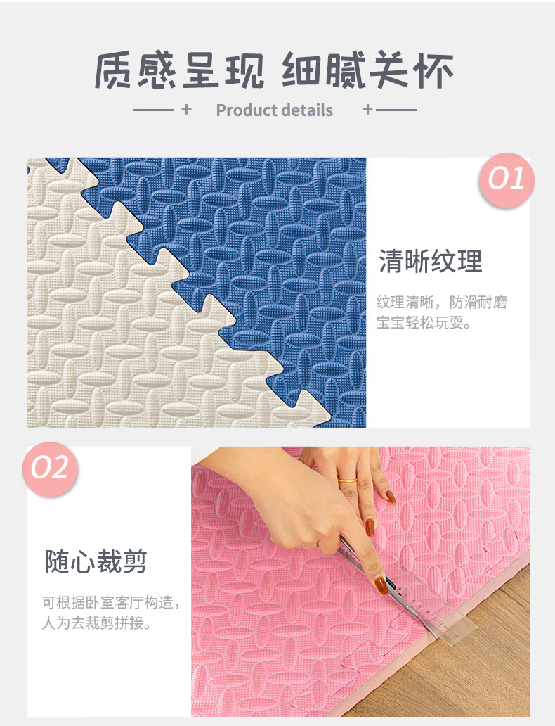 KETAOQI泡沫垫拼接垫子家用卧室加厚爬行垫儿童地板垫榻榻米拼图爬爬垫 白色+粉色+藏青-送边条 30*30*2.5厘米【24片】加厚防摔