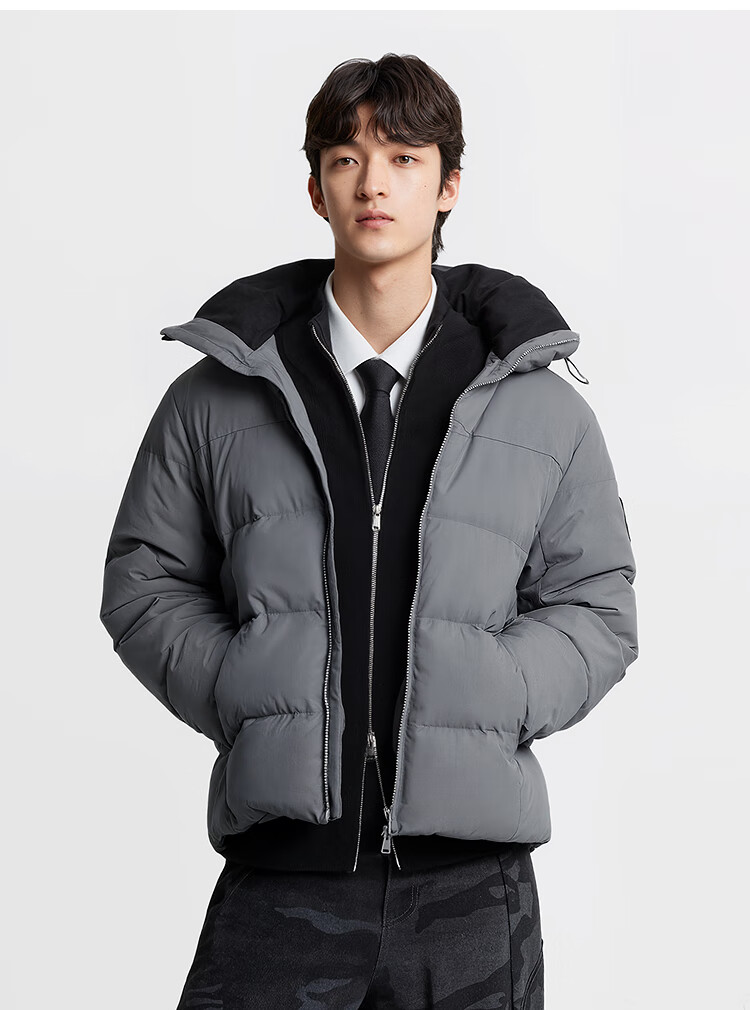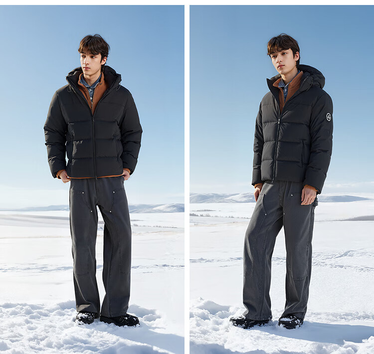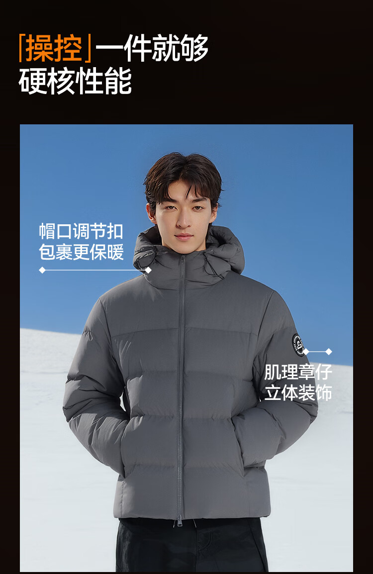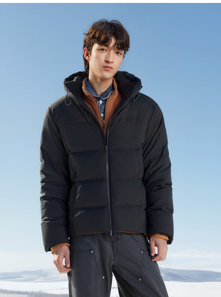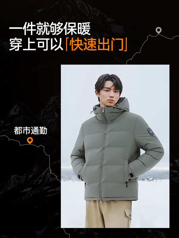 森马(Semir)羽绒服男90绒三防加厚外套2025冬季户外连帽面包服109725113104