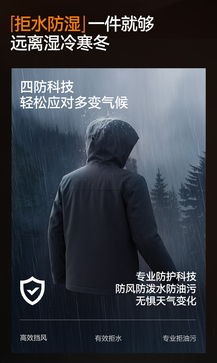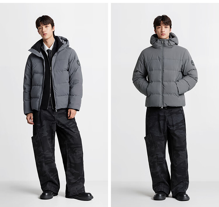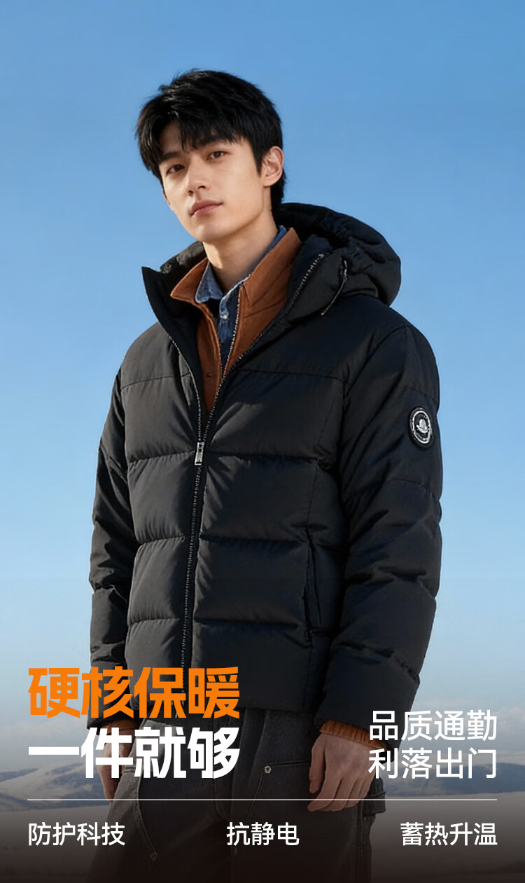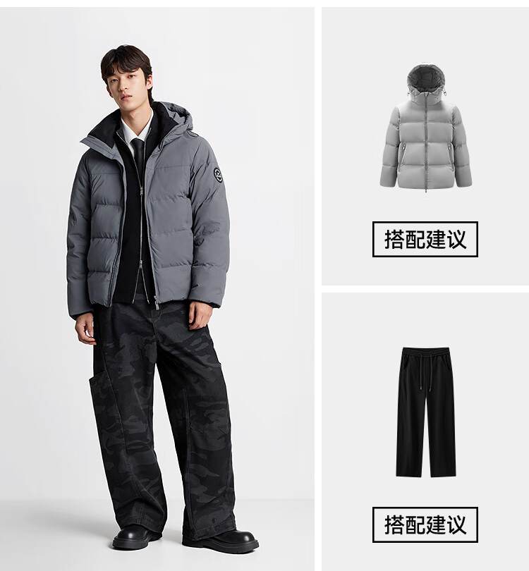 森马(Semir)羽绒服男90绒三防加厚外套2025冬季户外连帽面包服109725113104