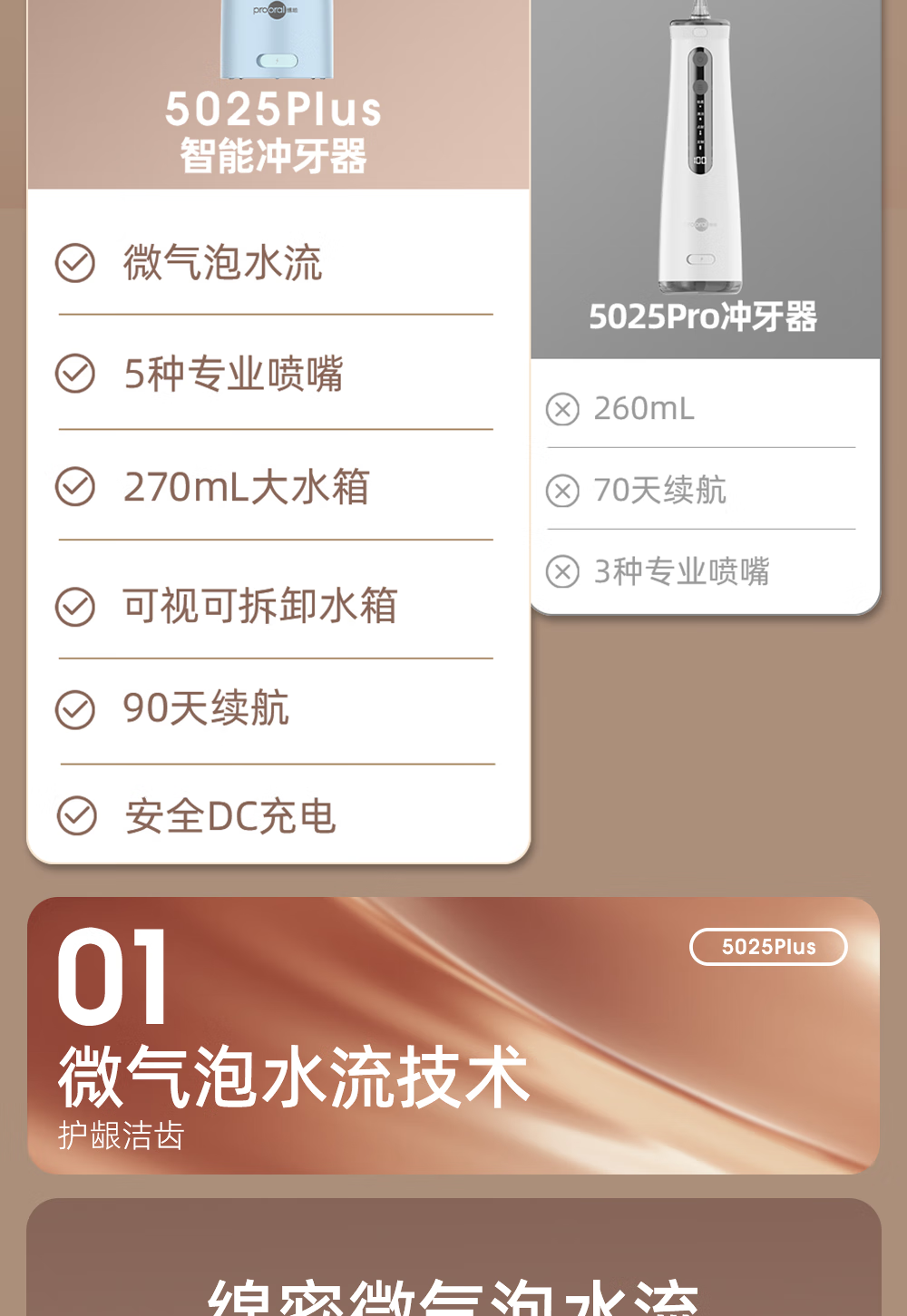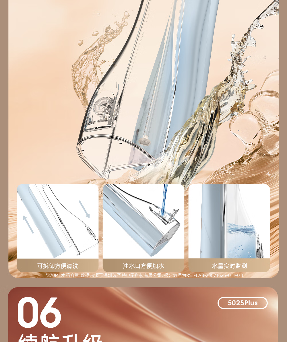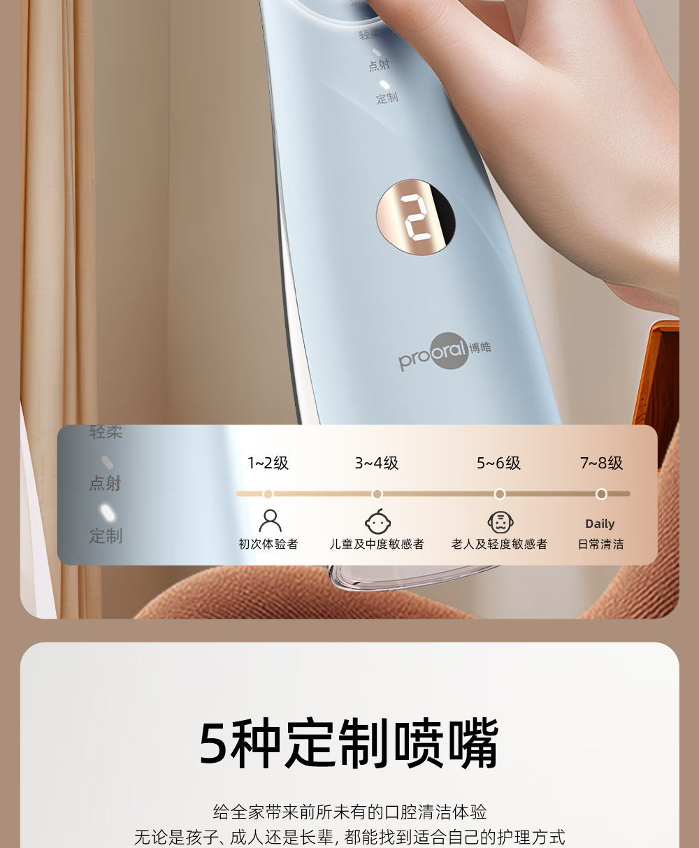 博皓(prooral)冲牙器便携家用洗牙器冲洗器电动洁牙器水牙线青少年正畸清洁器除牙垢 送朋友情侣礼物 5025plus 蓝
