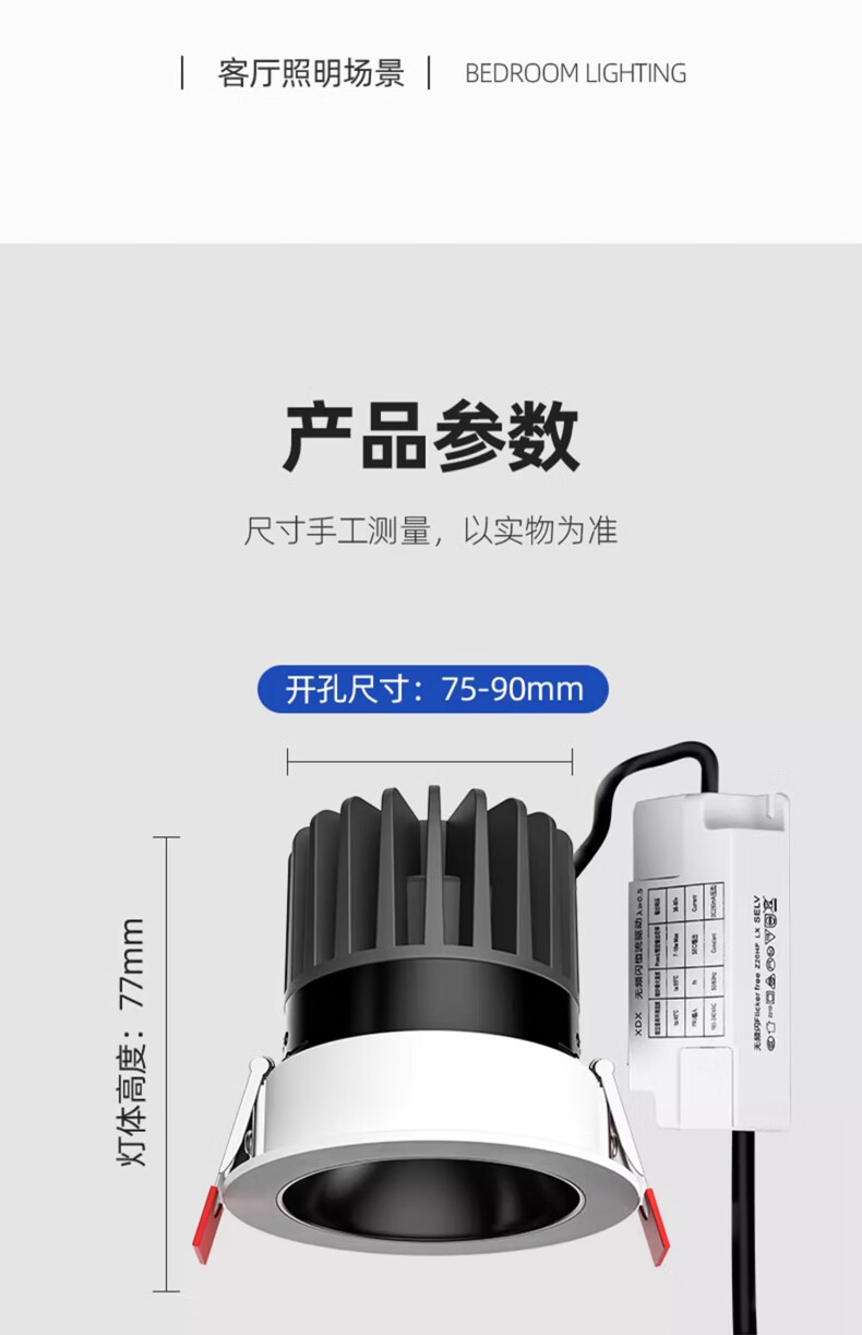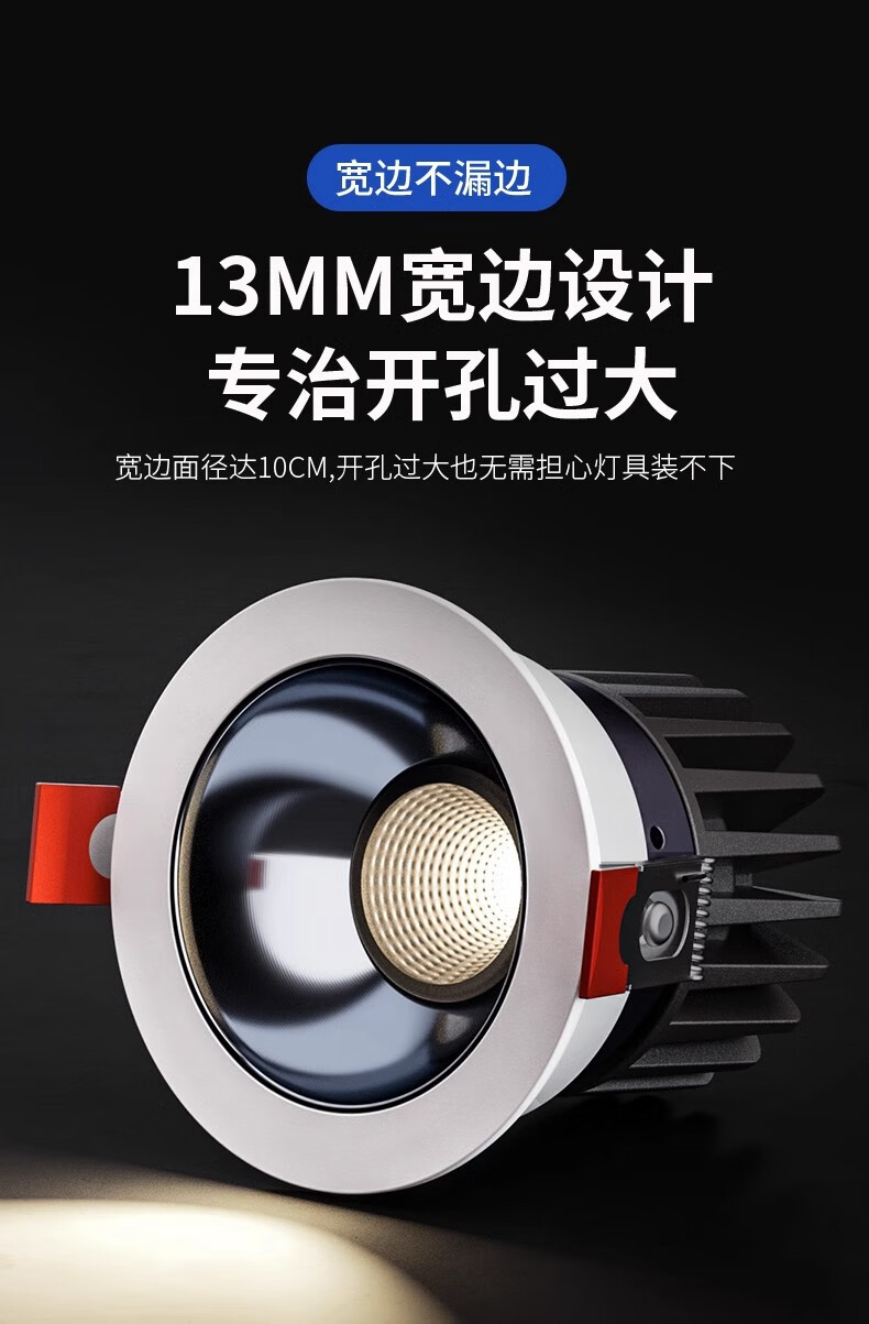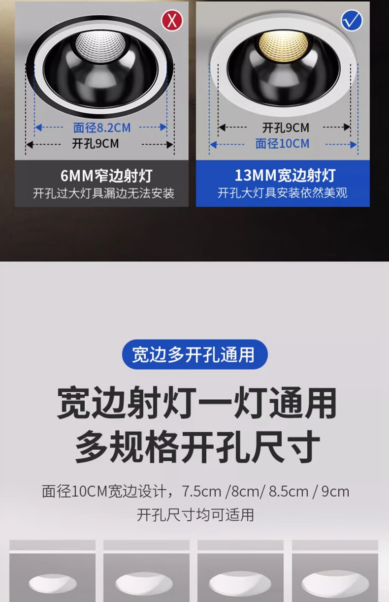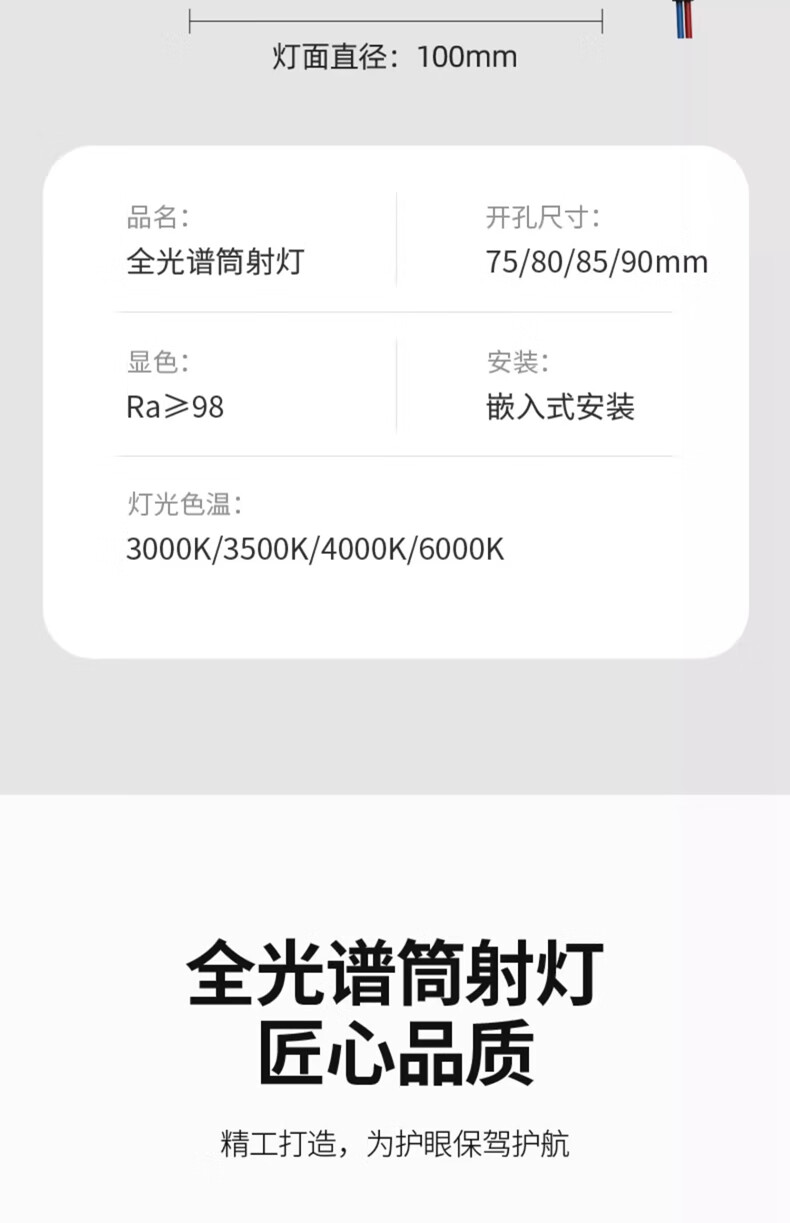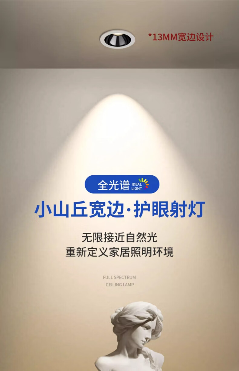 拉伯塔大开孔射灯9公分全光谱RA98显小山丘宽边深杯防眩8.5cm洗墙灯筒灯 射灯-白杯【5W】全光谱款 【暖光3000K】开孔7.5-9公分
