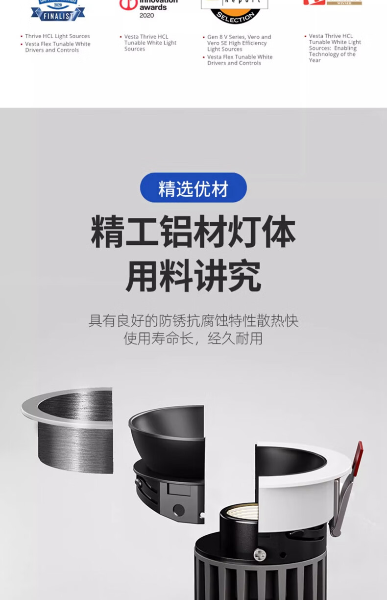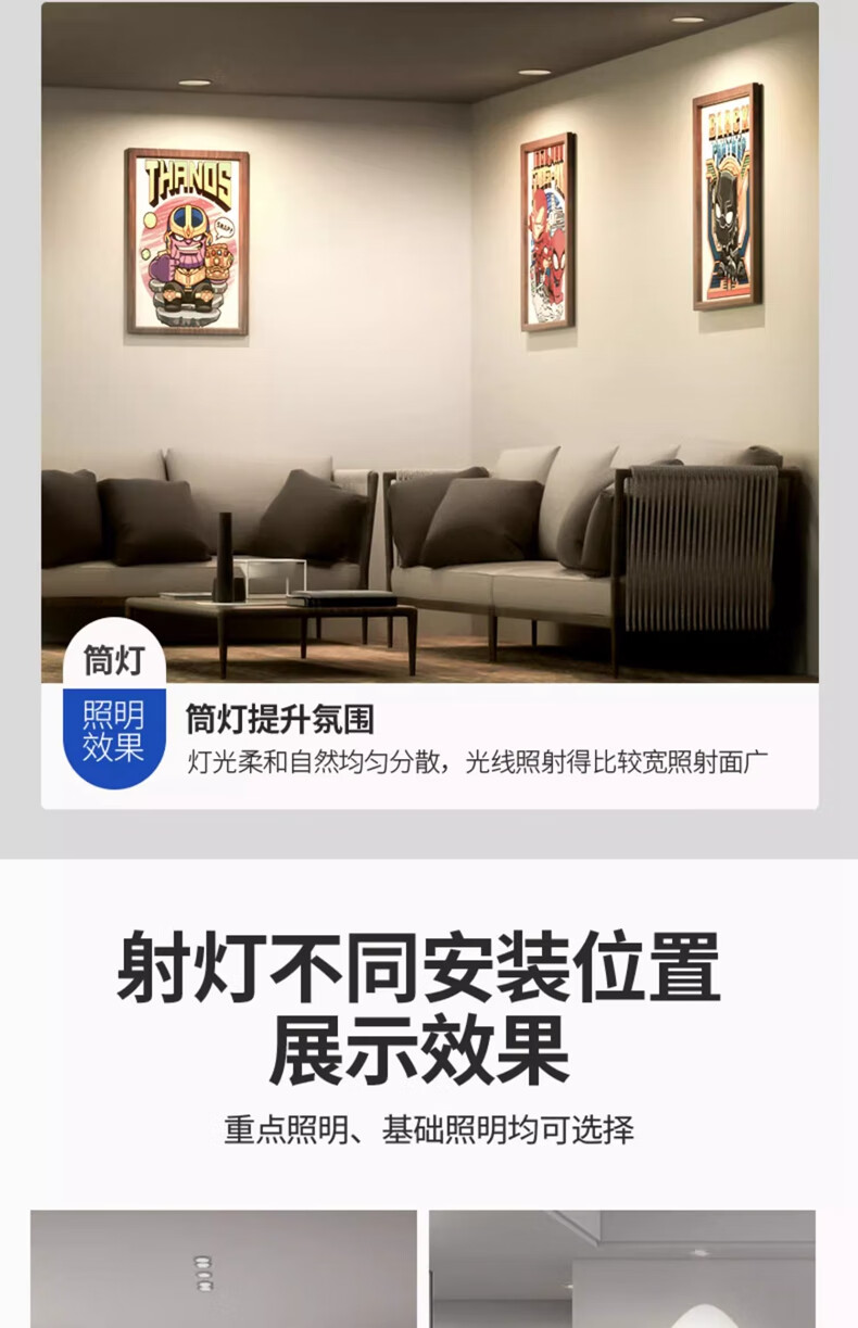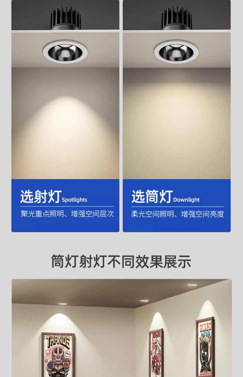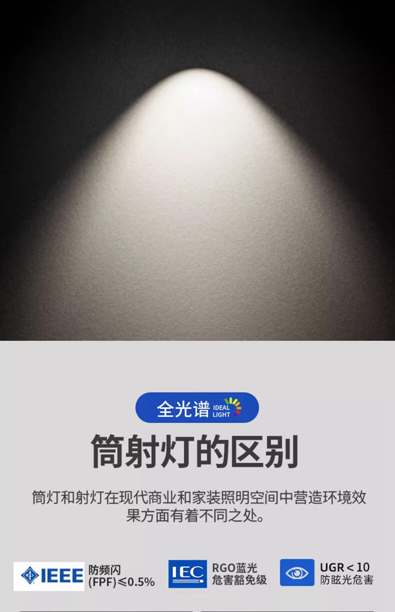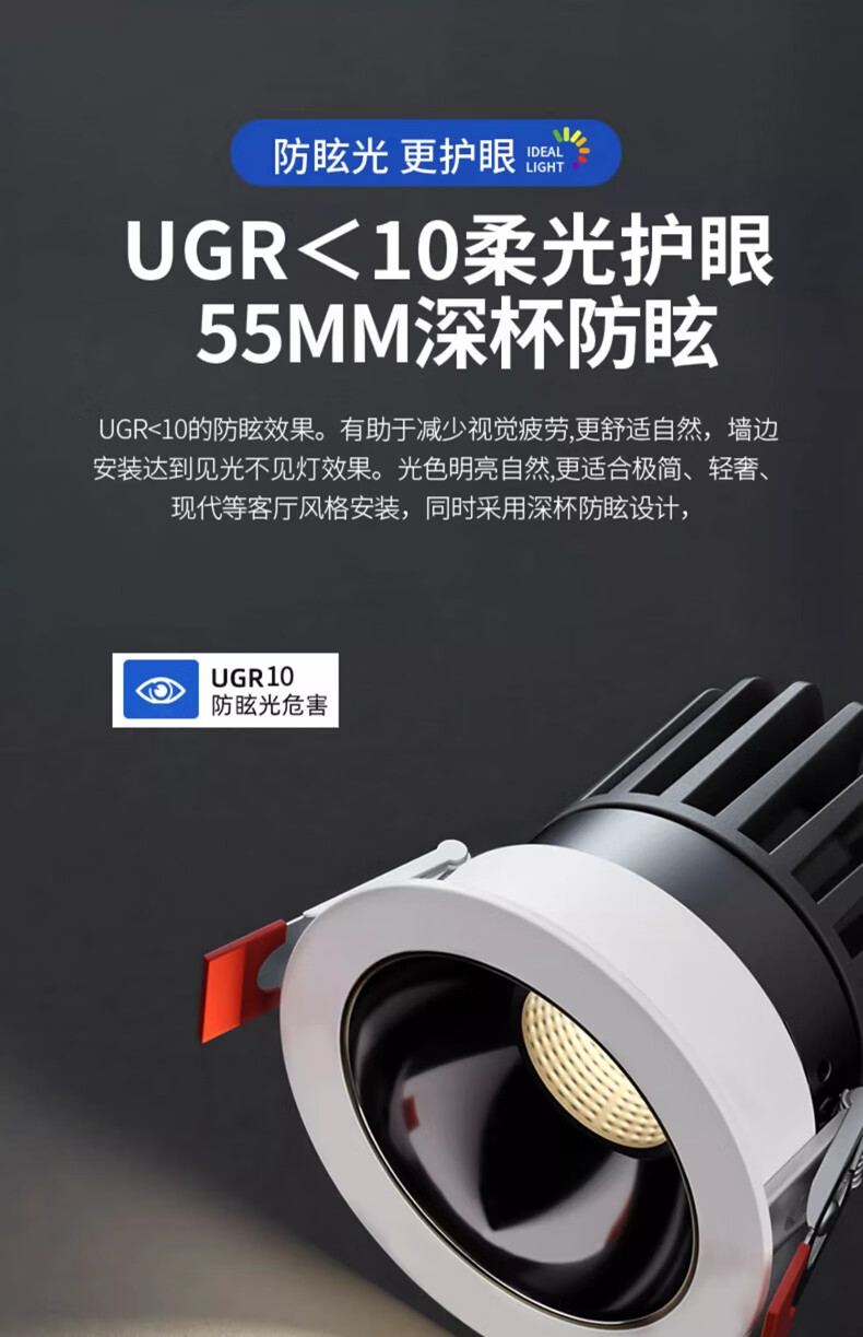 拉伯塔大开孔射灯9公分全光谱RA98显小山丘宽边深杯防眩8.5cm洗墙灯筒灯 射灯-白杯【5W】全光谱款 【暖光3000K】开孔7.5-9公分