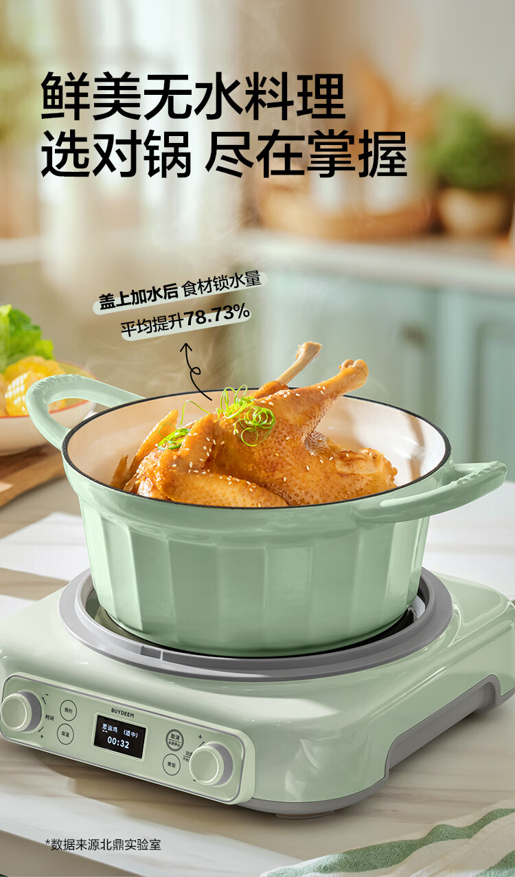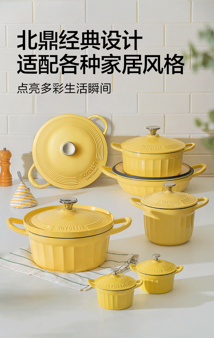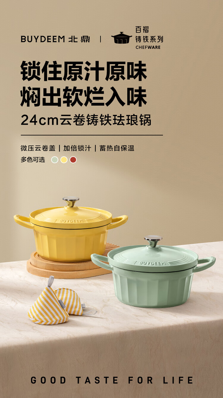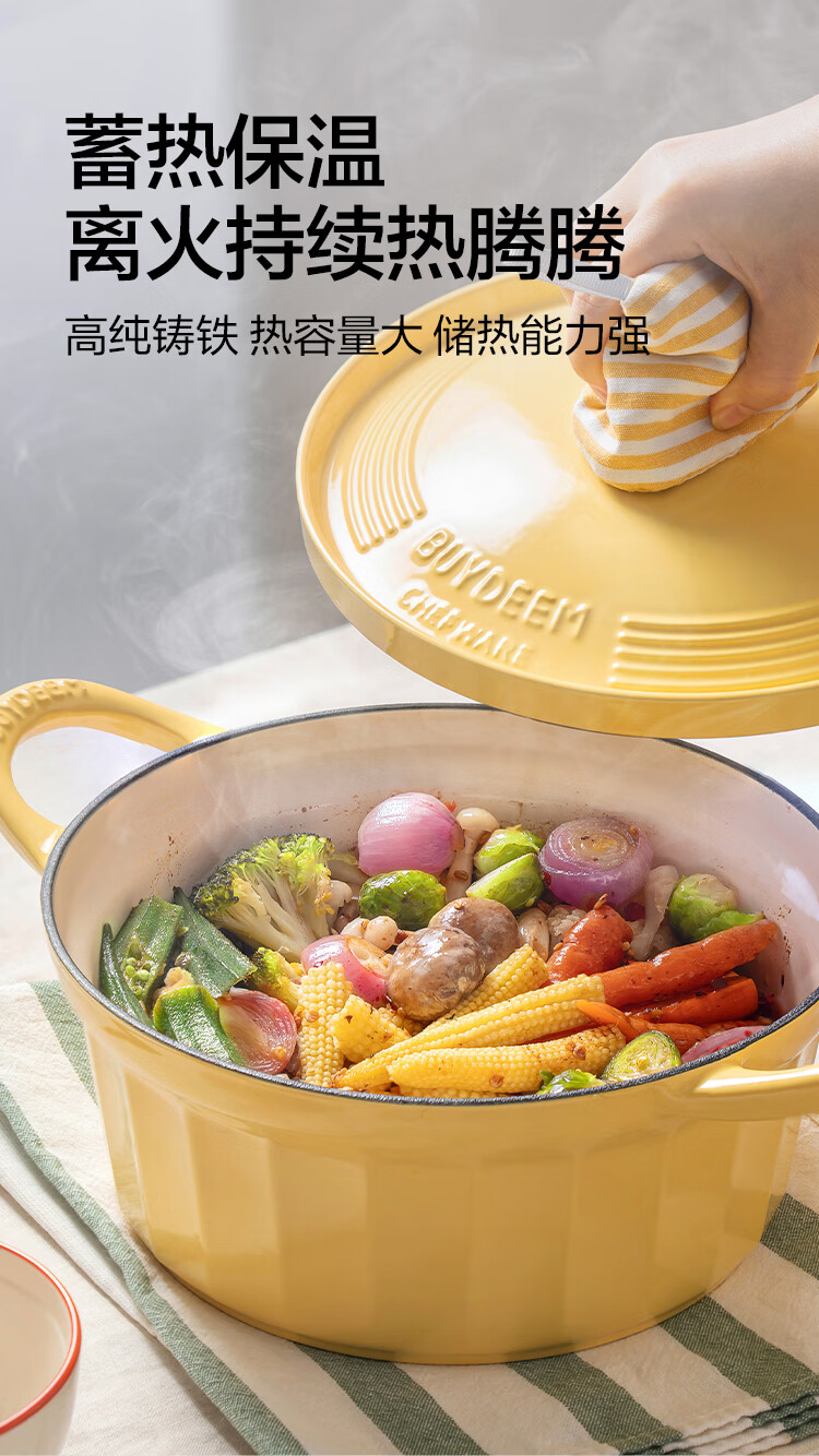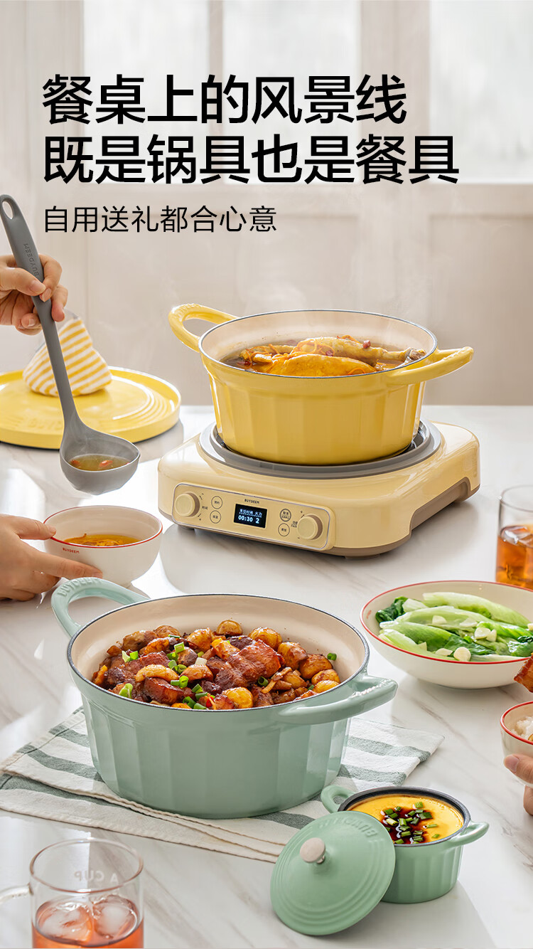 北鼎(Buydeem)珐琅锅 铸铁锅炖锅汤锅 家用煲汤焖炖锅电磁炉火锅搪瓷焖烧锅 【小鹅黄CP】珐琅锅+电磁炉 24cm