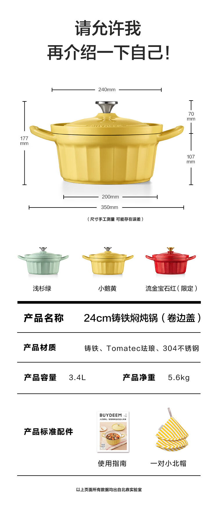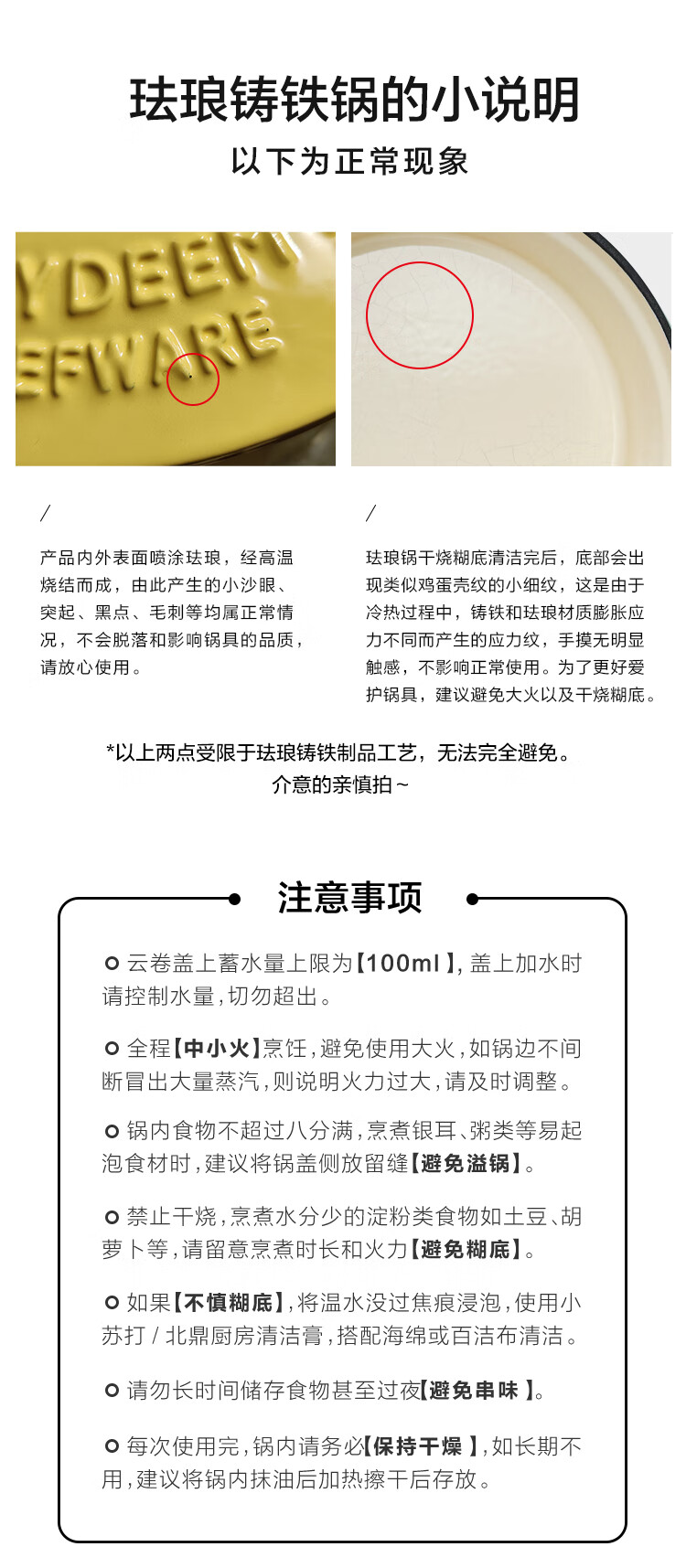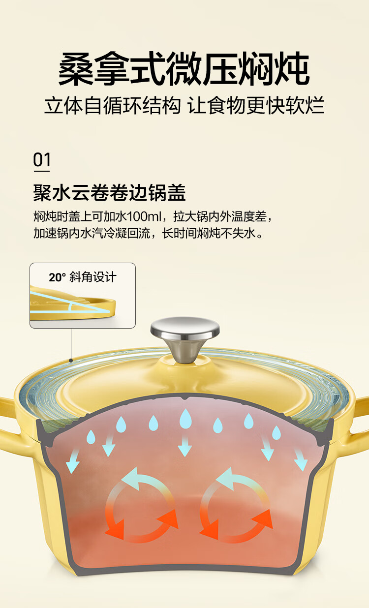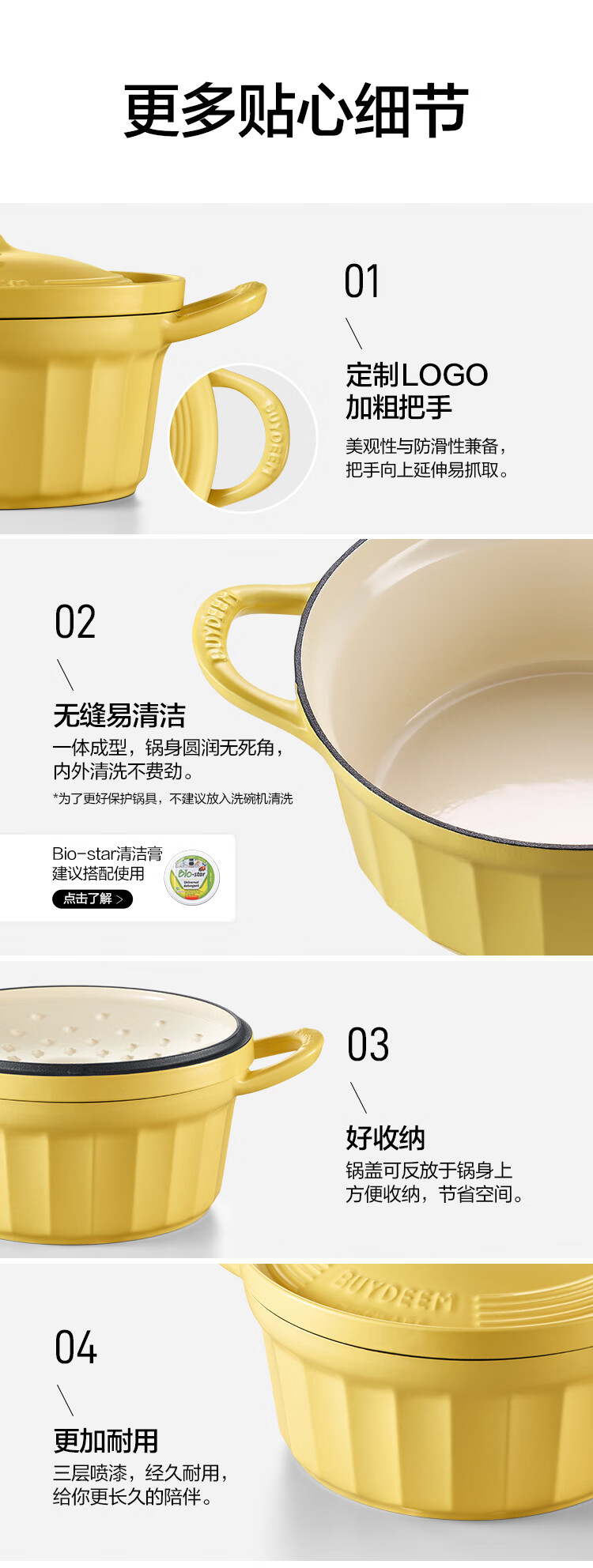 北鼎(Buydeem)珐琅锅 铸铁锅炖锅汤锅 家用煲汤焖炖锅电磁炉火锅搪瓷焖烧锅 【小鹅黄CP】珐琅锅+电磁炉 24cm