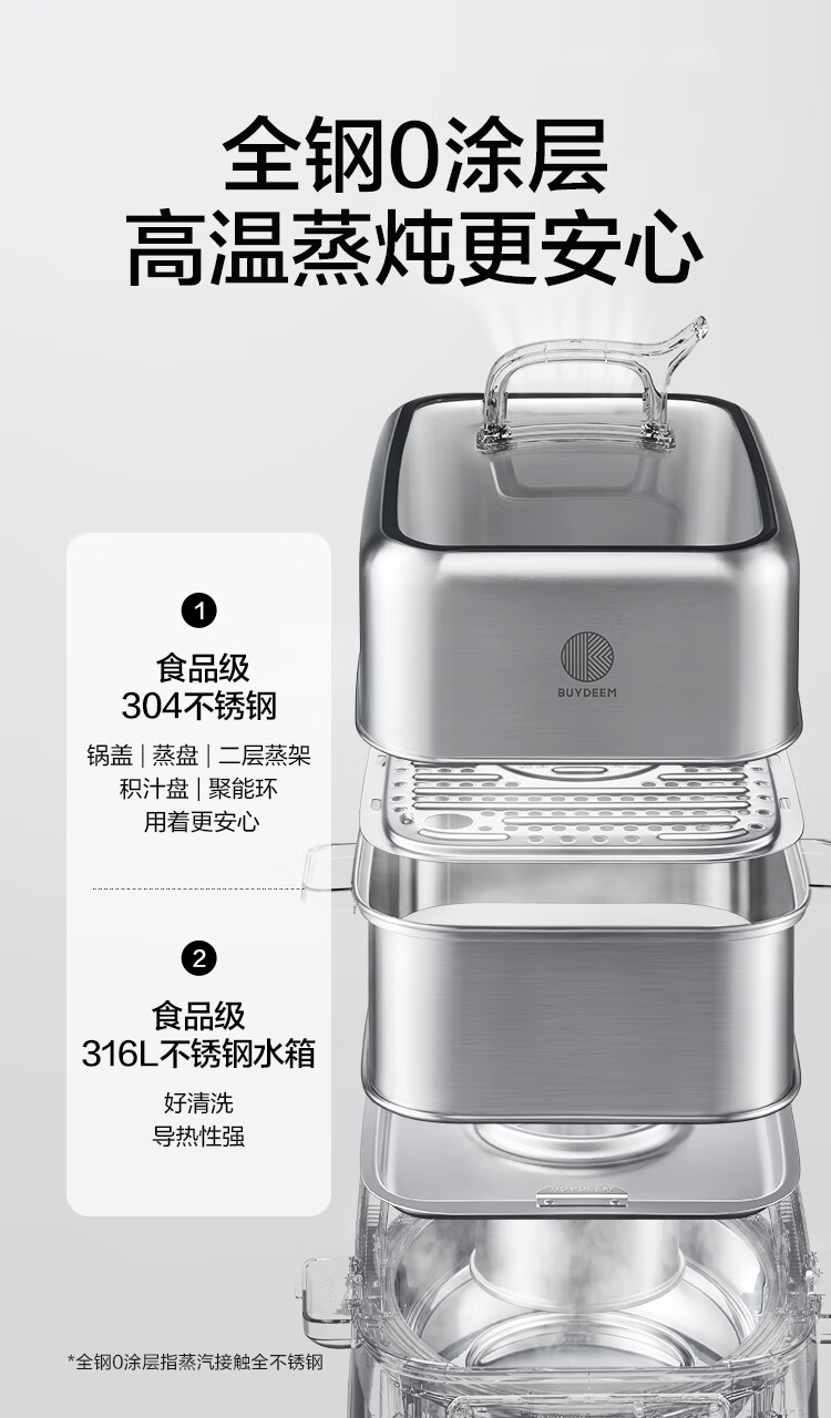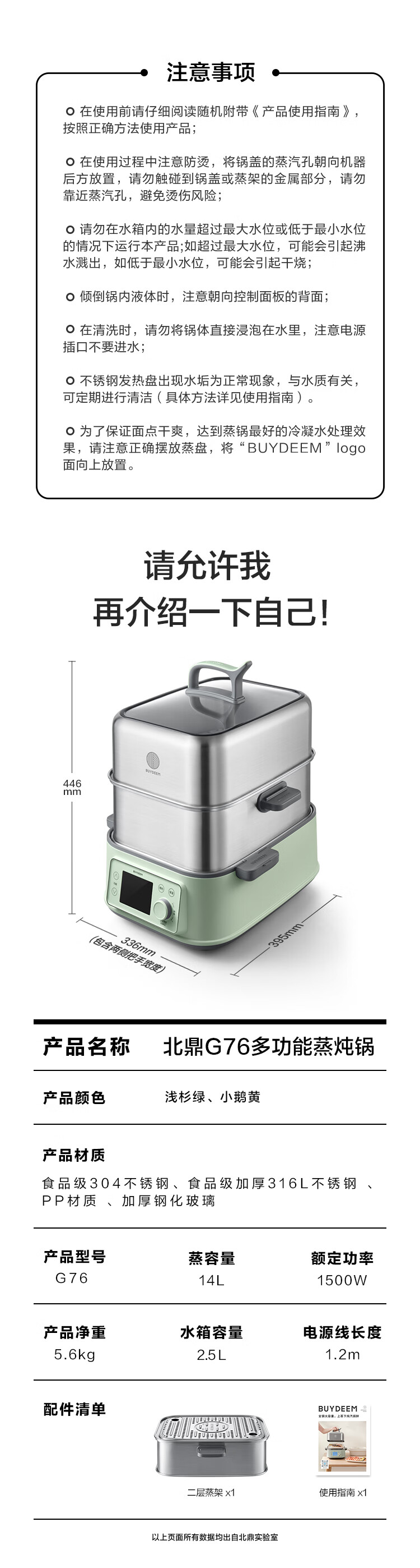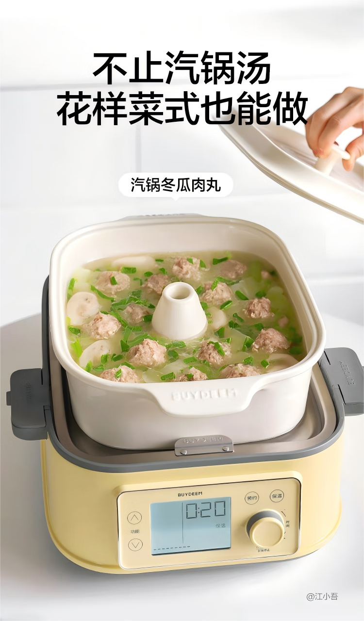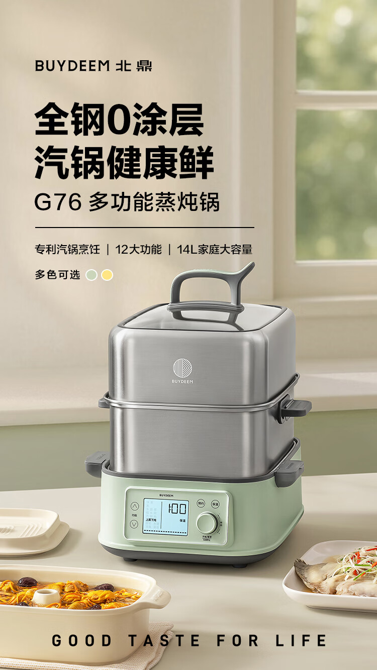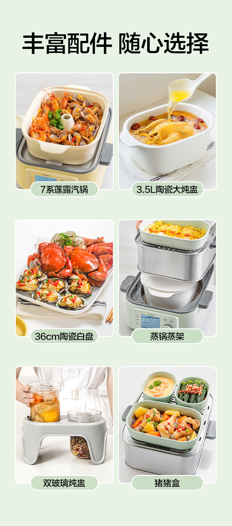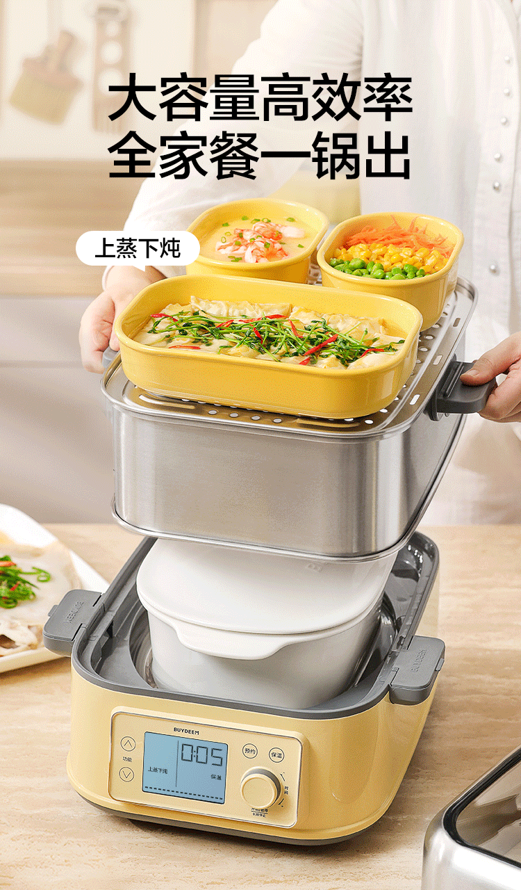 北鼎(Buydeem)家用不锈钢电炖锅 大容量多功能锅一锅多用蒸锅大号智能蒸炖锅定时预约蒸汽锅 【汽锅炖盅】G76小鹅黄+汽锅+炖盅(含支架)