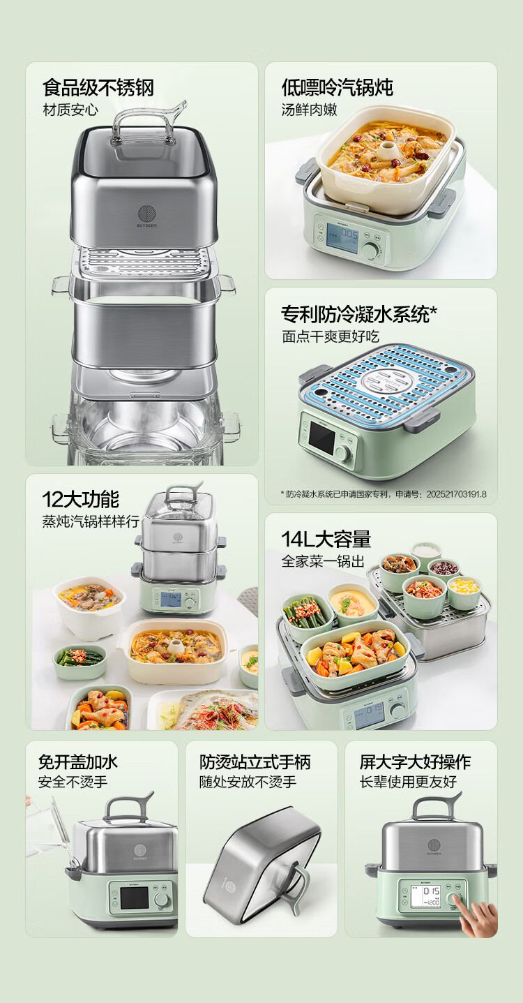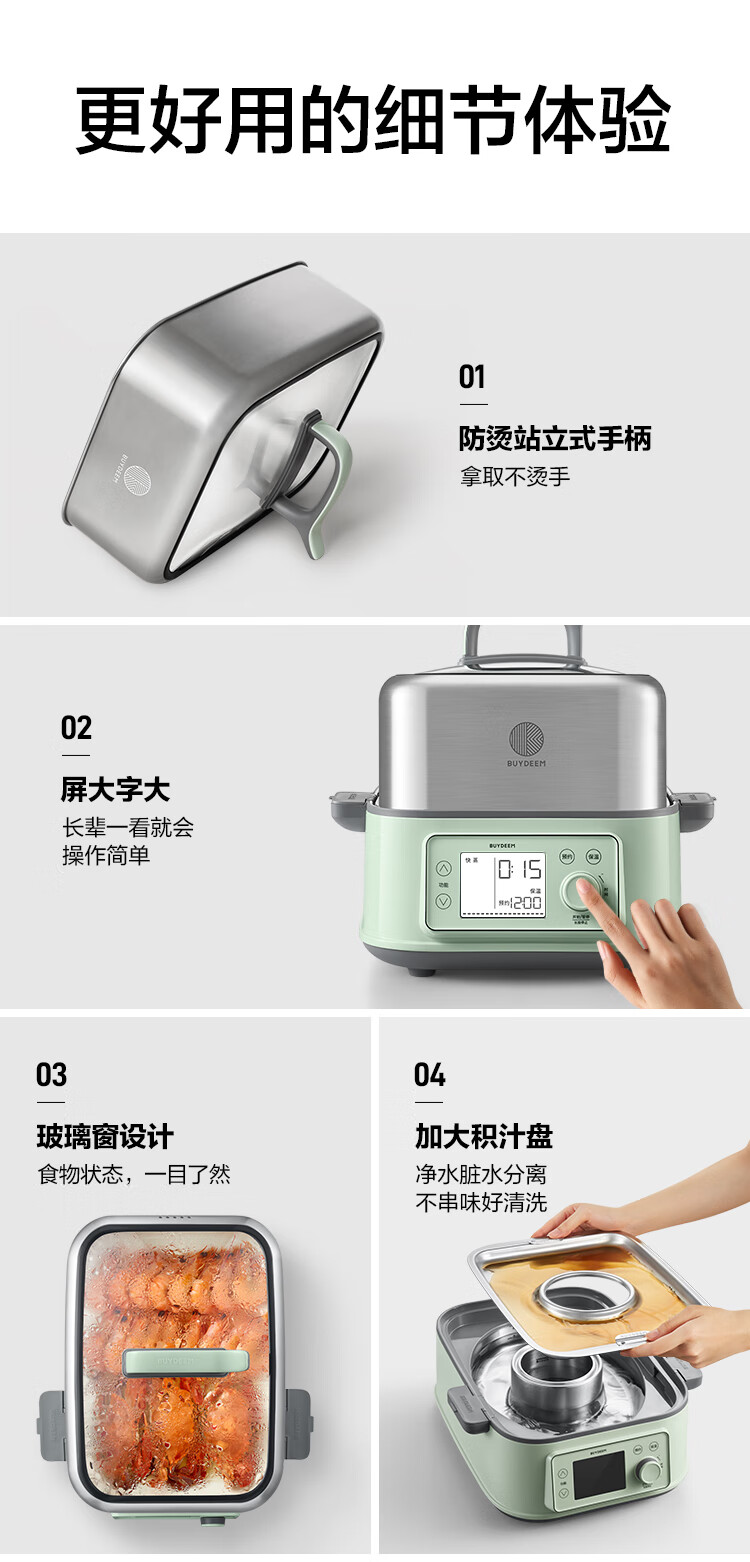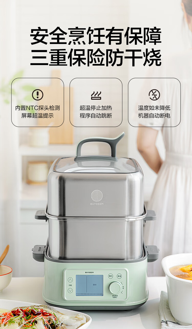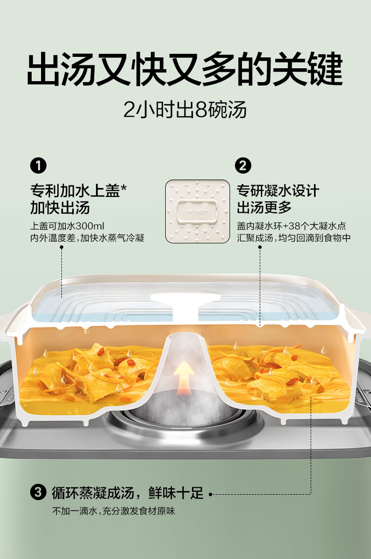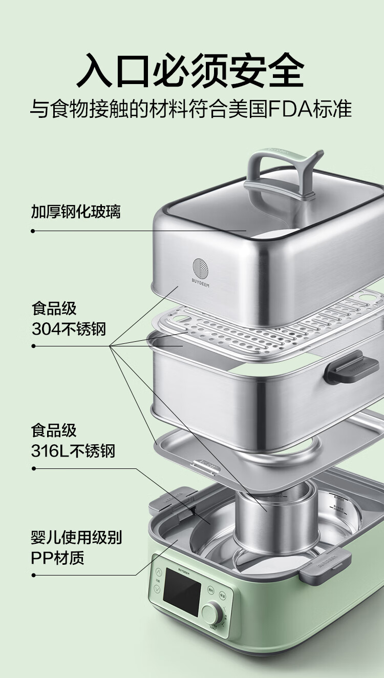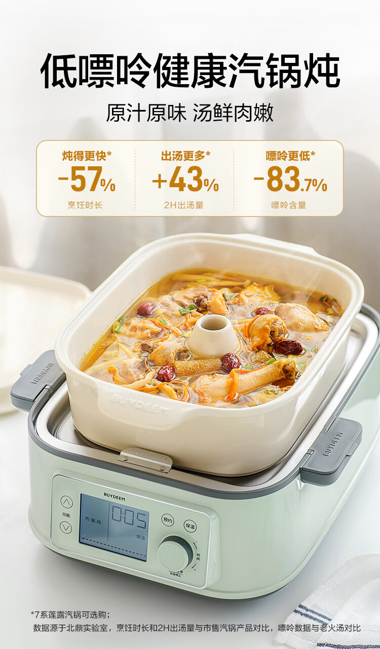 北鼎(Buydeem)家用不锈钢电炖锅 大容量多功能锅一锅多用蒸锅大号智能蒸炖锅定时预约蒸汽锅 【汽锅炖盅】G76小鹅黄+汽锅+炖盅(含支架)