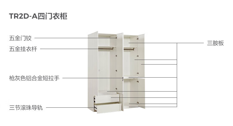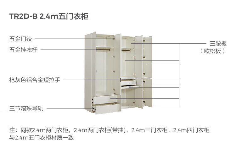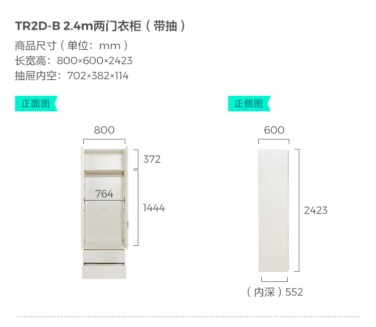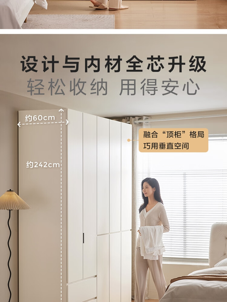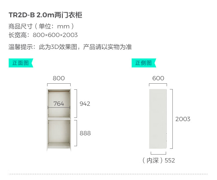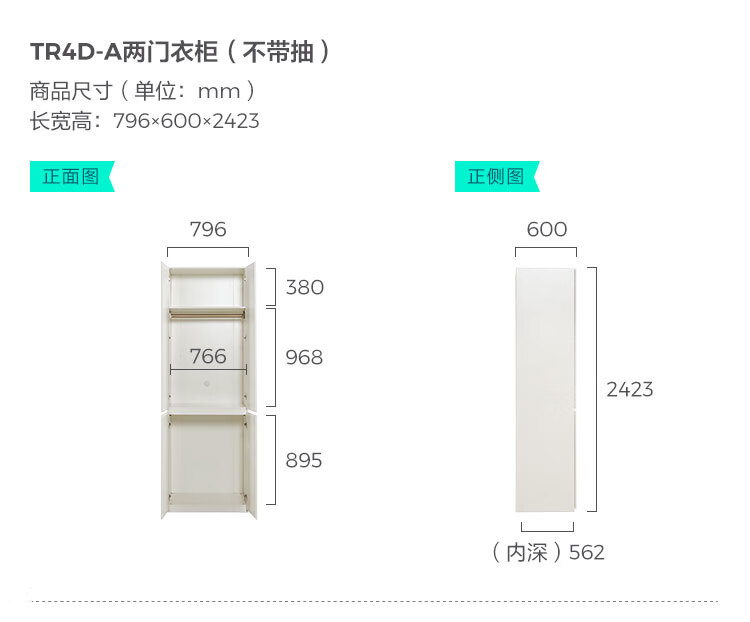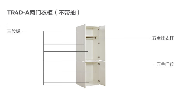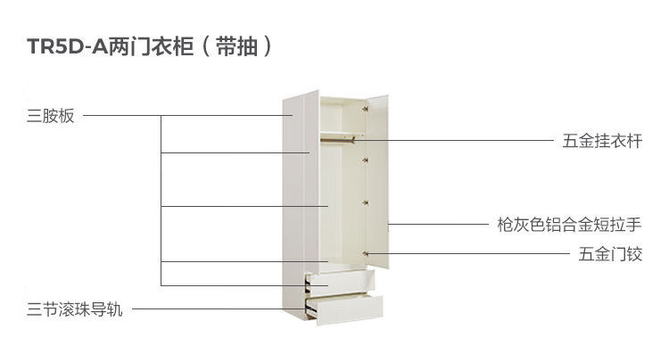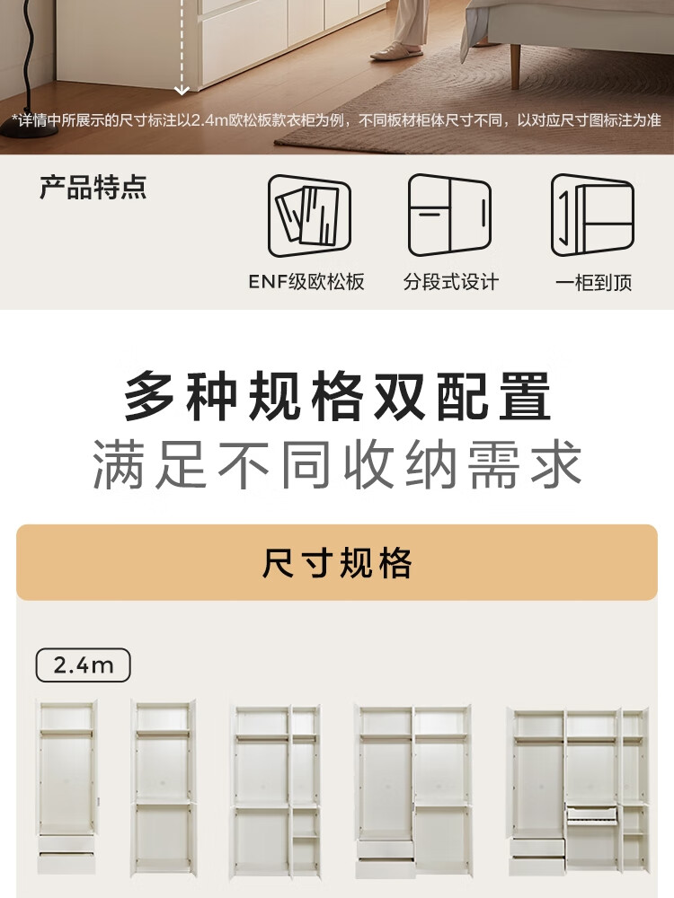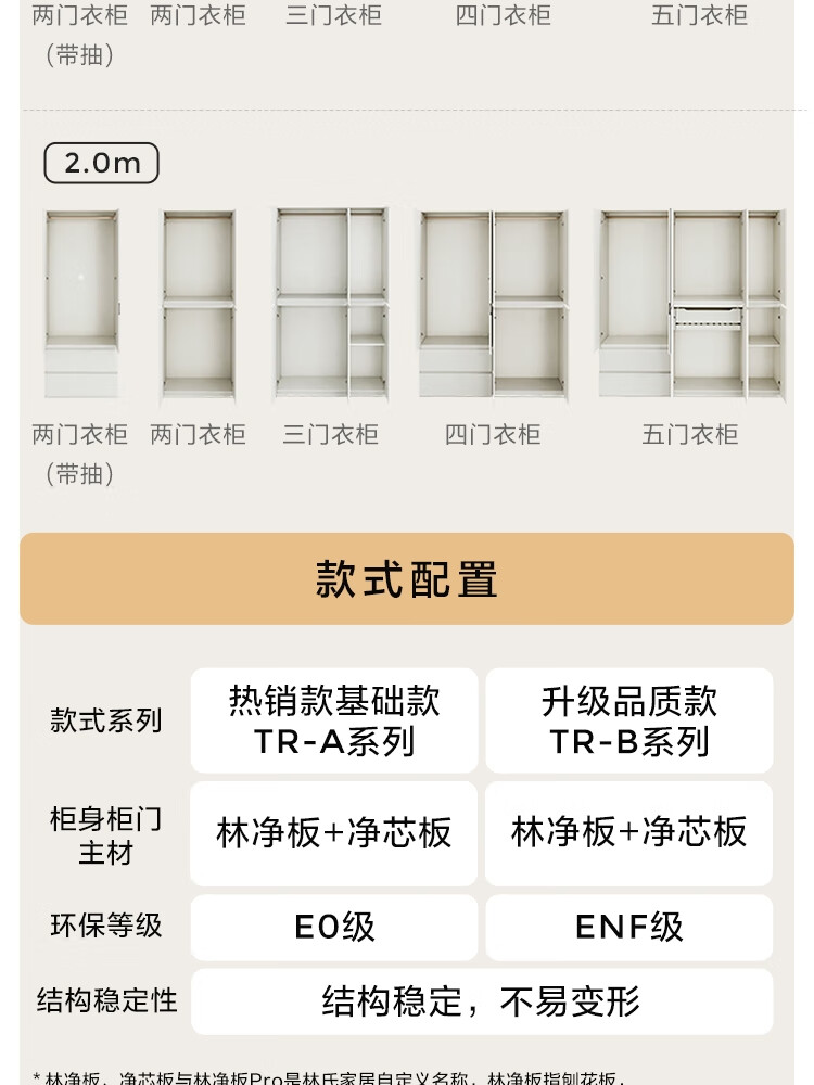 林氏家居卧室成品衣柜橱柜ENF级欧松板可选分段式收纳柜衣橱TR2D 0.8*2.42m|ENF级|无抽|两门衣柜