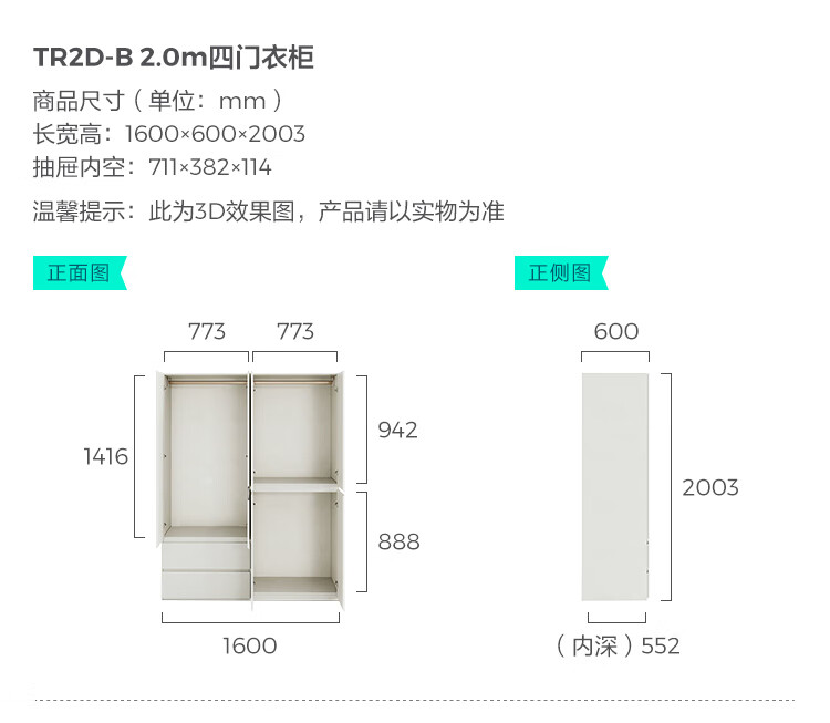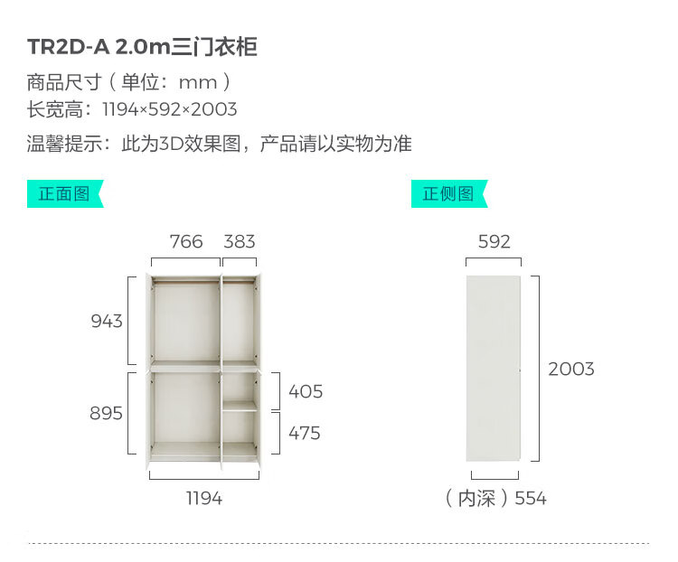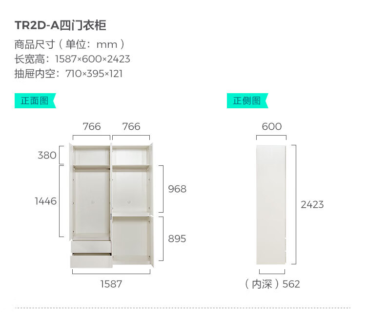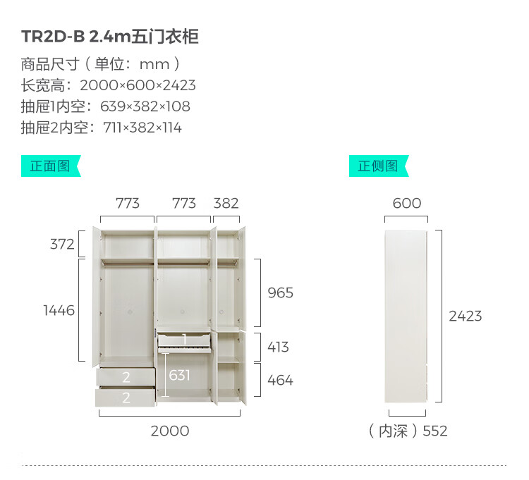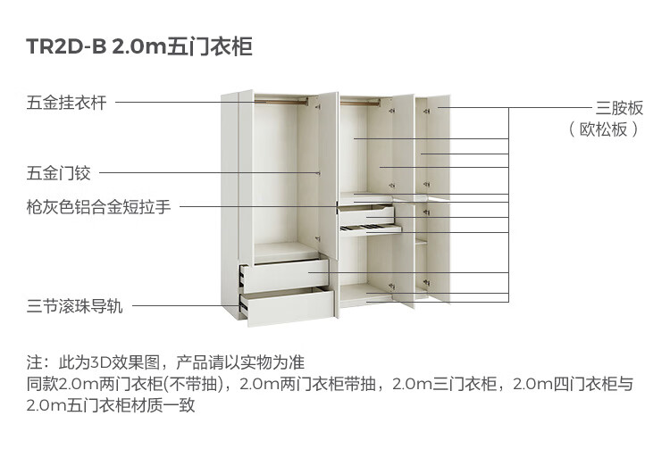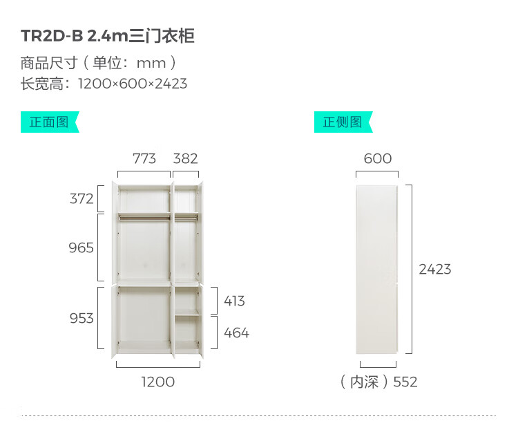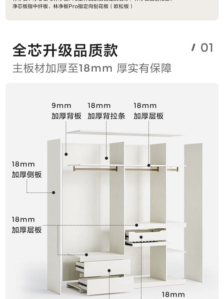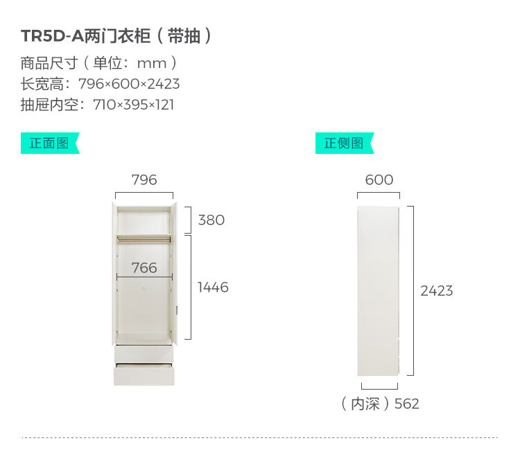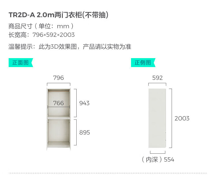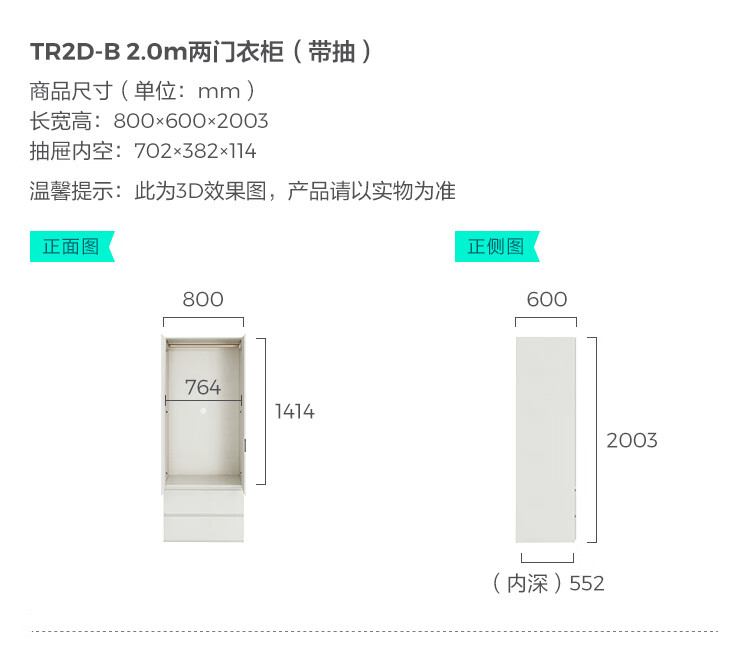 林氏家居卧室成品衣柜橱柜ENF级欧松板可选分段式收纳柜衣橱TR2D 0.8*2.42m|ENF级|无抽|两门衣柜