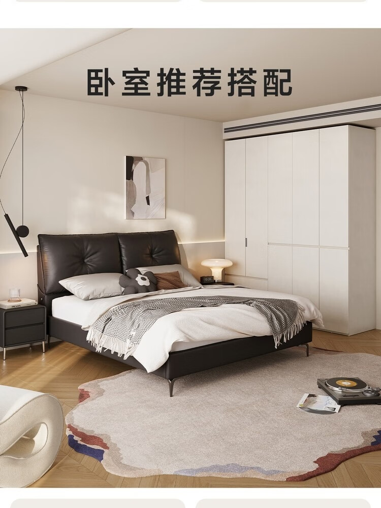 全友家居 北欧原木风北美红橡木实木床家用主卧室高脚双人大床1.8x2米