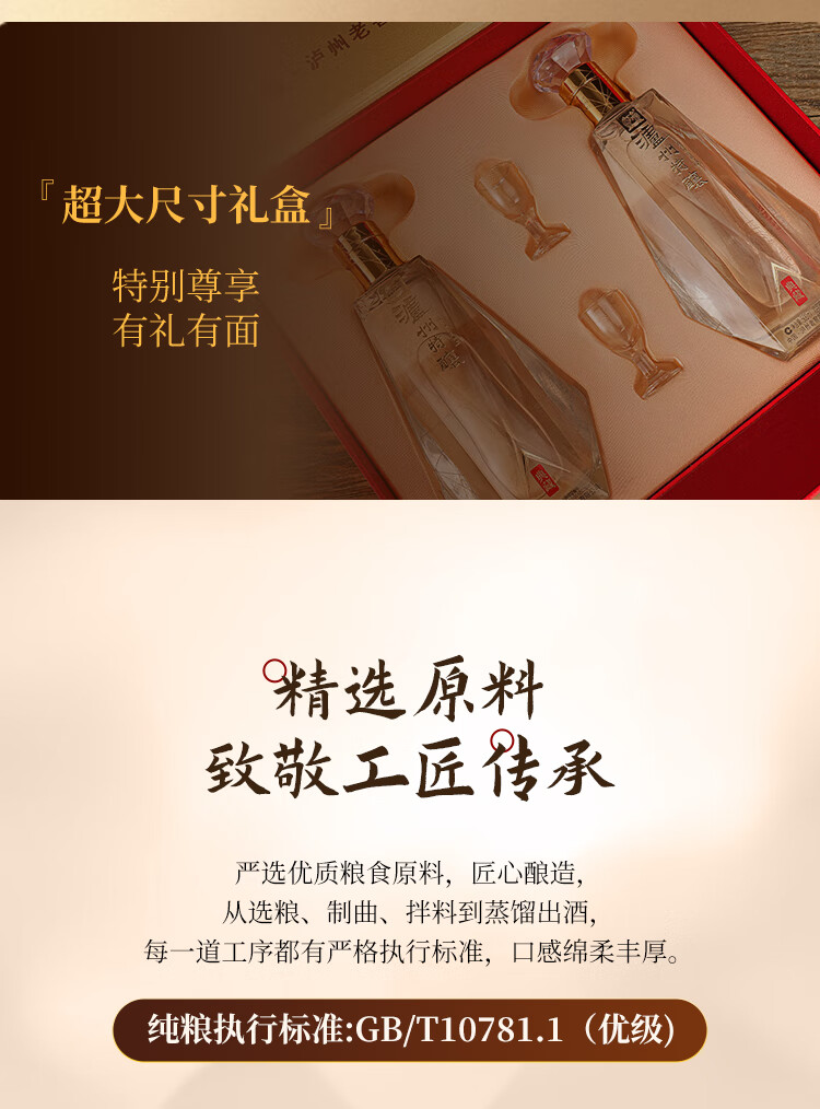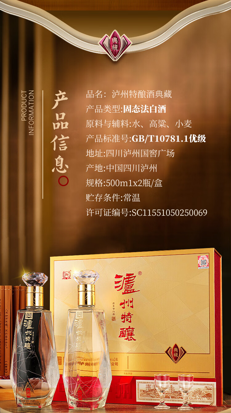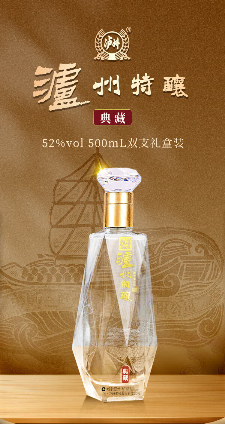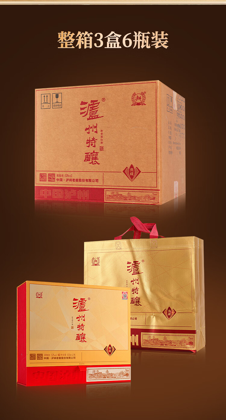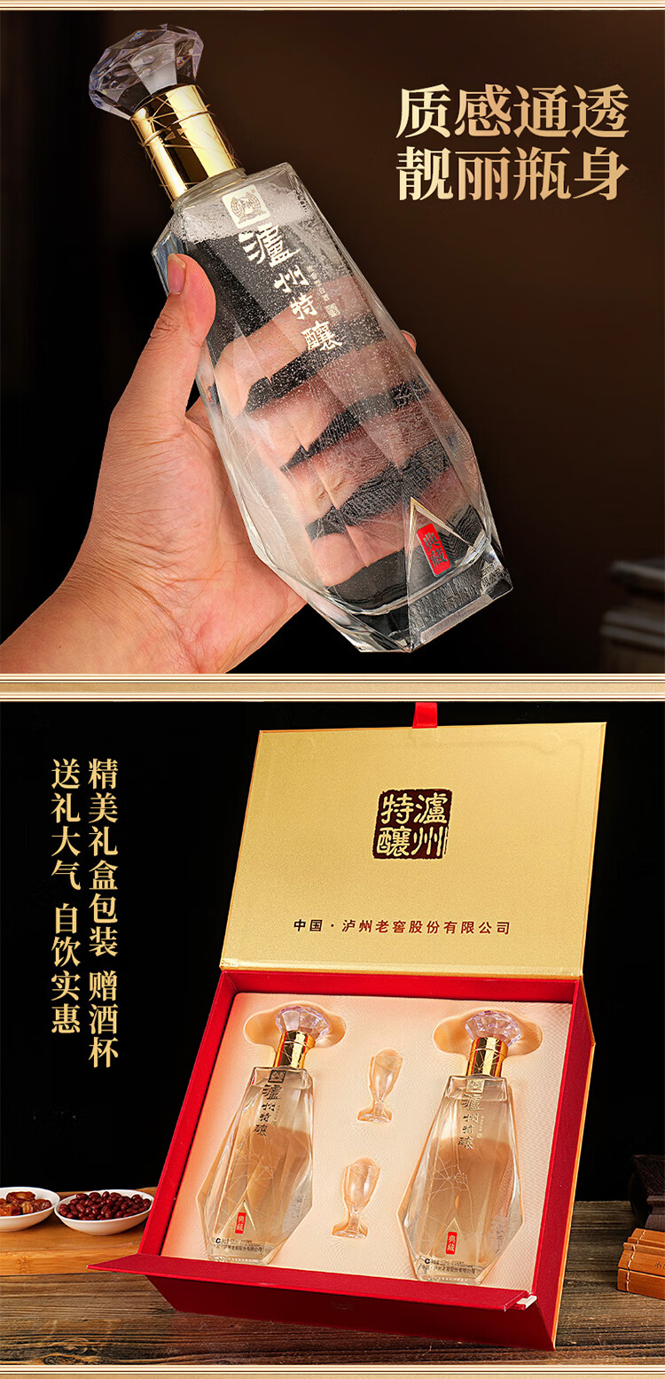 泸州老窖 特酿 浓香型白酒 52度 500mL礼盒装2瓶纯粮食酒年货礼盒春节送礼