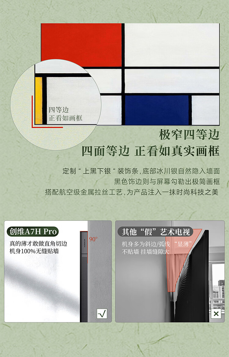 创维电视85A7H pro 85英寸艺术壁纸电视Mini LED 3.9cm超薄无缝贴墙平板电视机 家电国家补贴A7F升级款 85英寸 新品上市 咨询客服领好礼
