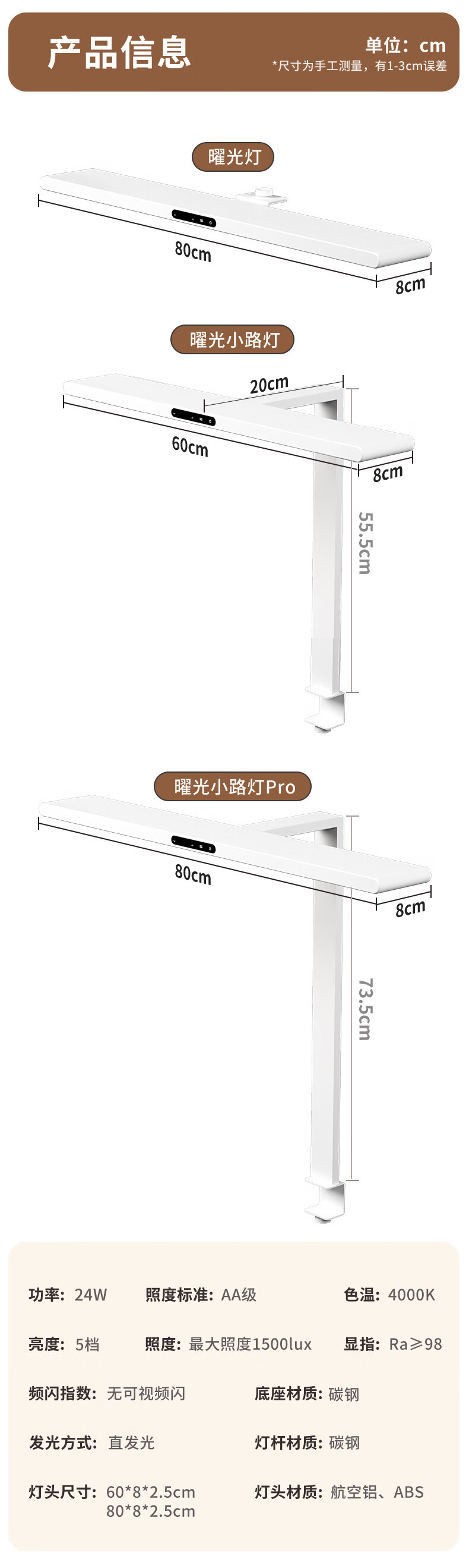 琪朗台式护眼大路灯 桌面立式工作学习灯 儿童家用书桌阅读台灯小夜灯 T4 Plus落地款